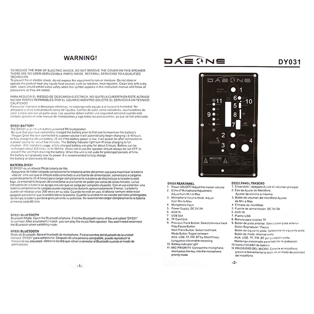 1000W Portable Wireless bluetooth Speaker Super Bass Stereo Radio FM TF AUX USB Feature: -Bluetooth 5.0 chip, more stable connection and lower consumption. -LED light display, fashionable and cool appearance. -Multiple connection modes, support bluetooth, TF card, radio input. -Portable design, with wired microphone, easy to carry with you. Specification: Product Name: bluetooth Speaker Model: DY031 Speaker: 8inch Size: 9.3*6.3*14.6 inches(L*W*H) Color: Black Material: Plastic bluetooth Version: V5.0 Input: 10W Battery Capacity: 2400mAh Function: USB/TF Card/Radio/bluetooth/LED Light Package Includes: 1 x bluetooth Speaker 1 x Charging Cable 1 x Remote Control Note: -The color of the item may vary slightly due to photography and different PC monitor. -The size might be slightly different due to manual measurement. Your kindly understanding would be appreciated. Shipping Payment Return and Refund Policy Feedback Help - Customer Support - Contac Shipping FREE SAME BUSINESS DAY MONDAY- FRIDAY SHIPPING FROM USA. No shipping on Weekends or US Public Holidays. No responsibility for any custom duty We will ship your order to your PayPal Verified address provided. Please verify your address and make sure that it is your current address before making your payment. Any address change requests after your payment CANNOT be guaranteed. Shipping information will be updated when available. All of our products can be shipped internationally. To confirm the shipping rates to your country please refer to eBay's Shipping Tab above. Any brokerage, customs, and duty fees associated with international shipments are the customer's responsibility and are not included in our shipping fee. A phone number is required for the customs documents. Failure to provide one will result in delays. We do not include an invoice or any advertising materials with our shipments. Payment Immediate payment is required. Shipping will be arranged within 1 business day once payment is cleared. To uphold a shipping speed, your order will be processed almost immediately. If you change your mind after your payment is confirmed, we will do our best to cancel the order, however, we CANNOT guarantee the cancellation. Return and Refund Policy 1. We stand behind our items and offer 30 days warranty . All items are in new and working condition unless specified otherwise elsewhere in the description. 2. All Returns - defective or otherwise - MUST BE PREAUTHORIZED to guarantee refund or exchange. Please contact us to get an authorization and return address. 3. Buyer agrees to pay for the cost of re-shipment for undeliverable or wrong addresses. 4. Buyer is responsible for Return Postage as well as a 20% restocking fee if return/replacement is not a result of our mistake such as wrong item. 5. Replacement or Refund will be made upon receipt of the returned item. Please include tracking number so we can process ASAP. If you do not wish to wait for a replacement, please repurchase the item. 6. ALL REFUNDS will be processed via PayPal. Please double check via PayPal history and transaction for confirmation. PayPal will send it back to whatever you used to pay within 3-5 days. Feedback We strive to provide the best products and services. Your positive feedback 5 stars DSR help us do better. If anything about your transaction did not meet expectations, please CONTACT US and give us the opportunity to make things right. We are always here to help. Help - Customer Support - Contac Please do not hesitate to CONTACT US . You can message 24/7 on eBay for all questions and inquiries. We will get back to you within 1-2 business days at the latest.