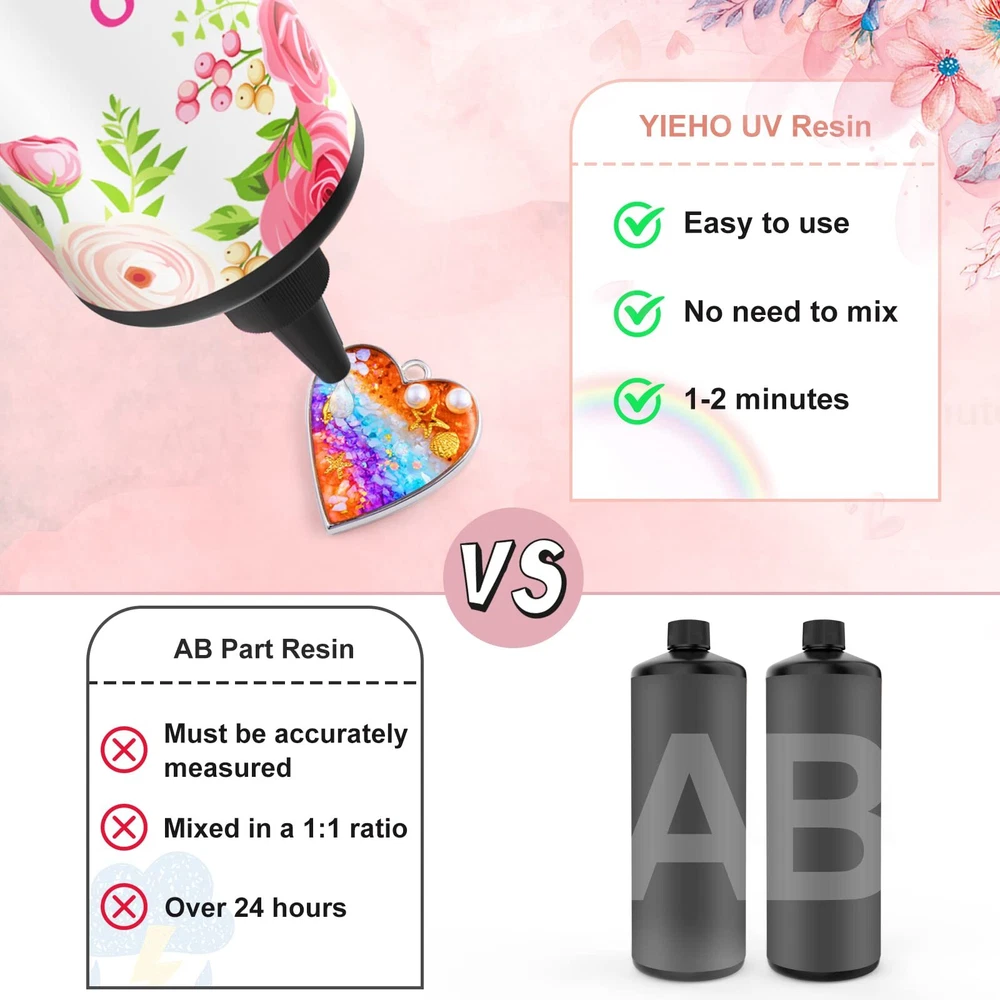 YIEHO 1000g UV Resin -Upgraded Crystal Clear Hard UV Fast Curing Epoxy Resin Supplies with Mat for Craft Jewelry Making 1KG 【1000g HIGHT CAPACITY UV RESIN Kit】 You will get a super large-capacity resin kit. If you have it, you don't need to buy resin frequently, and it contains the accessories you just need, such as mats, gloves, silicone stir bar, silicone mixing spoon, mixing cups, etc. You can use Premium uv epoxy resin to make a lot of beautiful jewelry for your loved ones, such as necklaces, pendants, earring, keychains and ornaments. 【SUPER CLEAR and HARD RESIN 1KG】The 1KG epoxy resin uses advanced materials such as Bisphenol A Epoxy Acrylate,Polyurethane Acrylate and Epoxy Acrylate, which can make it have high-quality performance in transparency and hardness after curing. What's more,the BAEA allows it to cure quickly under ultraviolet light. The excellent performance of uv epoxy resin makes the work more perfect. 【HEALTHY and SAFE】 You can rest assured to use our UV resin with Safety Data Sheet. The ingredients of YIEHO UV RESIN have been strictly checked, which also meets the requirements of REACH regulations. You can buy with confidence. As a handicraft enthusiast who likes to make jewelry, you don't have to worry that using yieho UV resin will affect your health. You can buy with confidence. 【LARGE VOLUME PREMIUM UV EPOXY RESIN】 You will get the uv epoxy resin with the following characteristics: crystal clear, supert hard, fast curing, low odor, less bubble, essistant to yellowing and no mixing. Wha's more, it has fantastic color stability to preserve the rich colors of your artwork. 【QUALITY SERVICE】 You can get 12 months free return or exchange service. If you have any dissatisfaction with the product, please feel free to contact us. Our team will provide you with the highest quality customer service within 12 hours. As a creative person, you may click 'Add to Cart' and enjoy sharing your beautiful creations with your friends with the clear UV resin. Shipping We offer FREE shipping on all orders! We use a selection of shipping services such as UPS, FedEx, USPS etc. We only ship to the lower 48 states, no APO/FPO addresses or PO Boxes allowed. Local pickups and combined shipping options are not provided at this time. Return You can return a product for up to 30 days from the date you purchased it. Any product you return must be in the same condition you received it and in the original packaging. Please keep the receipt. Payment We accept payment by any of the following methods: PayPal Please pay as soon as possible after winning an auction, as that will allow us to post your item to you sooner! Feedback Customer satisfaction is very important to us. If you have any problem with your order, please contact us and we will do our best to make you satisfied. Contact Us If you have any queries, please contact us via ebay. We usually respond within 24 hours on weekdays. Please visit our eBay store to check out other items for sale! Thank you for shopping at our store.