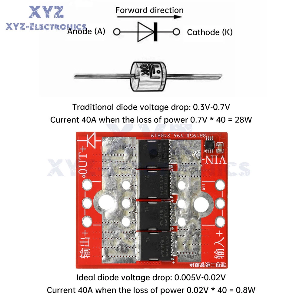 Store Categories Store Categories Other 100A High Current Ideal Diode Module Anti-Backflood Anti-Reverse Charging Module Details Features: 1. The product only needs to be connected in series with the positive pole of the circuit, without connecting the negative pole 2. No input voltage limit (guaranteed reverse voltage below 40V) 3.4 320A high-current MOS tube, continuous overcurrent 80A, peak 100A 4.0.9mΩ milliohm conduction resistance, voltage difference of 0.004 volts or so small loss, low heat 5.2US fast response to reverse polarity, input and output are equivalent to diodes. 6. Detect the output voltage is greater than the input immediately shut down the output, the detection value for the millivolt level, the response speed is very fast! Product Description: This module uses imported MOS management chip, on board 4 0.9mΩ, 320A high power MOS tube, over high current temperature rise is very low. This product is not grounded, according to the official technical information documents, after testing through the ideal diode voltage will be 0.03 ~ 0.2V or so fluctuations (current fluctuations in different voltages, all the ideal diode on the market without grounding are the same there is this problem) 98% of the time when the fluctuation of the voltage on the lowest point of heat is also the lowest, 2% of the time through the body of the diode to the chip power supply, this time the fluctuation of the voltage, the voltage of the power supply to the chip, this time the fluctuation of the voltage, the power supply to the chip. Chip power supply, this time the fluctuation of the voltage is the largest, the heat is also the largest. Suitable for replacing ordinary high-current diodes, batteries, solar panels, anti-backflooding anti-backflow. Series connection on the input side of the power supply is ideal for anti-reverse connection. Precautions: 1. No limitation on input voltage, but reverse voltage requirement. 2. Reverse voltage is lower than 40V (the difference between the voltage at the output end and the voltage at the input end cannot be higher than the input voltage of 40V) For example: if the input is connected to a 24V power supply, the output can be connected to a 12V, 24V, 36V, 48V, 60V battery, and it cannot be connected to a battery of more than 72V, because 72V-24V input = 48V If the input is not connected to a power supply, and there is no voltage at the input end to input the output can be connected to a voltage of less than 40V. If the input is not connected to the power supply, there is no voltage input at the input, the output can be connected to a voltage below 40V, if the output is connected to a voltage above 40V, the chip will be damaged. 3. If it is used for anti-flooding, be sure to disconnect the output first. 4. Because it is not grounded, the output voltage has about 0.3V fluctuation. It is not suitable for voltage precision products. Package include: : Ideal diode module *1 Shipping Policy Payment Method Returns Policy Shipping Policy Payment Method This is the description of Payment Method. Do not dismiss your dream. To be without dream is to be without hope. To be without hope is to be without purpose. Do not run through your life so fast that you forget not only where you have been, but also where you are going. Life is not race, but a journey to be savored each step of the way. Returns Policy This is the description of Returns Policy. Do not dismiss your dream. To be without dream is to be without hope. To be without hope is to be without purpose. Do not run through your life so fast that you forget not only where you have been, but also where you are going. Life is not race, but a journey to be savored each step of the way. Copyright©2017 DataCaciques Home Payment Return Policy About us Contact us 100A High Current Ideal Diode Module Anti-Backflood Anti-Reverse Charging Module Details Features: 1. The product only needs to be connected in series with the positive pole of the circuit, without connecting the negative pole 2. No input voltage limit (guaranteed reverse voltage below 40V) 3.4 320A high-current MOS tube, continuous overcurrent 80A, peak 100A 4.0.9mΩ milliohm conduction resistance, voltage difference of 0.004 volts or so small loss, low heat 5.2US fast response to reverse polarity, input and output are equivalent to diodes. 6. Detect the output voltage is greater than the input immediately shut down the output, the detection value for the millivolt level, the response speed is very fast! Product Description: This module uses imported MOS management chip, on board 4 0.9mΩ, 320A high power MOS tube, over high current temperature rise is very low. This product is not grounded, according to the official technical information documents, after testing through the ideal diode voltage will be 0.03 ~ 0.2V or so fluctuations (current fluctuations in different voltages, all the ideal diode on the market without grounding are the same there is this problem) 98% of the time when the fluctuation of the voltage on the lowest point of heat is also the lowest, 2% of the time through the body of the diode to the chip power supply, this time the fluctuation of the voltage, the voltage of the power supply to the chip, this time the fluctuation of the voltage, the power supply to the chip. Chip power supply, this time the fluctuation of the voltage is the largest, the heat is also the largest. Suitable for replacing ordinary high-current diodes, batteries, solar panels, anti-backflooding anti-backflow. Series connection on the input side of the power supply is ideal for anti-reverse connection. Precautions: 1. No limitation on input voltage, but reverse voltage requirement. 2. Reverse voltage is lower than 40V (the difference between the voltage at the output end and the voltage at the input end cannot be higher than the input voltage of 40V) For example: if the input is connected to a 24V power supply, the output can be connected to a 12V, 24V, 36V, 48V, 60V bat
