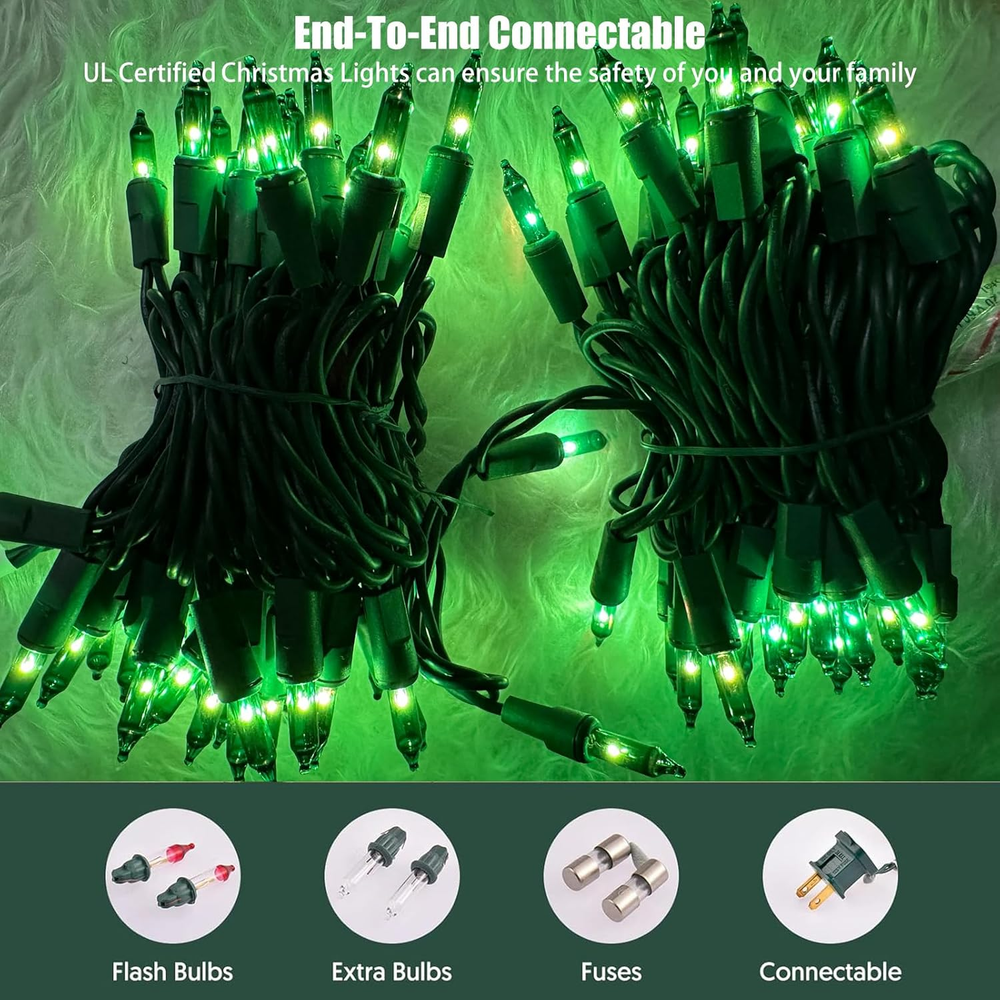 Store New Arrivals Add to Favorite View Feedback Contact Fast deliveries to the customer's home Quality customer service John Make the customers happy! Green Lights 100 Count Mini Decorations String Lights with Green Wire for Outdoor Decorations Indoor Decor,Ul Certified (21Feet) Description UL Certified Christmas Lights: Strictly tested and meets the US requirements of string lights UL safety standards to ensure & maximize the safety. UL Approved for indoor and outdoor use.Perfect for Christmas tree, St Patricks Day,Thanks Giving Day,Halloween, birthday parties,great for indoor and outdoor lighting decoration. 100 Mini Clear Bulbs String Lights: Comes with 100 mini clear bulbs for a total of 21 feet of lighted length.Complete Christmas Light set includes 2 flasher bulbs, 2 spare bulbs, and 2 replacement fuses; ideal for creative, festive holiday lighting. Connectable St Patricks Day Lights String: Each St Patricks Day lights has an end-to-end connector,can connect up to 5 of these string lights end to end for a total of 105 feet of lighted length. Perfect for Indoor and Outdoor Decorations: Ideal for occasions such as Christmas,St Patricks Day,Halloween, Valentine's Day, Easter Day,weddings, parties, and more. Decorative scenes include but are not limited to home, window, bathroom, festival, holiday, shows, restaurant, hotel, commercial building, shopping center, trees, wreaths, wrapping trees, patios, pergolas, bushes, hedges, fences, pillars etc. Durable & IP44 Waterproof :This St Patricks Day sting lights designed and used high quality material to withstand rain or snowstorm,easy to install, sturdy and durable.(Please be attention: please keep the plug away from water.) Perfect Christmas Decoration Perfect for indoor and outdoor decorations. Christmas, Halloween party, Valentine's Day, wedding, home, window, bathroom, festival, Holiday, shows, restaurant, hotel, commercial building, shopping center, trees, wreaths, wrapping trees, patios, pergolas, bushes, hedges, fences, pillars etc. Light Set Specifications 19.6" male lead, 4" tale, 2.36" between bulbs Total Length: 21 Foot Lighted Length:19.5 Foot 2 Lighting Modes comes with 2 clear replacement bulbs, 1 fuse and 2 flasher bulbs Wattage Specifications Each 100 light set is rated 42.5 watts Connect End to End Connect up to 5 of these same sets end to end. Package Included: 1 x 100count mini clear Lights string 1 x User Manual 1 x fuse 2 x clear replacement bulbs 2 x flasher bulbs Item model number LEH-100L/2F(0.34A) Light Source Type Incandescent Style Traditional Number of Items 1 Power Source cord powered Country of Origin China Theme function(f) {var _np=(window.P._namespace("DetailPageProductOverviewTemplatesJava"));if(_np.guardFatal){_np.guardFatal(f)(_np);}else{f(_np);}}(function(P) { P.when('A').execute(function(A){ A.on('a:truncate:po-attribute-truncate-7:updated', function(data) { var isTruncated = !data.truncateInstance.getIfTextFits(); var seeMoreElement = document.getElementById('po-attribute-see-more-id-7'); if(seeMoreElement) { seeMoreElement.style.display = isTruncated ? '' : 'none'; } }) }); })); Valentine's Day, Wedding, Christmas, Halloween, Thanksgiving, Easter Day, St. Patrick's Dayor See more Batteries Included? No Batteries Required? No Material Plastic, Copper Package Dimensions 5.75 x 4.41 x 2.48 inches Indoor/Outdoor Usage Outdoor, Indoor Light Color Warm White Item Weight 11.3 ounces Occasion Valentine's Day, Wedding, Christmas, Halloween, Thanksgiving, Easter Day, St. Patrick's Day Special Features Connectable Special Feature Connectable Part Number LEH-100L/2F(0.34A) Color Green Included Components 1 x 100count mini clear Lights string, 1 x User Manual, 1 x fuse, 2 x clear replacement bulbs, 2 x flasher bulbs ABOUT US We offer the best prices around on high quality products. Our E-store includes media such as books, movies, music and games while offering electronics, toys, sporting apparel, clothing, tools, general home, garden items and more. SHIPPING We are always working hard to ensure your package arrives as soon as possible. Please understand that some factors like weather, high postal traffic, and the performance of shipping companies are outside of our control. We offer free shipping to the lower 48 states and ship within 2 business days of payment, usually sooner. We do not accept P.O. Boxes. Please provide a physical address. For shipping outside of the continental USA, we only use eBay's Global Shipping Program. The item is shipped to KY and then sent to the rest of the world. International customers are responsible for all duties and taxes. Continue to 'check out' to calculate costs for shipping the item to your country. Messages regarding eBay's Global Shipping Program MUST be directed at eBay EXCLUSIVELY. RETURNS We offer a 30-Day Return Policy on items in which you are not completely satisfied with. You have the option of a full-refund or an exchange of the item. No returns are available on items shipped outside of the USA PAYMENT We accept PayPal. CONTACT US This page content is yet to come Please ad us to your favorite seller and visit again later Thank You CUSTOMER SATISFACTION We try our very best to make sure every customer is completely satisfied. If there's a problem, message us! We're happy to help. WE ACCEPT