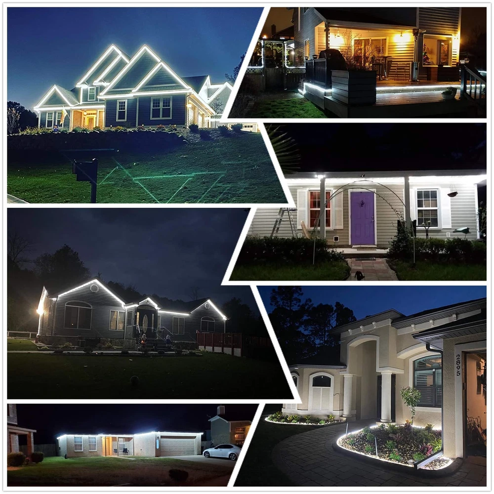 Description: Our LED rope lights(No Remote) are great for decorating stairways, railings, ceilings, desks, windows, boats, clubs, parties, galleries and special holidays. This LED rope lights are encased in highly flexible PVC tubing . Feature Suitable for decorating stairways, railings, ceilings, desks, windows, boats, clubs, parties, galleries and special holiday The structure is simple, clear, convenient installation, cost-effective Energy-saving and longer-life Crystal clear pvc tubing for durable use and brighter Easily to bend into any shape Light healthy, no radiation, no pollution Protection of , DC power drive, avoid frequent flash can cause eye damage High flexibility, temperature sustainability, and uv resistance 100FT Specifications: Color: Warn White/ Cold White/ Blue/ Multicolor /Red Total Length: 100 Ft LED Bulbs:1080 Tube Diameter: Φ10mm Beam Angle: 45° LED Quantity:36 LEDS/m Package included: 1 x User Manual 1 x 100 Foot Flexible LED Light Rope 2 x Power Cord With Connector 2 x Middle connectors 2x End Caps 30x Clips Please Kindly Note: only LED strips are waterproof and connectors are non-waterproof. Safe and reliable: This led rope lights has high-quality copper wire, which makes it have excellent electrical conductivity, provides stable lighting and guarantees the life of the LED.(No Remote ) Outdoor rope lights waterproof(No Remote ): The deck lights cord has excellent waterproofness, protection IP65, very suitable for long-term indoor or outdoor use (note that the plug is not waterproof). Easy to install and cut off: The rope lighting device can be directly plugged into a household power socket. And it can be cut off between each LED without damaging the remaining light bars. It can also be extended with a connector (with instructions for use). Suitable for various occasions: any shape that can meet your indoor and outdoor decoration needs. It is suitable for providing decorative lighting for buildings, windows, sidewalks, terraces, gardens, fences, porches, restaurants, clubs, bars, boats, stairs, railings, parties and holidays. [After-sales service]-If you have any questions about the rope lights, please us, we will provide you with the best solution.