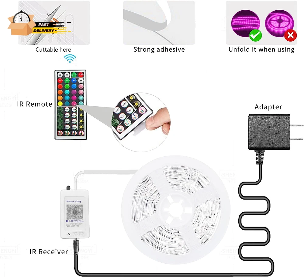 Store New Arrivals Add to Favorite View Feedback Contact 100Ft Led Strip Lights RGB Music Sync Color Changing,Bluetooth Led Lights with Smart App Control Remote,Led Lights for Bedroom Room Lighting Flexible Home Décor Description Light Source Type LED Item model number ST51_K2430 Style Modern Number of Items 5 Power Source Corded Electric Number of Light Sources 1 Control Method App Warranty Description 2 years. Theme Music Batteries Included? No Controller Type Remote Control Connectivity Protocol Bluetooth Wireless Communication Technology Bluetooth Material Vinyl Package Dimensions 9.41 x 8.11 x 0.71 inches Item Package Quantity 1 Indoor/Outdoor Usage Indoor Light Color Multicolor Batteries Required? No Item Weight 9.9 ounces Connectivity Technology Bluetooth Occasion Christmas Special Features Color Changing Special Feature Color Changing Part Number ST52_N12430US_LY Color Multicolor Voltage 24 Volts Included Components Adhesive tape Size 100FT APP and IR Remote Contorl: With a stable bluetooth connection,control your LED lights,freely change in 16 million colors,adjust brightness,customize modes (Flashing,Jump,Fade,etc) in different speeds. Music Sync: The built-in mic make the LED lights color-changing with the ambient music,easily create party atmosphere. Timing Setting: The Led strip will turn on/off automatically at the setting time, repeat this seting on date you set. Widely use: The led strip lights 100FT is long enough, perfect for decorating your bedroom, kitchen, ceiling, living room . Widely used on holidays and party (such as christmas, halloween,birthday,wedding .etc ) Easily Setup: Tear off strong adhesive tape on light strips,stick the strip lights on a clean,dry surface,finish in minutes. Product Description Come on,Light up with KSIPZE! Easily transforming different atmosphere for same space. Do whatever you want in minutes:Candlelight,Romantic,Dating,Movie,Festival and Party. Usually used in bedroom,living room, kitchen,mirror,bar,book store,etc. What you get: LED strip lights Remote Adapter Control box User manual Smart APP LED Strip Lights - Easy Install in Minutes:Tear off and stick the strip lights on a clean,dry surface - DUAL Control: Both APP and IR Remote,Use Conveniently - Freely change in 16 million colors,adjust brightness - Flashing,Jump or Fade in different speeds - Music Sync: The built-in mic make the LED lights color-changing with the ambient music - Timing Setting: Set to turn on/off at specified time, and repeat this seting on date you set Customize Your Lighting, Decorate your life! Music Sync The built-in mic make the LED lights color-changing with the ambient music,easily create party atmosphere. Timing Setting The Led strip will turn on/off automatically at the setting time, repeat this seting on date you set. 16 Million Colors Not only equipped with light colors like RGB (Red, green, blue), white and other 16 colors, but also 16 millions colors provide endless decor options. Multi Scenes ABOUT US We offer the best prices around on high quality products. Our E-store includes media such as books, movies, music and games while offering electronics, toys, sporting apparel, clothing, tools, general home, garden items and more. SHIPPING We are always working hard to ensure your package arrives as soon as possible. Please understand that some factors like weather, high postal traffic, and the performance of shipping companies are outside of our control. We offer free shipping to the lower 48 states and ship within 2 business days of payment, usually sooner. We do not accept P.O. Boxes. Please provide a physical address. For shipping outside of the continental USA, we only use eBay's Global Shipping Program.The item is shipped to KY and then sent to the rest of the world. International customers are responsible for all duties and taxes. Continue to check out in order to calculate costs for shipping the item to your country. Messages regarding eBay's Global Shipping Program MUST be directed at eBay EXCLUSIVELY. RETURNS We offer a 30-Day Return Policy on items which you are not completely satisfied with. You have the option for a full-refund or an exchange of the item. No returns are available on items shipped outside of the USA. PAYMENT We accept PayPal. CONTACT US This page content is yet to come Please ad us to your favorite seller and visit again later Thank You CUSTOMER SATISFACTION We try our very best to make sure every customer is completely satisfied. If there's a problem, message us! We're happy to help. WE ACCEPT Copyright © 2021 AutoDS. | All Rights Reserved