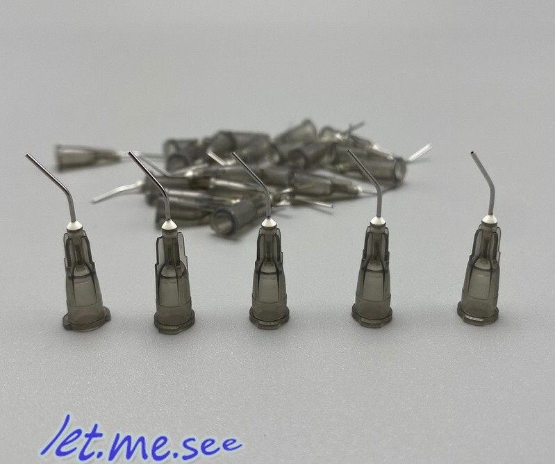 Dental Disposable Irrigation Needle Syringe Tips Packing: Total 100Pcs, 100pcs/Package Model: 22G Internal diameter: 0.7mm Color: Grey Available sizes: 22G Features: Disposable, non-sterile, multi-purpose. Convenient to use. For etchants, resins and flowable composites. Professional Use Only rinse tips
