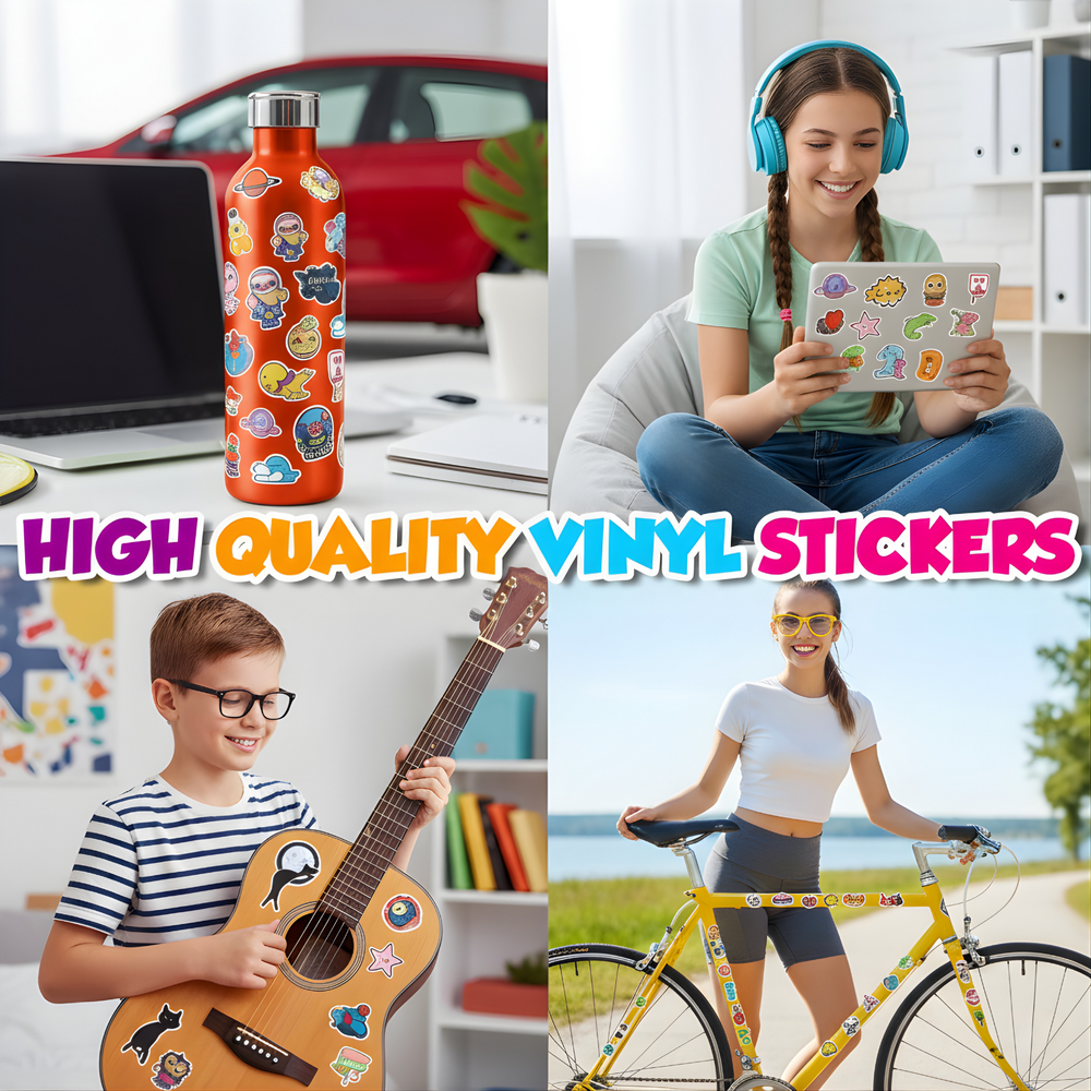 Quantity: 100 high-quality stickers. Size: Each sticker measures approx 2 inch. Note: All stickers are unique with no duplicates Perfect For: Decorate your Laptop, Water Bottle, Phone, Kindle, Scrapbook, Skateboard, Luggage, Fridge, and more! Add some personality and fun anywhere you like. Material: Premium Vinyl (PVC) Just peel and stick on any flat surface. SHIPPING INFORMATION: Shipping Worldwide by International Post ***TRACKING NUMBER WILL BE PROVIDED***