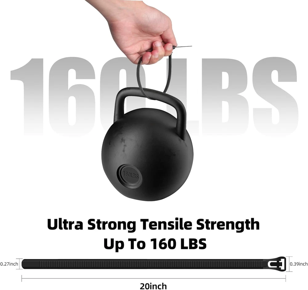 Made of strong and flexible nylon PA66 material,Those cable Ties can withstand temperatures ranging from 40℉~185℉ Self-Lock Design and powerful lock: You can easy to tie wrap your stuff and prevent snagging and easy to loosen and reuse when you need to change/add/delete something Application:Widely used in office,home,garden, You can use the Cable Ties to organize power cords, charging cables, USB cords,or other electronic equipment .Good Chocie to sort different wires,zippers Heavy Duty tensile strength:Black Nylon Tie Wraps can wistand Up to160LBS Specifications Item Name:Cable Ties Color:Black Material:Nylon Feature: Made of strong and flexible nylon PA66 material.Durable and last,Perfect for using in any condition, indoor and out. Unique Self-Lock Design, powerful lock,more tight and easy to opration,You can easy to tie your stuff and prevent snagging. Temperature resistant:The Cable Ties can withstand temperatures ranging from 40℉~185℉. Multi use: In Daily Life,the cable tie can use in many way,you can use it to tie your light string and.you can use it to organize power cords, charging cables, USB cords, or other electronic equipment.Easy to loosen and reuse when you need to change/add/delete something. Works great for other uses, too. Locking mechanism works well.