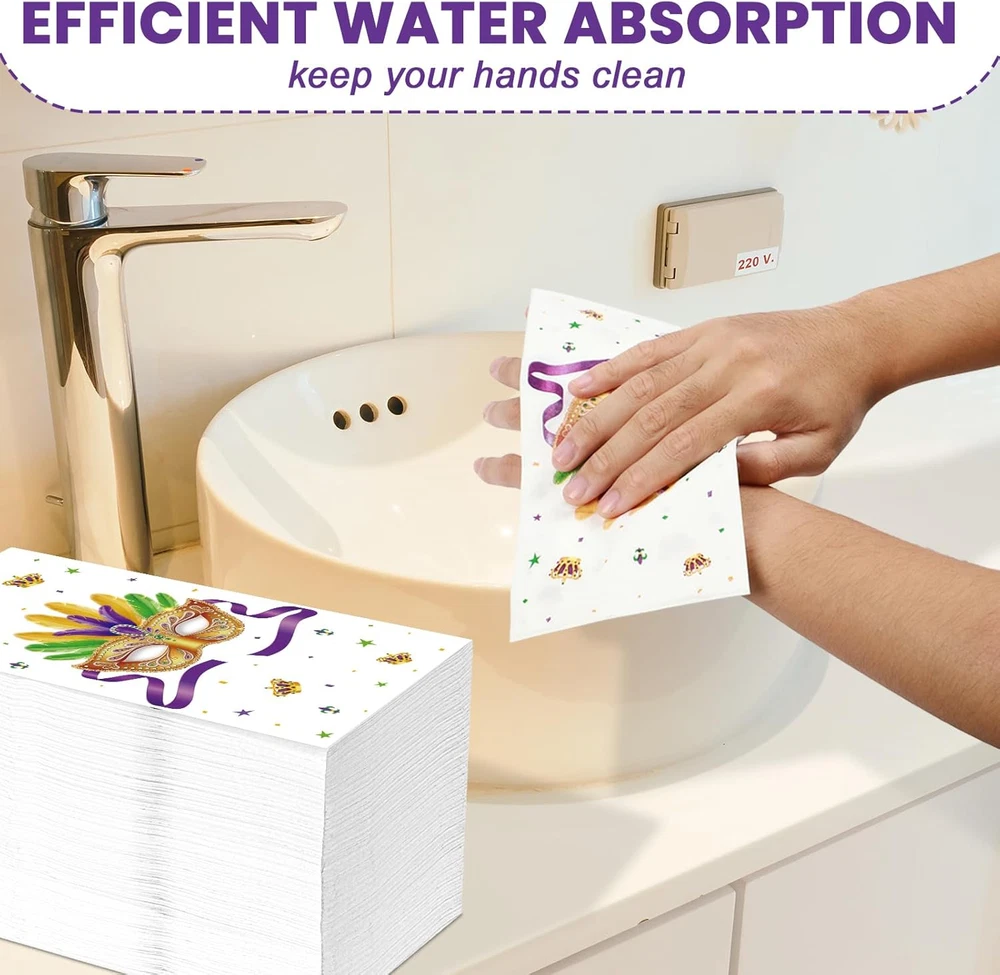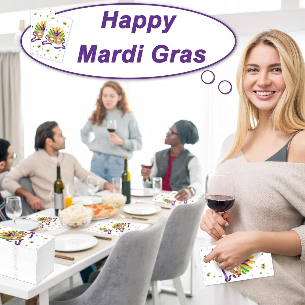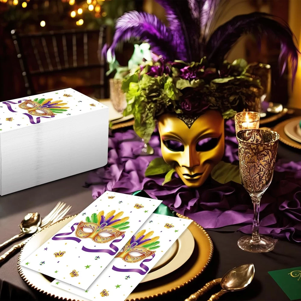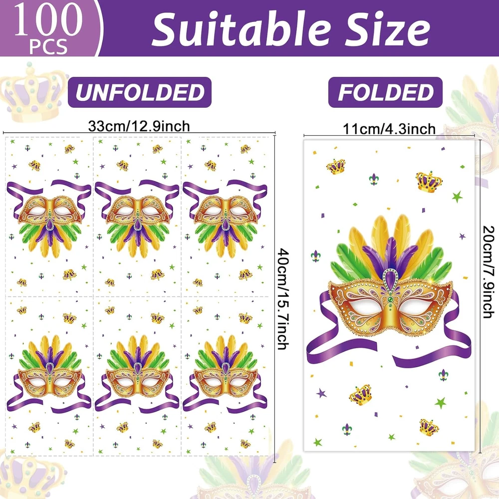 100Pcs Mardi Gras Paper Napkins Mardi Gras Guest Towel Happy Mardi Gras Disposab