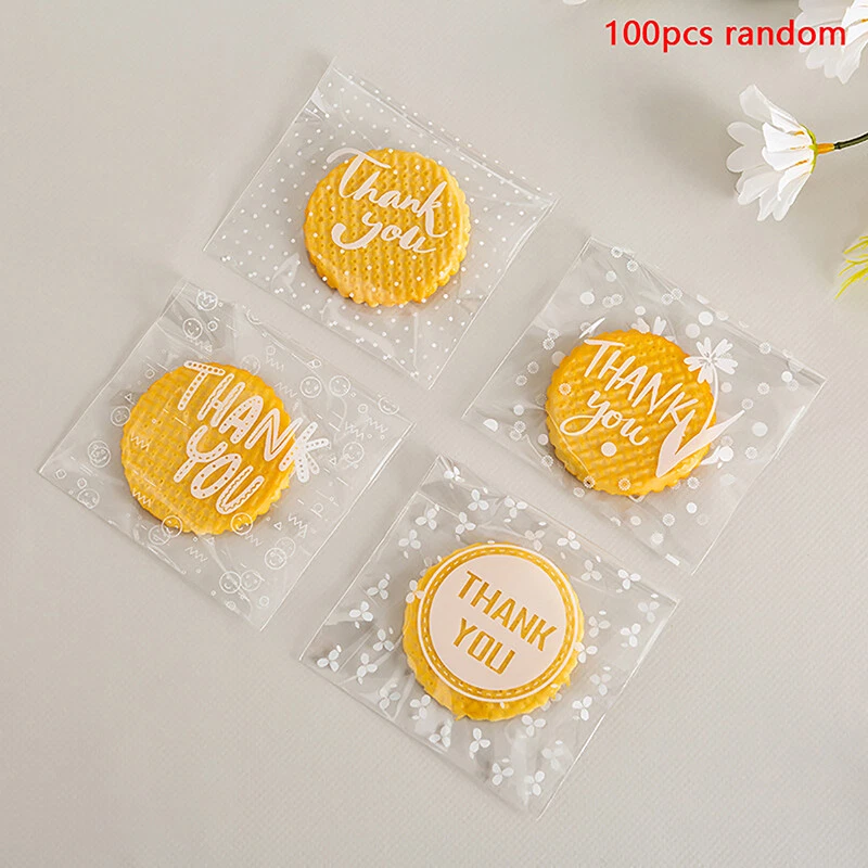 100Pcs Mixed Styles Plastic Transparent Thank You Flower Packing Bags