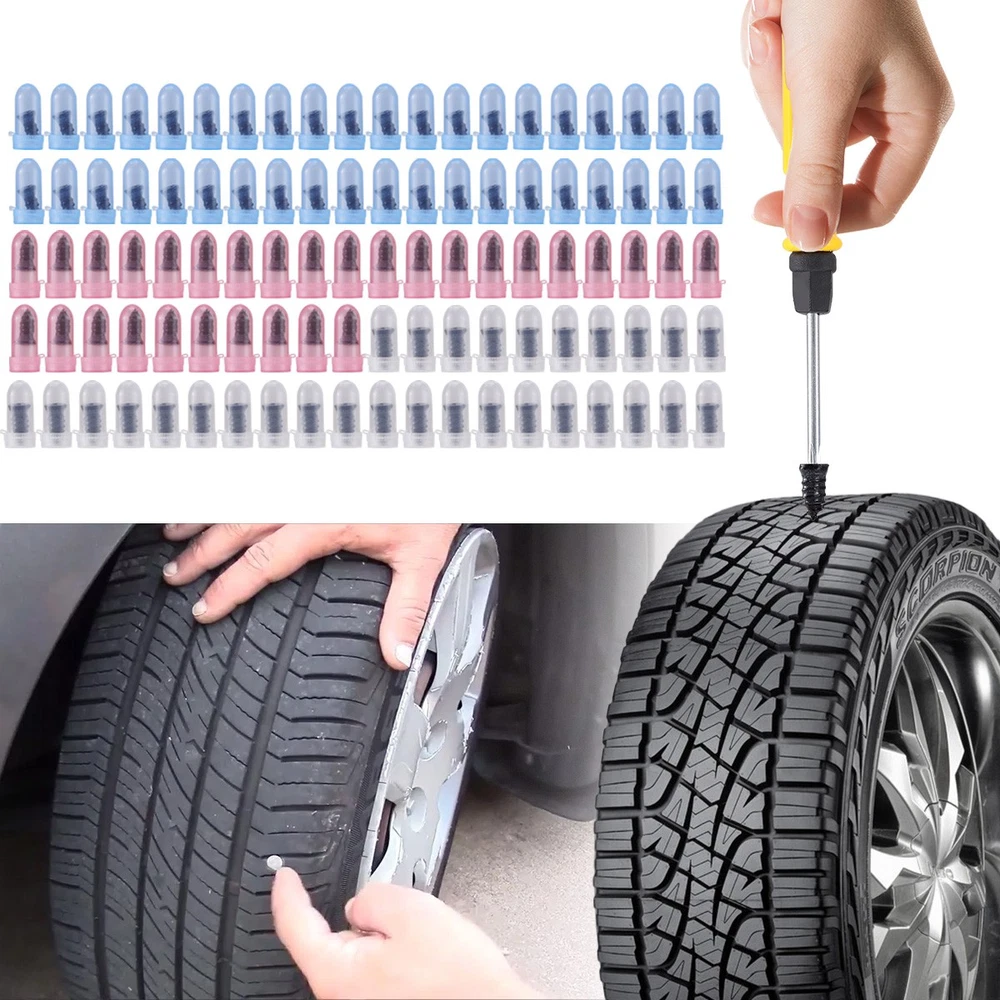 100Pcs Tire Repair Rubber Nails Tyre Puncture Repair Screws Kit with Screwdriver