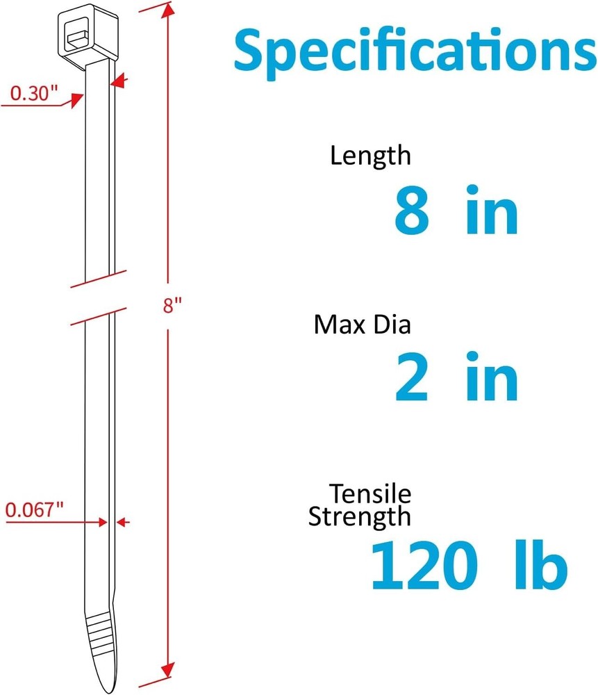 About this item Heavy Duty: The width of our black zip ties is 0.3 inch, while industry standard products is 0.14 inch, Stronger than others. Quality Ratchet Case: Our cable ties Contains four thick teeth, while industry standard is three, provide up to 120 LB tensile strength. Indoor or Outdoor Use: With various applications for home, shed, garden, garage. Also can be safely used for organizing electrical wires and PC cords. Easy Storage: Our wire ties are stored in a resealable see-through bag, makes storage and use ease and convenience. Warranty: Our plastic ties have a 1-year warranty period. Customer will receive a 100% refund if any quality issue under warranty period.