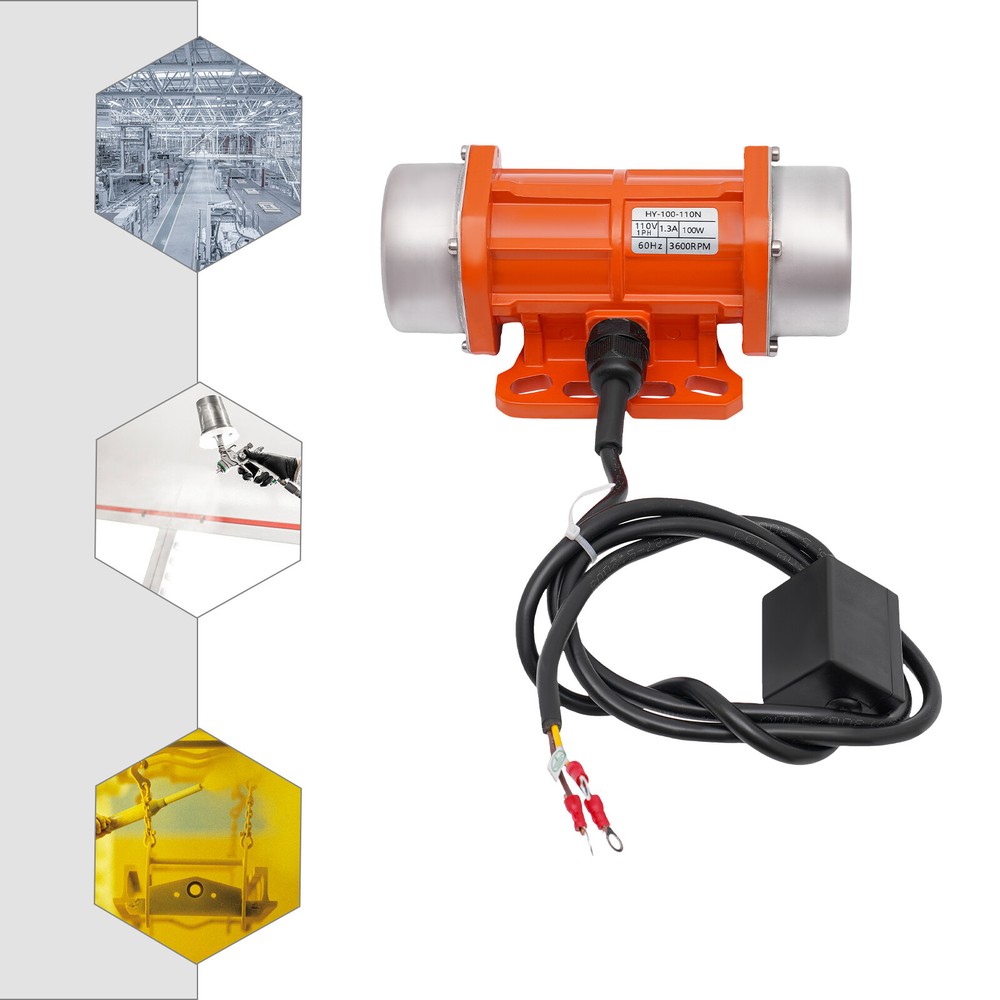 Application It can be used in various vibrating machinery such as a vibrating conveyor, vibrating feeder, vibrating ore drawer, etc. It is suitable for mining, metallurgy, coal, electric power, construction, chemical industry, medical supply, foundry, food, dusting machine, sieving powder, food machinery, and other fields. Specification Material: Stainless Steel, Aluminum Alloy Color: Orange Surface Treatment Process: Powder Coating Process Gross Weight: 2.5kg/5.5lbs Net Weight: 2.4kg/5.3lbs Package Size: 21*15*13cm/8.3*5.9*5.1inch Product Size: 11*14.9*7.05cm/4.3*5.9*2.8inch Rated Power: 100W Rated Voltage: 110V Rated Speed: 3600rpm Package Included 1 x Vibration Motor 100W 110V Electric Vibration Motor AC Industrial Vibrator Single Phase Vibrating Description Do you have problems such as difficulty in cutting materials or difficulty in screening? This vibration motor has large power, which can help you save labor and improve work efficiency. You can adjust the angle of the eccentric block to adjust its vibration force according to your own needs. It truly realizes one machine with multiple uses, and is a high-quality power source for all kinds of vibrating machinery! Key Features Ideal Power Source: This vibration motor combines the power source and the vibration source into one with a large vibration force. It is an ideal power source for various vibrating machines. Durable Motor: This vibration motor is made of high-quality aluminum alloy and stainless steel, which has high strength and is not easy to deform. The surface adopts a powder spraying process to improve the corrosion resistance of the shell, which is not easy to fade and can be used for a long time. Low Noise: The vibration motor adopts high-quality silent bearings, the motor runs with little noise, and the working environment is relatively quiet. Smooth Operation: It uses high-quality cold-rolled silicon steel sheets and high-quality bearings, and undergoes multiple processing, so it runs very smoothly. Adjustable Vibration Force: The vibration force can be adjusted by adjusting the angle of the eccentric block to meet different power requirements. Stable Structure: This vibration motor adopts a sealed structure, all parts are tightly connected, and the structure is stable. It has a thickened base at the bottom to ensure the smoothness of the motor during operation. Enclosed Design: This vibration motor adopts a closed structure with sealing grooves at both ends, which is well sealed, dustproof and moisture-proof , and can maintain good working performance in dusty or wet harsh environments. Good Insulation: The vibration motor adopts pure copper enameled wire winding, the stator is vacuum impregnated, and there is a protective cover outside the power cord, which improves the insulation of the motor and ensures the safety of the working environment. Good Heat Dissipation: The vibration motor adopts an aluminum alloy casing, which dissipates heat quickly and has a low-temperature rise, which can effectively prevent the motor from being overheated and affecting performance under long-term operation. Anti-scratch : The surface of the vibration motor is treated with powder coating, which effectively protects the motor from being scratched during the working process. Easy to Move: The small size (4.3*5.9*2.8inch) and lightweight (5.3lbs) of this vibration motor make it very convenient to change the working position. Beautiful Appearance: The appearance of this vibration motor is symmetrical, the orange aluminum alloy shell is bright in color and matched with the silver stainless steel side cover, and the overall appearance is very beautiful. Reliable Quality: This motor has passed the CE certification, and the quality and performance are well guaranteed. Details Aluminum Alloy Shell: The shell of the vibration motor is made of aluminum alloy, the surface is smooth and does not scratch the hand, and it is not easy to deform, which can effectively prevent the internal parts from being squeezed. Power Cord: A protective cover is provided outside the power cord end to protect the power cord from damage under long-term vibration. Thickened Base: The base of the motor is thickened, which reduces the center of gravity of the motor and increases the contact area. It can be placed on the working platform stably, and it will not easily roll over or shift even if it is subjected to long-term vibration. Application It can be used in various vibrating machinery such as a vibrating conveyor, vibrating feeder, vibrating ore drawer, etc. It is suitable for mining, metallurgy, coal, electric power, construction, chemical industry, medical supply, foundry, food, dusting machine, sieving powder, food machinery, and other fields. Specification Material: Stainless Steel, Aluminum Alloy Color: Orange Surface Treatment Process: Powder Coating Process Gross Weight: 2.5kg/5.5lbs Net Weight: 2.4kg/5.3lbs Package Size: 21*15*13cm/8.3*5.9*5.1inch Product Size: 11*14.9*7.05cm/4.3*5.9*2.8inch Rated Power: 100W Rated Voltage: 110V Rated Speed: 3600rpm Package Included 1 x Vibration Motor Notes Please allow the slight color difference caused by the shooting light and 1-3 cm error due to manual measurement, and make sure you do not mind before ordering. Notes Please allow the slight color difference caused by the shooting light and 1-3 cm error due to manual measurement, and make sure you do not mind before ordering. Welcome to the ktnauto ! We are committed to providing customers with better and more favorable products ! If you have any questions, please feel free to contact us ! Thank you for your support ! Payment Delivery details Terms of sales About us Contact us Payment We accept ebay payment ă Fees such as import duties, taxes are not included in the item price or shipping costs. These charges are the buyer's responsibility. Delivery details Shipping: 2-9 working days to: USA Terms of sales We maintain high standards of excellence and strive for hundr