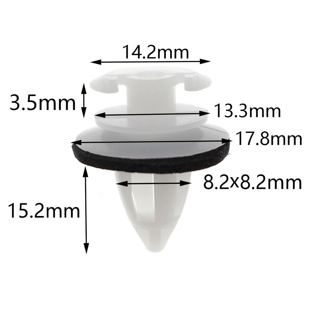 100X Door Panel Clips For BMW 325i 325Ci 330i 525i 530i 328i 318is 528i 740i Specification : Condition: 100% Brand New Top head diameter: 14mm Middle head diameter: 13mm Bottom head diameter: 17.7mm Stem diameter: 8mm-9mm Stem length: 11mm Manufacturer Part Number: 51411973500, 51418161527 Application : for BMW X5 2007-2012 for BMW 325Ci 2001-2006 for BMW 330Ci 2001-2006 for BMW M3 1995-2006 for BMW 325i 1992-2005 for BMW 325Xi 2001-2005 for BMW 330i 2001-2005 for BMW 330Xi 2001-2005 for BMW 525i 1992-2001 for BMW 530i 2002 for BMW 740iL 1995-2001 for BMW 750iL 1996-2001 for BMW Z3 1996-2001 for BMW 328i 1996-2000 for BMW 318ti 1996-1999 for BMW 318is 1992-1999 for BMW 528i 1997-2000 for BMW 540i 1994-1999 for BMW 740i 1995-1998 please make sure it will fit your machine before purchasing it. Please check pictures for more details. Package list: 10 0pcs* Clips You will receive exactly what you see on the picture Payment Delivery details Return About us Contact us Payment 1.We charge extra shipping fee to Remote areas of USA. 2. We do not ship to APO/FPO/PO Box . Your physical address is required. 3. We only accept payment from, and ship to, Confirmed ebay addresses. 4. Tracking number will be uploaded to eBay within 24 hours once item shipped. 5. For International shipment, Buyer are responsible for the Import duty and tax. 6. If your parcel hasn’t arrived after the estimated delivery time, please contact us We will try our best to help. Once shipping company confirmed parcel has been lost, we will send you the new replacement or issue a full refundand please trust us that we will provide the perfect solution for you. Delivery details Please leave your full name, phone number and full address when you place your order. We ship to your eBay or Paypal address. Please make sure your eBay and Paypal address is correct before you pay the order. We will pack the product tightly to ensure that it arrives to you in perfect condition. If your parcel hasn’t arrived after the estimated delivery time, please contact us We will try our best to help. Once shipping company confirmed parcel has been lost, we will send you the new replacement or issue a full refund. Please note that shipping company need 10-14 business days to investigate the case. Please allow us have more time to handle your case, and please trust us that we will provide the perfect solution for you. Return Once a problem occurs with the purchased product, please do not hesitate to let us know with Ebay messages,we will offer you refund or replacement. We committed to provide good quality products to all our customers. We accept return or exchange within 30 days after purchase. No hassle for refund and exchange, all we ask is that you send back the item in the same condition was received , brand new condition. Refund or exchange will be issued within 6 business days after we received the returned item and inspected it. Please contact us for a Return Authorization Number by eBay messages between 9:30 a.m. to 6p. m PDT (Monday to Friday) , without Return Authorization Number , we couldn't identified your return . Your refund will be issue to your Paypal within 6 business days , Paypal unique refund transaction ID number will be provided. Please keep in mind, you might need extra 2-7 business days for the refund to deposit in your account , it depends on your credit card company. About us High quality products; Professional technicians and responsible salespersons; 2-year warranty; Fast shipping. Contact us 1. We are here to help with any questions or problems you may have. Please feel free to contact us by eBay message. During the working hours , we will reply all your messages promptly .Some message sent after business hours will be replied within 12 hours. We are off on the weekend, messaged we got on the weekend will be replied on coming Monday. 2. We greatly appreciate your POSITIVE feedback. Please do NOT leave negative or neutral feedback without asking for help. 3. We aim to provide Top Level Customer Service, we will try our best to solve the problem for you. 4、We use UPS/Fedex expedited shipping service, the actual estimated delivery time is around 2-7 business days which is much shorter than eBay item page shown. Brand Autopartsmusi Superseded Part Number 51411973500, 51418161527 Interchange Part Number cilp cilps cover, door , exterior floor mat push Material Plastic Nylon Primary Color White Type clips Number of Pieces 100 Color White Manufacturer Part Number Car,Rivets,Fastener,Retainer,Clip,Seal,O-ring,Set Placement on Vehicle Front, Left Side, Rear, Right Side Fitment Type Direct Replacement Manufacturer Warranty 3 Months