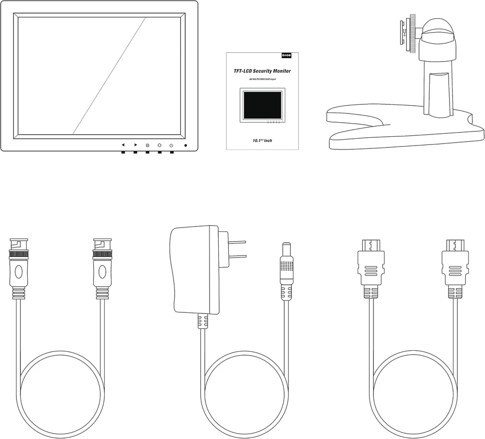 TOGUARD Portable Monitor Touch Screen Monitor CCTV AV/VGA/HDMI/BNC/USB Input 139.09 USD Free shipping Corprit 15.6" Portable Monitor 1080P USB C Second Extended Screen For Laptop 149.69 USD Free shipping 15.6" Portable Monitor WiFi Gaming Monitor 60Hz 1080P FHD Gaming Display Screen 149.89 USD Free shipping 10.1" Small Monitor 1920x1200 FHD Display Surveillance Second Screen w/ Speaker 94.99 USD 99.99 USD Free shipping 5% off Corprit 4K Portable Monitor 15.6" 100%sRGB Second Screen For Laptop Computer PC 129.69 USD Free shipping Portable Monitor 15.6 inch LCD Display Screen with HDMI USB Type C Input for PC 123.21 USD 129.69 USD Free shipping 5% off Product Description 💻💻10.1 Small HDMI Monitor ⭐10.1 inch IPS High Resolution Feature 1920*1200 IPS screen, 400cd/m2 high brightness, 178 degree viewing angle ensure minimal distortion and color shift even when you're viewing from extreme positions. ⭐Built-in Speakers With built-in speakers, the cctv monitor delivers office level audio for conference calls and internet workshops. Saving space on your desk at the same time. ⭐Wall Mountable The VESA wall mount pattern gives you the freedom to select the optimum viewing position for your monitor, eliminate cable clutter, and save valuable space for your gaming and work station. ⭐Multiple Ports With USB/HDMI/VGA/AV/BNC interface, compatible with laptop, PC, phone, PS3, PS4, Raspberry Pi etc. Great choice for working, gaming, bussiness, CCTV. 👉Specifictions Resolution: 1920*1200 Brightness: 400cd/㎡ Color: 16.7M Screen Contrast: 500: 1 Aspect Ratio: 16:10 Video Input: VGA/HDMI/USB Power: DC 12V 👉Package 1*10.1 inch Monitor 1*12V DC Power Plug 1*Adjustable Mount 1*BNC Cable 1*HDMI Cable 1*User Manual 👉Tips 1. Without built-in battery, the hdmi monitor should be used with DC power plug in for power supply. 2. Support two way installation, this 10.1 inch hdmi monitor can be easily mounted on the wall with the industry standard VESA 75 mount ( not include ) powered by 9.26" Touch Screen Car Stereo Radio For Wireless Apple Carplay/Android Auto GPS 59.99 USD Free shipping 2 IN 1 Wireless Carplay Android Auto Adapter, USB Type C Plug & Play Car Dongle 35.99 USD Free shipping 9.26" 4K Front Dash Cam Portable Wireless Apple Carplay Android Auto Car Stereo 105.29 USD Free shipping 2 in 1 Android Auto Wireless Adapter Wireless CarPlay Adapter Plug Play Radio 34.19 USD Free shipping 9"Touch Screen Portable Car Stereo Radio Wireless Apple Carplay/Android Auto GPS 65.36 USD Free shipping 9"Portable Car Stereo Radio Wireless Apple Carplay&Android Auto GPS+Rear Camera 68.99 USD Free shipping 9in Wireless Apple Carplay with 1080P Reverse Camera GPS Touch Screen Car Stereo 69.29 USD Free shipping Wireless Carplay Adapter USB Dongle Plug & Play For Apple Carplay Android Auto 33.59 USD Free shipping Wireless Car Stereo Apple Carplay with 2.5K Dash Cam+1080P Camera GPS Navigation 90.99 USD Free shipping 8" Portable Car Stereo Radio Wireless Apple Carplay/Android Auto Touchscreen GPS 48.99 USD Free shipping 10.26 Inch GPS Navigation Car Stereo For Apple Carplay & Android Auto IPS Screen 59.39 USD Free shipping 9"2.5K Dash Cam Car Stereo Radio Wireless Apple Carplay&Android Auto+Rear Camera 89.21 USD Free shipping