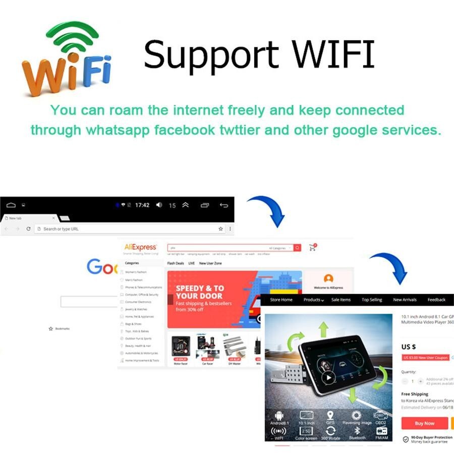 Home Payment Shipping About us Contact us Store Categories Store Categories Other Details 2.5D Touch Screen 10.1in Double 2Din Car Multimedia Player Android 9.1 Auto Radio Stereo Video GPS WiFi MP5 Player 1+16G Specifications Rotatable Double 2Din 10.1" Car Multimedia Player Stereo Android 9.1 with Up Down Left Right Adjustable Screen Wifi bluetooth GPS Nav Radio Player General - Power Supply: DC 12V (allowance range: 9.6V~13.8V) - Max. Current: 10A - Screen Size: 10 inch - Front panel Size: As picture show System - Operation System: Android 9.1 - CPU: Quad Core AC8227L A7 - ROM: 16GB - RAM: 1GB - Extended USB: Support USB Disk up to 32GB Display - Touch Screen: Yes - Resolution: 1024*600 - Capacitive or Resistance Screen: Capacitive - Built-in Clock and Calendar: Yes, show real time and can use network-provided time - Main Menu Status Bar display: Can be changed to Music/Radio/BT-Stereo Player and Clock/Date/Week WiFi/3G/4G - Connector: On the Back - WiFi: Built-in WiFi Modem, support 802.11b/g/n - Supports 4G & 3G Internet Hotspot (4G Dongle and 3G Dongle are not included) Internet - Explorer: Opera, UCWeb, SkyFile, Dolphin and more explorer for your selection - Online Entertainment: Online Video, TV, Movie, Music, Radio, Video Chat - Online Navigation: Online Google Maps Navigating - Online Games: Yes, online play or you can download it from google play store - Online Communication: WeChat, Twitter, Facebook, Skype, Gmail, Whatsapp etc. - Read and edit Office Software: Yes, support Word, Excel, Powerpoint, PDF, TXT Audio - Format: MP3/WMA/MP2/OGG/AAC/MA4/FLAC/APE/WAV etc. Could play via song list - Record: MP3, WMA - Other: LRC synchronized display; ID3 search; Search by files; Album Picture; User-defined audio effect - Audio IC: Top Global Cirrus IC, independent audio decoding - SNR: Noise rations:=90dB Video - Format: Support AVI (H.264, DIVX, XVID), RM, RMVB, MKV (H.264, DIVX, XVID). WMA, MOV, MP4 (H.264, MPEG, DIVX, XVID). DAT (VCD format). VOB (DVD format). PMP, MPEG, MPG. FLV (H.263, H.264). ASF, TS, TP, 3GP, MPG etc. =30 formats, Playing internet video directly (while downloading) - Play: Up to 1920*1080 Pixels, 30Mb. Fluent play without light spot GPS - Support Maps: IGO, Sygic, Google Map etc. - Voice Guidance: Yes - Support 2D/3D Map Views: Yes - Dual Zone: Yes, navigating while music playing - Online Navi: Yes, support google maps online navigating Bluetooth - Hands Free: Yes - A2DP (Bluetooth Stereo Music): Yes, can play stereo music through Bluetooth - Bluetooth Music Control: Yes, play/pause/previous/next - PB-Download: Yes, can download phonebook from mobile to this unit - PB-Search: Yes, can use the first letter to search contact member in PB-Listings - Calling Records: Yes, Dialed Call, Received Call, Missed Call - Setup: Auto Answer, Auto connect, Device name - Built-in Microphone: Yes, on the front panel Radio - FM Tuning Range: 87.5-108MHz - FM Increment: 0.05MHz(EU)/0.1MHz(US) - FM Area: Europe/USA1/USA2/Japan/Russia USB - Position: 2 USB Port, can be connected with Media/Camera/DAB+ Box/Smartphone - Play MP5 Videos: Yes, can play RMVB Videos up to 1080P - Touch Music Title to play directly: Yes DVR - Built-in Car Recorder App: Yes, just connect a USB Camera to use this function - Support HD CCD Camera: Yes - Play recorded Video directly: Yes - Storing Position: Nand Flash/GPS Card/SD Card/USB Storage can be changed DAB(+)-IN - Support(DAB+ BOX NEED TO BUY SEPARATELY) DTV-IN - Built-in Digital TV Tuner: No - External Port for TV Box: Yes, Support DVB-T/DVB-T2/ATSC/ISDB Box - Power Supply to TV Box directly: Yes, you can connect our TV Box to achieve this function - Touch Control the TV Box on unit: Yes, you can connect our TV Box to achieve this function Additional - Textbook: Could change font, font color, background color, bookmark, reading E-book while listening music - Photo Viewer: Support JPS, BMP, PNG, GIF etc. format. play by revolve, Powerpoint Support 4096*4096 Pixels - Wallpapers: live wallpapers, standard wallpapers, support DIY wallpaper from Gallery - APK Installer: Support Android Package installer - Support Torque Pro(OBD2 &Car): Yes, you can connect a Bluetooth OBD2 Scanner Tool to use this function - Support Mirror Link function: Yes, support screen mirroring from iPhone and android smartphone - Support TPMS: YES (Not Included) Setup - WiFi/Hotspot/Bluetooth: Yes - Brightness level adjustable: Yes - Wallpaper: Wallpapers/Live Wallpapers/Gallery - Sound: Key Tone & Volume - Storage: Display Internal Storage/Nand Flash/Connected Device Storage - Apps: Running Apps display/force stop/uninstall - Security: Yes - Accounts: Yes - Languages and Input: more than 70 Languages and choose input method - Backup and Reset: Yes - Date and Time: Setting Date&Time by yourself or choose GPS/network-provided time - Accessibility: Yes - GPS: Yes, GPS application options/monitoring/sound mode/mixing ratio - Driving safety: Watching Video, Reversing X-mirror/Volume, Reversing Trajectory/radar Display, Rear view ruler - Amplifier: Rock/Pop/Jazz/Classic/Flat/Voice/Custom - Steering Wheel Control: Yes - About Device: Display Parameter Info. Input - AUX Video In - Rear-View Camera Video In - AUX Audio In: R/L - DTV Box In - DAB+ Box In - Car DVR In - GPS Antenna In Output - Video Out - Audio Out: LF, LR, RR, RF - Surround Stereo Out: 4*45W Accessories -1 x Car Radio Stereo -1 x GPS Cable -2 x USB Cable -1 x Universal Power Cable -1 x RCA Cable -1 x Camera Input Cable Shipping Policy Payment Method Returns Policy Shipping Policy Payment Method Returns Policy Home Payment Shipping About us Contact us Home Payment Shipping About us Contact us Store Categories Store Categories Other Details 2.5D Touch Screen 10.1in Double 2Din Car Multimedia Player Android 9.1 Auto Radio Stereo Video GPS WiFi MP5 Player 1+16G Specifications Rotatable Double 2Din 10.1" Car Multimedia Player Stereo Android 9.1 with Up Down Left Right Adjustable Screen Wifi bluetooth GPS Nav Radio Player Genera