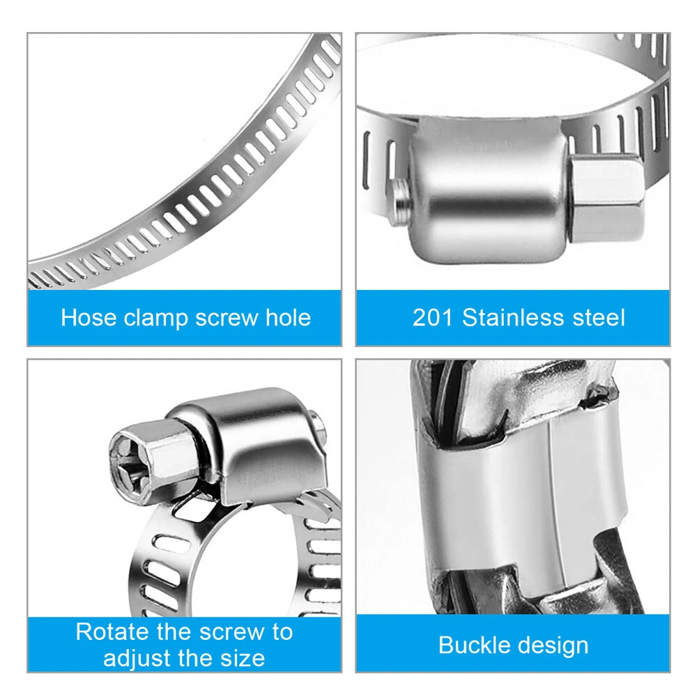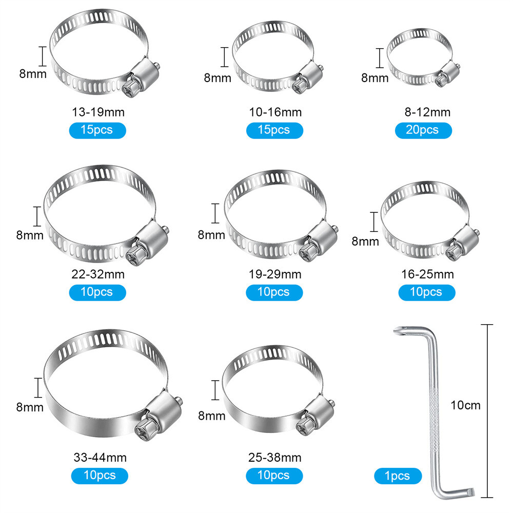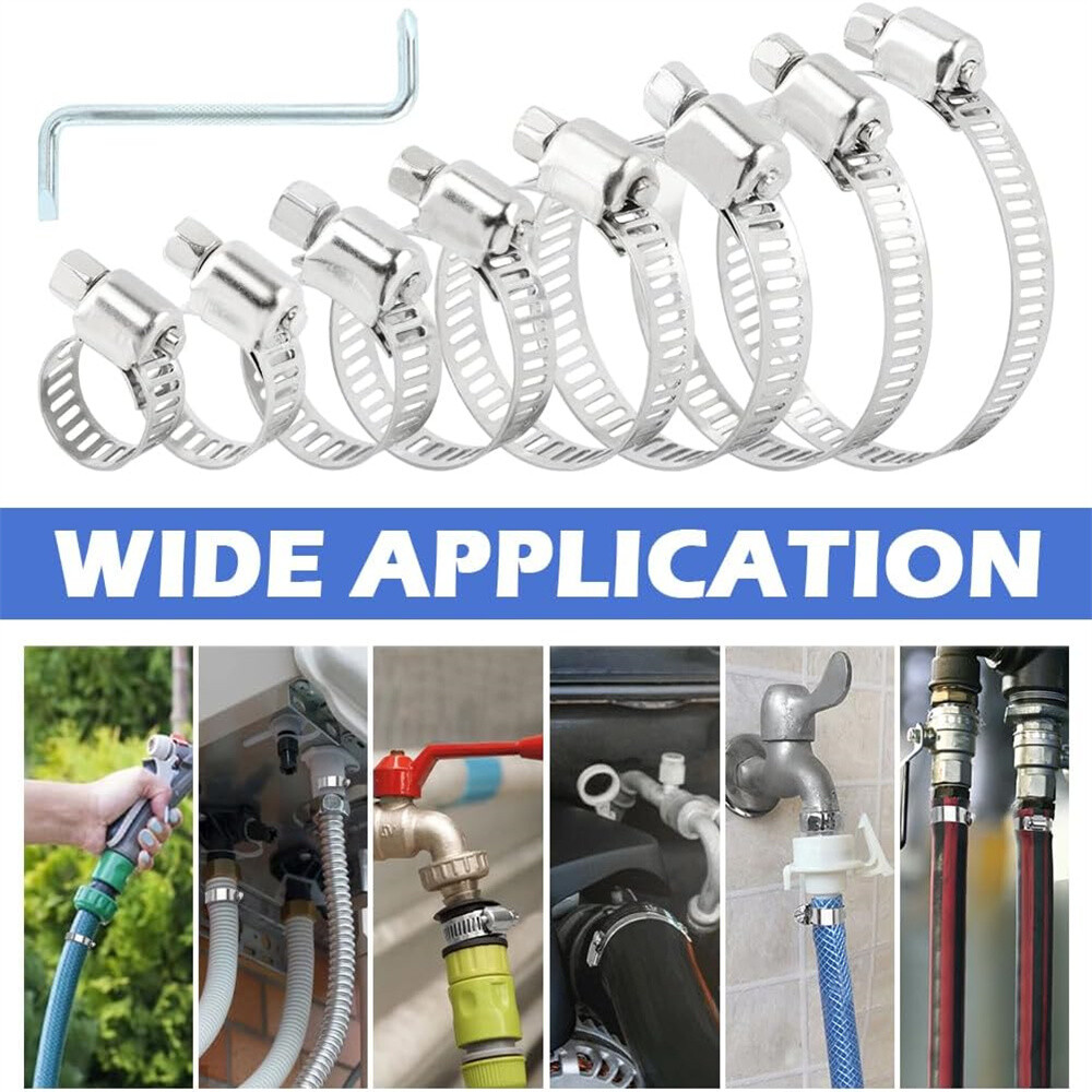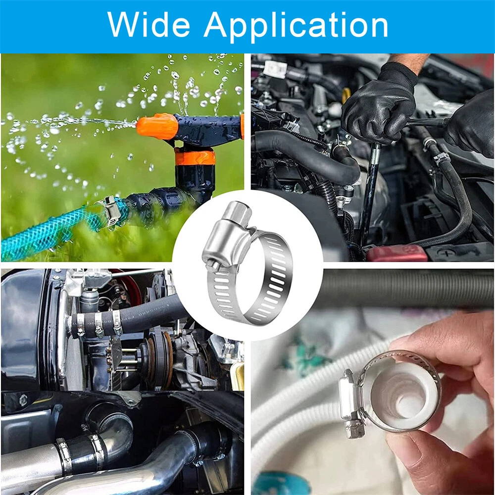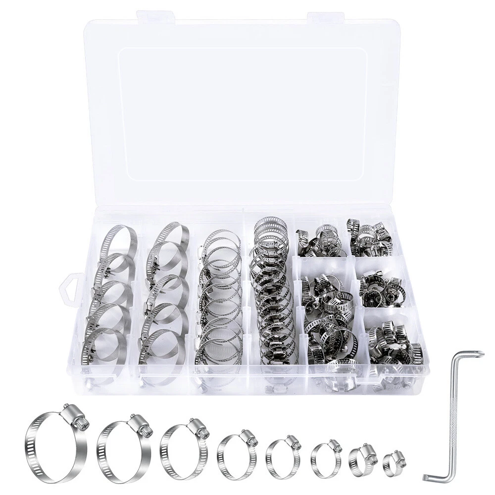 Product Description 101x Adjustable Hose Clamps 8 Sizes Worm Gear Stainless Steel Clamp Assortment Features: High-Quality Material: The hose clamps are all made of premium heavy-duty stainless steel. Anti-rust, anti-corrosion, waterproof, oil-proof. Adjustable Size: With a wide adjustable size range from 2 to 44mm/0.1 to 1.7in. Fit most types of hoses and meet your different needs. Widely Used: Clamps are used in securing hoses, pipe, cable, tube, fuel lines, etc. Suitable For: Automotive, industrial, boat/marine, shield, household, etc. Environmentally-Friendly: It can be reused and recycles, therefore, you don't need to spend extra money to buy more. Storage case: All packed in a plastic container for easy organization and storage. Specifications: Material: Stainless Steel Fit Hose Diameter: 8-12mm, 10-16mm, 13 -19mm, 16-25mm, 19-29mm, 22-32mm, 25-38mm,32-44mm Package Includes: 8-12mm..........................20pcs 10-16mm........................15pcs 13-19mm........................15pcs 16-25mm........................10pcs 19-29mm........................10pcs 22-32mm........................10pcs 25-38mm........................10pcs 32-44mm........................10pcs Screwdrivers......................1pcs Notes: Please allow a slight dimension difference due to different manual measurements. Due to the light and screen setting difference, the item's color may be slightly different from the pictures. About Us Payment Shipping Returns Contact Us 1. Unless specified otherwise, all our products are IN STOCK and are shipped from USA Local warehouse - Not Overseas! 2. We provide a 30 day Satisfaction Guarantee or your money back (provided items are in the same new and resaleable condition.) 3. We have a PayPal Verified Business Account, please buy with Confidence! 4. Every item will be tesrted before send.We know our products well and if we don't have the answers we will do our best to find them for you! 5. Our friendly team look forward to serving you! Your satisfaction is our No.1 Priority We will do our best to satisfacy you. 1.Paypal, Credit Card, G Pay etc, many payment way is accepted. 2.Please be sure your shipping address is correct before make a payment. 1.We will ship out the item within 1-3 business days after comfirming the payment, appreciate your patience. 2.If the items are broken on the way(we will check the orders clearly before we sent them),please contact us in 3 days you received it. We will send you a new one or refund your payment. 1.We stand behind every buyer.Items can be returned for exchange or refund within 30 days. 2.Please contact us when you have any confusion of our item, we will solve the trouble for you as soon as possible. 1.This is professional Seller.We will reply your message within 24 hours. 2.Please contact us whenever you have any question about the item. We will deal with it as soon as possible. 3. If you are unhappy with the item or our service,please Contact Us before leave feedback,just give me a chance,thank you! About Us 1. Unless specified otherwise, all our products are IN STOCK and are shipped from USA Local warehouse - Not Overseas! 2. We provide a 30 day Satisfaction Guarantee or your money back (provided items are in the same new and resaleable condition.) 3. We have a PayPal Verified Business Account, please buy with Confidence! 4. Every item will be tesrted before send.We know our products well and if we don't have the answers we will do our best to find them for you! 5. Our friendly team look forward to serving you! Your satisfaction is our No.1 Priority We will do our best to satisfacy you. Payment 1.Paypal, Credit Card, G Pay etc, many payment way is accepted. 2.Please be sure your shipping address is correct before make a payment. Shipping 1.We will ship out the item within 1-3 business days after comfirming the payment, appreciate your patience. 2.If the items are broken on the way(we will check the orders clearly before we sent them),please contact us in 3 days you received it. We will send you a new one or refund your payment. Returns 1.We stand behind every buyer.Items can be returned for exchange or refund within 30 days. 2.Please contact us when you have any confusion of our item, we will solve the trouble for you as soon as possible. Contact Us 1.This is professional Seller.We will reply your message within 24 hours. 2.Please contact us whenever you have any question about the item. We will deal with it as soon as possible. 3. If you are unhappy with the item or our service,please Contact Us before leave feedback,just give me a chance,thank you! You may also like 12V Smart Car Battery Charger Automatic Lifepo4 Repair Maintainer Trickle 12.69 USD 17.89 USD Free shipping 29% off 650Pcs Car Retainer Auto Fasteners Push Trim Plastic Clips Pin Rivet Bumper Kit 9.89 USD 10.99 USD Free shipping 10% off 2X Electrical Disconnect Pliers 60 Degree Electrical Connector Separator Wiring 9.99 USD Free shipping Pair 4" Inch LED Fog Lights Front Bumper Driving Lamp for Jeep Wrangler JK JL LJ 17.89 USD 22.89 USD Free shipping 22% off 2 Roll x 2" 50FT Black Exhaust Wrap Header Manifold Fiberglass Heat Wrap Tape 20.99 USD Free shipping 3in1 52mm 2" Chrome Car Triple Gauge Set Kit Water Temp Oil Pressure Volt Meter 20.99 USD Free shipping powered by