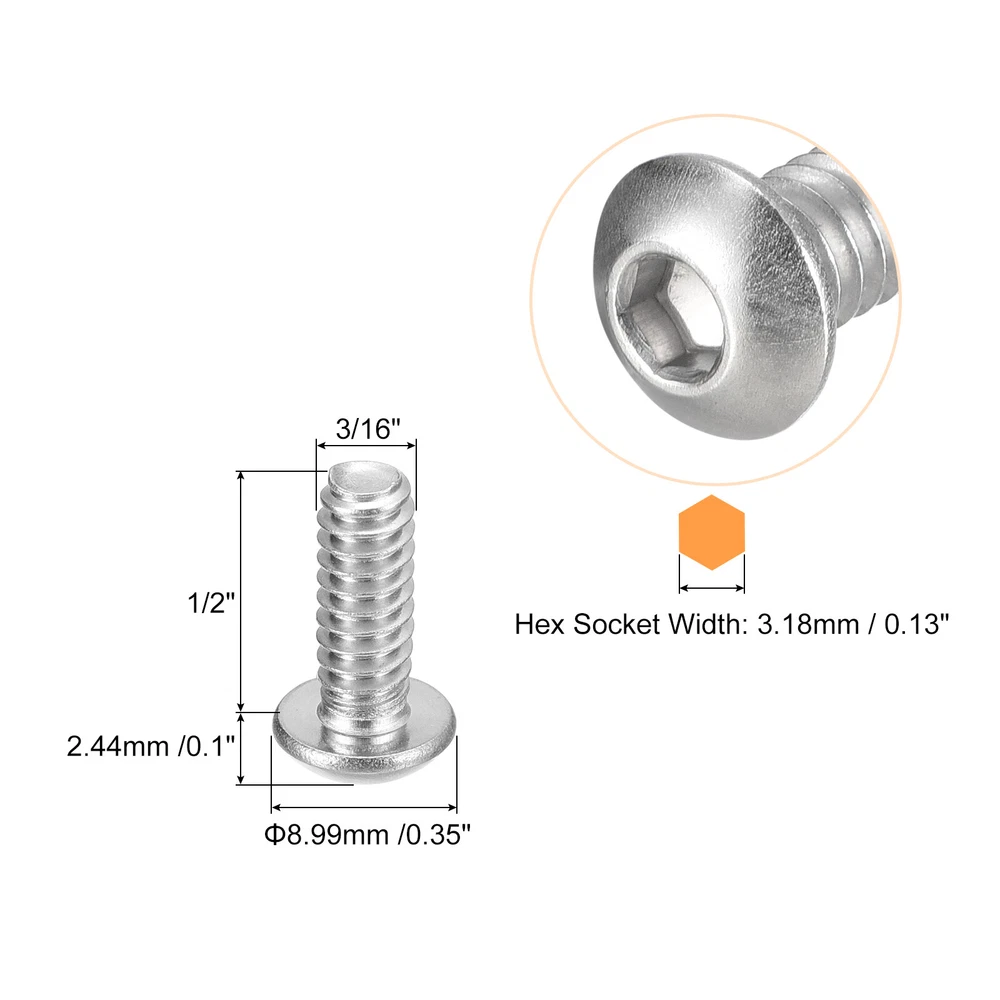 Document Description:1. Material: The button head socket cap screws are made of 304 stainless steel, which provides good corrosion resistance, durability, and long-lasting performance.2. Design: This socket head cap screw features a design with a hexagonal drive hole and a button head that provides better torque transmission and more stable performance.3. Usage Method: To use the hexagon socket head screw, insert the screw into a pre-drilled hole and turn it clockwise using a wrench. The hexagonal drive hole ensures that the drive tool will not slip or strip, providing a reliable and secure connection.4. Application: These hex socket head cap screws are suitable for various applications such as machinery, electronics, construction, and furniture assembly. Its strength, durability, and resistance to corrosion and rust make it good for indoor and outdoor use in harsh environments.Specification:Product Name: Machine Screws BoltsMaterial: 304 Stainless SteelModel:#10-24x1/2"Screw Rod Length: 1/2"Thread Diameter: 3/16"Hex Socket Width: 3.18mm / 0.13"Screw Head Size: 8.99mm x 2.44mm / 0.35" x 0.1"(Dia. x H)Applicable Wrench: 1/8"Screw Groove Type: Hex SocketPackage Content:50pcsx Button Head Socket Cap Screws #10-24x1/2" Button Head Socket Cap Screws, 50pcs 304 Stainless Steel Screws Description: 1. Material: The button head socket cap screws are made of 304 stainless steel, which provides good corrosion resistance, durability, and long-lasting performance. 2. Design: This socket head cap screw features a design with a hexagonal drive hole and a button head that provides better torque transmission and more stable performance. 3. Usage Method: To use the hexagon socket head screw, insert the screw into a pre-drilled hole and turn it clockwise using a wrench. The hexagonal drive hole ensures that the drive tool will not slip or strip, providing a reliable and secure connection. 4. Application: These hex socket head cap screws are suitable for various applications such as machinery, electronics, construction, and furniture assembly. Its strength, durability, and resistance to corrosion and rust make it good for indoor and outdoor use in harsh environments. Specification : Product Name: Machine Screws Bolts Material: 304 Stainless Steel Model:#10-24x1/2" Screw Rod Length: 1/2" Thread Diameter: 3/16" Hex Socket Width: 3.18mm / 0.13" Screw Head Size: 8.99mm x 2.44mm / 0.35" x 0.1"(Dia. x H) Applicable Wrench: 1/8" Screw Groove Type: Hex Socket Package Content: 50pcsx Button Head Socket Cap Screws Hot Item Payment 1.We accept eBay payment . 2.Payment must be received within 7 business days of auction closing. Shipping 1.We ship to your eBay or Paypal address. Please make sure your eBay and Paypal address is correct before you pay. 2.Items will be shipped within 1-3 business day when we received payment. 3.Delivery time depends on destination and other factors. Description Policy #10-24x1/2" Button Head Socket Cap Screws, 50pcs 304 Stainless Steel Screws Description: 1. Material: The button head socket cap screws are made of 304 stainless steel, which provides good corrosion resistance, durability, and long-lasting performance. 2. Design: This socket head cap screw features a design with a hexagonal drive hole and a button head that provides better torque transmission and more stable performance. 3. Usage Method: To use the hexagon socket head screw, insert the screw into a pre-drilled hole and turn it clockwise using a wrench. The hexagonal drive hole ensures that the drive tool will not slip or strip, providing a reliable and secure connection. 4. Application: These hex socket head cap screws are suitable for various applications such as machinery, electronics, construction, and furniture assembly. Its strength, durability, and resistance to corrosion and rust make it good for indoor and outdoor use in harsh environments. Specification : Product Name: Machine Screws Bolts Material: 304 Stainless Steel Model:#10-24x1/2" Screw Rod Length: 1/2" Thread Diameter: 3/16" Hex Socket Width: 3.18mm / 0.13" Screw Head Size: 8.99mm x 2.44mm / 0.35" x 0.1"(Dia. x H) Applicable Wrench: 1/8" Screw Groove Type: Hex Socket Package Content: 50pcsx Button Head Socket Cap Screws Hot Item Payment 1.We accept eBay payment . 2.Payment must be received within 7 business days of auction closing. Shipping 1.We ship to your eBay or Paypal address. Please make sure your eBay and Paypal address is correct before you pay. 2.Items will be shipped within 1-3 business day when we received payment. 3.Delivery time depends on destination and other factors.