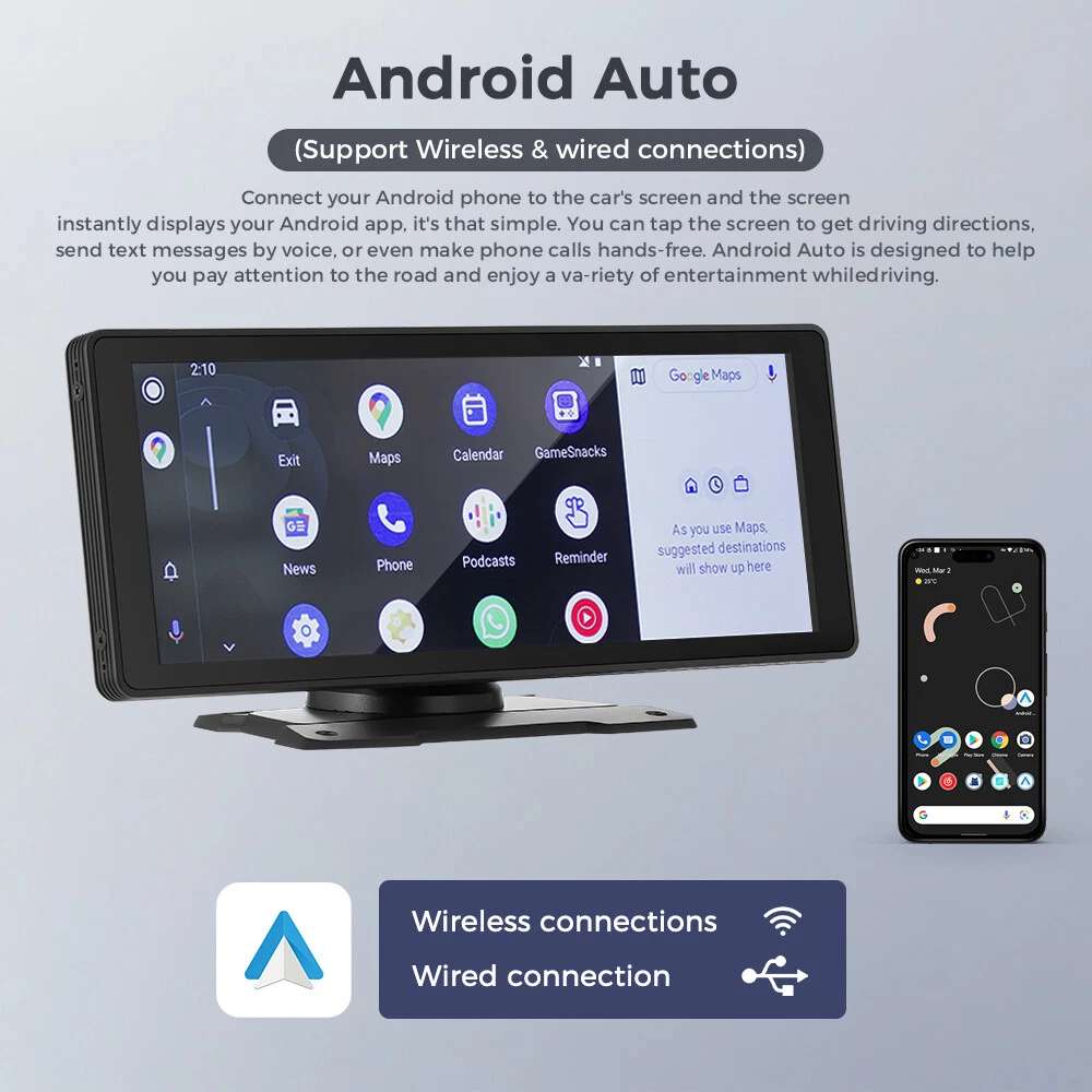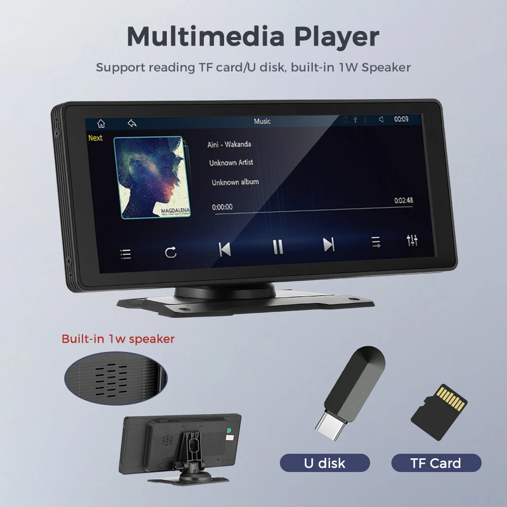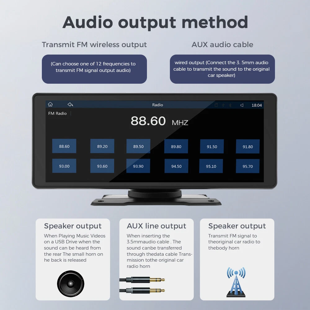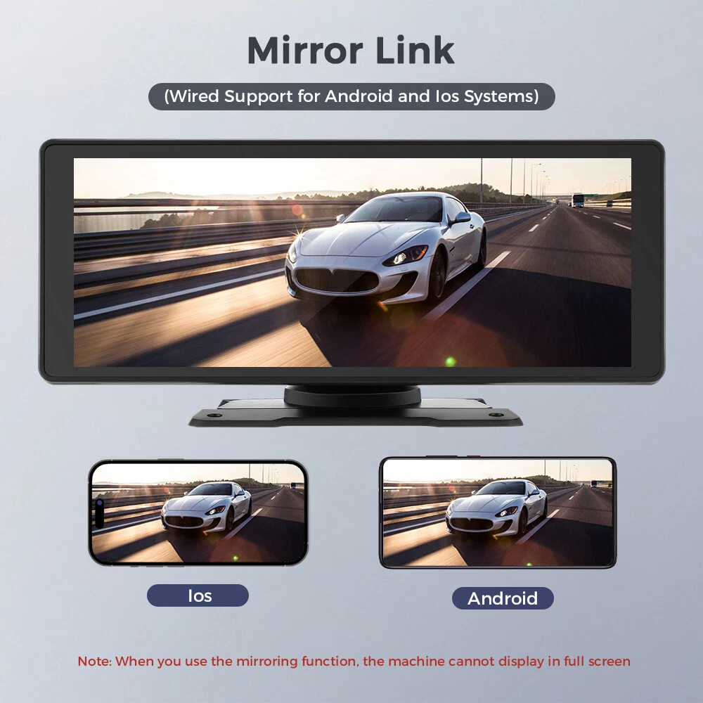 Portable Apple CarPlay & Android Auto 9.3" Touch Screen 2.5K Car Stereo Radio Feature: π FM transmitter function π Supports reading TF cards and USB flash drives (audio/video/picture) π Bluetooth function π Wired phone screen mirroring function; wired and wireless Android Auto/CarPlay π Rear view camera input function π AUX audio output function Specification: Model: B5303 Screen size: 9.3 inches HD (IPS) Screen resolution: 1600x600 OS: Allwinner melis Software solution: F133 Radio transmission frequency: 88.60/89.20/89.50/89.80/91.50/91.80/93.00/93.60/93.90/94.50/95.10/95.70MHz (you can choose one of the preset 12 frequencies to transmit FM signal output audio) Radio transmitter IC: AB5301B Amplifier IC: CS8571E Output power: Built-in 1W speaker Working voltage: DC 12V Working temperature: -10~60β Bluetooth version: 5.0 (default name: CarPlay) WiFi frequency: 2.4GHz/5GHz dual band GPS signal: not supported GPS navigation: not supported RAM: 1Gbit DRAM Shell size: 245x97mm Phone screen mirroring: supports (for iPhone/Android phones) Android Auto: supports (wired and wireless) CarPlay: supports (wired and wireless) Reverse camera input: supports (camera not included) Steering wheel control: not supported Video output: not supported USB interface: USB 2.0 TF card: supports Reset button: not supported Audio output: supports Audio format: MP3/AAC/APE/OGG/M4A/RA/WAV Video format: H263/H264/H265/DIVX HD/AVI/FLV/MKV/MPEG/MP4/WMV9/VC/ASF/TS/QT Picture format: JPEG/PNG/BMP/GIF/TIFF Language: English, Chinese, Spanish, Portuguese, Russian, German, French, Polish, Turkish, Arabic, Hebrew, Italian, Czech, Japanese, Korean, Thai Factory setting password: 113266 Note: 1. When you use the screen mirroring function, the machine cannot display the full screen. If this troubles you, please do not purchase this product. 2. This product has no memory function and cannot save the data set by the machine, such as time, sound effects. 3. The machine does not support night mode selection. 4. To use Android Auto, you need a phone running Android 6.0 or later and usable USB cable connection. Only available if the phone has full Google Framework services and can connect to Google sites. 5. This machine only has FM transmitting function, no FM radio function. What's included: 1 X Car Radio 1 X 720P Dash Cam 1 X Power Cable (Cigar Lighter Plug) 1 X Reverse Video Cable 1 X Stand 1 X Manual Payment Delivery details Return Feedback Contact us Payment * We accept PayPal only * Please verify your address during checkout. We are not responsible for any wrong or undeliverable addresses. * If there is anything wrong with the checkout or you need us to combine the shipping, please kindly feel free to contact us. Delivery details 1. Items are generally shipped out the next business day after your payment has been cleared (Sat. Sun. excluded.) 2. The shipment usually takes 3-5 business days (Saturday and Sunday excluded), if you need the item urgently, please contact us for detail before purchase. * We Ship to Payment address ONLY. So please confirm shipping Address prior to your payment. We are not responsible for any wrong or undeliverable addresses. Return Products with quality problem in 30 days can be returned and refund /replaced (Item in resalable condition) Products with quality problem in 1 year can be returned and repaired. (For more details, please read our warranty policy). Feedback Contact us if you have any question, please give us a chance to serve you, negative feedback couldnβt solve anything, communication Please! Contact us Welcome back to our store! Customers satisfaction is our top priority.