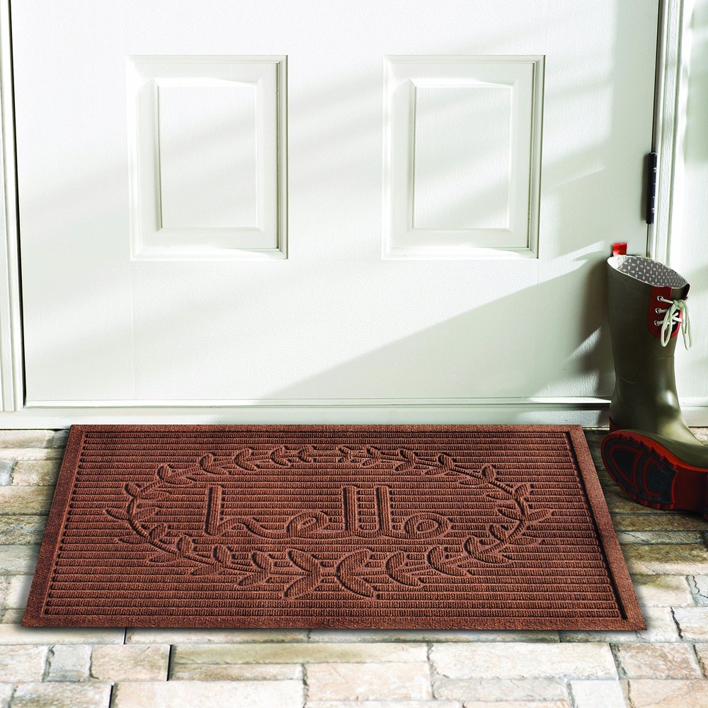 Poly hello mats are made of durable polypropylene that is tightly woven to prevent matting & wear marks. Versatile & functional, these indoor/outdoor mats Create flooring solutions effortlessly, giving distinction to any area while looking fashionable in today’s most popular colors. Non-slip, resilient rubber backing provides added strength & durability. Extra-large for more coverage, 3' x 5' x 0.50" Indoor / Outdoor All season, colorfast and weather tolerant Materials: Polypropylene, Rubber backing Durable fiber that scrapes shoes clean, won’t mat down with traffic