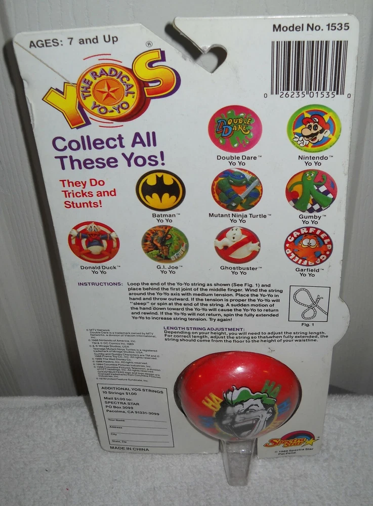 SOLD AS IS, Never removed from card, based on the Batman - The Joker, cardbacker has wear and tear, etc, Specta Star, FROM A NON SMOKING/PET FREE ENVIRONMENT. I AM NOT TAKING OFFERS OR TRADES, PRICES ARE AS IS, THERE IS NO FURTHER DISCOUNT, SO PLEASE DO NOT EMAIL ME, YOU WILL NOT GET A RESPONSE IF YOU DO, THANKS. NOTE TO ALL BUYERS: IF YOU ARE PICKY ABOUT YOUR BOXES/PACKAGES, PLEASE DO NOT BUY MY ITEMS. ALL OF MY ITEMS HAVE SOME TYPE OF WEAR, FROM CREASING, CRUSHING, CELLO (PLASTIC) DENTS/CREASING/CRACKS, ETC. PLEASE REMEMBER MOST OF THE ITEMS LISTED ARE VINTAGE TOYS THAT YOU AR BUYING. I TRY TO LIST ANY MAJOR FLAWS, BUT SOMETIMES I MAY MISS SOMETHING. EVERYONE HAS A DIFFERENT OPINION ON PACKAGE CONDITION, SO PLEASE ASK ANY QUESTIONS THAT YOU MAY HAVE. NOTE: THE NUMBER AT THE FRONT OF MY TITLE DESCRIPTION IS NOW MY INVENTORY NUMBER, ALL PREVIOUS LISTED ITEMS WILL NOT HAVE THE NUMBER. SERIOUS BIDDERS ONLY, IMMEDIATE PAYMENT IS REQUIRED, FEEDBACK WILL ONLY BE LEFT WHEN THE IT IS RECEIVED AND FEEDBACK IS LEFT. SO PLEASE LEAVE FEEDBACK WHEN YOU RECEIVE THE ITEM. NOTE: PLEASE CONTACT ME BEFORE LEAVING FEEDBACK IF THERE IS A PROBLEM WITH YOUR ORDER. IT IS NOT NECESSARY TO LEAVE NEUTRAL OR NEGATIVE FEEDBACK UNLESS YOU DO NOT WANT TO WORK OUT THE PROBLEM. ALL ITEMS SOLD AS IS, SO PLEASE MAKE SURE YOU ASK ANY QUESTIONS THAT YOU MAY HAVE BEFORE BUYING. INTERNATIONAL BUYER'S PLEASE REMEMBER THAT IT TAKES BETWEEN 6-10 BUSINESS DAYS FOR YOUR PACKAGE TO ARRIVE AT ITS DESTINATION. I HAVE NO CONTROL HOW LONG IT TAKES CUSTOMS TO PROCESS YOUR PACKAGE OR HOW LONG IT TAKES THE POST OFFICE TO DELIVER YOUR PACKAGE. ALL INTERNATIONAL PACKAGES NOW SHIP THROUGH THE EBAY INTERNATIONAL SHIPPING PROGRAM, PLEASE USE THE SHIPPING CALCULATOR TO DETERMINE THE SHIPPING COST, THE SHIPPING COST WILL SHOW BOTH THE SHIPPING COST AND THE IMPORT CHARGES THAT YOU WILL BE PAYING. NOTE: IF YOU WANT COMBINED SHIPPING MAKE SURE YOU ARE PUTTING THE ITEMS IN THE CART (MAKE SURE ALL ITEMS ARE IN THE CART BEFORE PAYING, THE CART IS AT THE TOP RIGHT OF THE PAGE), IF YOU PAY BEFORE HAND YOU WILL NOT GET COMBINED SHIPPING), IF YOU ARE HAVING A PROBLEM SEEING INTERNATIONAL SHIPPING COSTS MAKE SURE THAT YOU ARE ON ebay.com the United States website. INTERNATIONAL BUYER'S PLEASE NOTE: IMPORT DUTIES, TAXES AND CHARGES ARE NOT INCLUDED IN THE ITEM PRICE OR SHIPPING CHARGES. THESE CHARGES ARE THE BUYER'S RESPONSIBLITY. PLEASE CHECK WITH YOUR COUNTRY'S CUSTOMS OFFICE TO DETERMINE WHAT ADDITIONAL COST WILL BE PRIOR TO BIDDING/BUYING. THESE CHARGES ARE NORMALLY COLLECTED BY THE DELIVERING FREIGHT (SHIPPING) COMPANY OR WHEN YOU PICK THE ITEM UP - DO NOT CONFUSE THEM FOR ADDITIONAL SHIPPING CHARGES. WE DO NOT MARK MERCHANDISE VALUES BELOW VALUE OR MARK ITEMS AS GIFTS - US AND INTERNATIONAL GOVERNMENT REGULATIONS PROHIBIT SUCH BEHAVIOR.