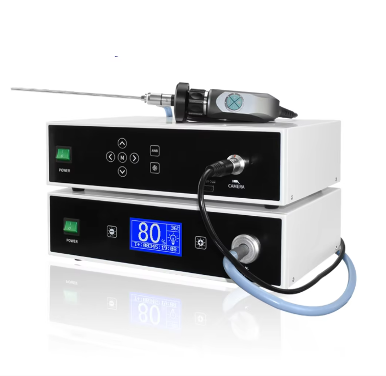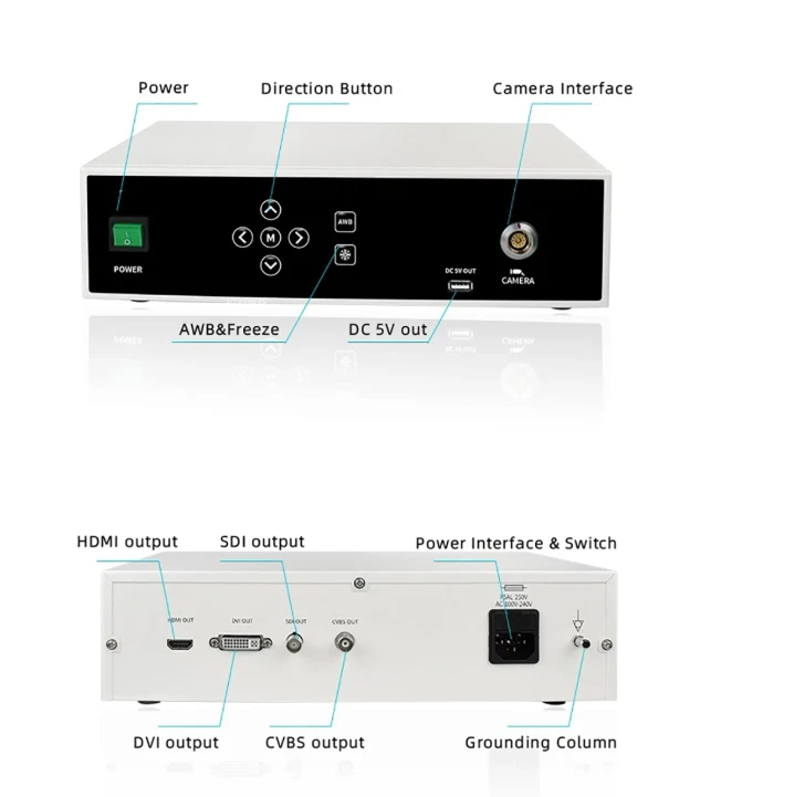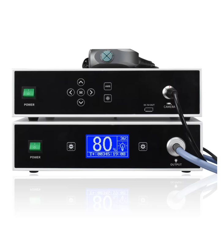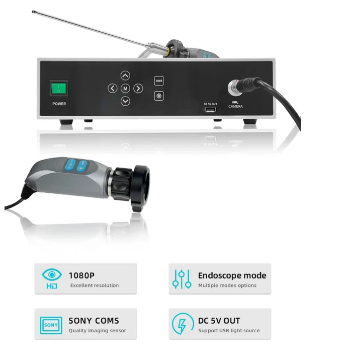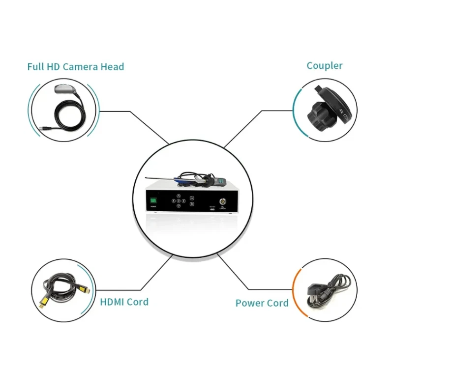 1080P Full HD Endoscope Camera and 100W Led Cold Light Source with 1.8m Fiber Optical Cable 1080P Full HD Endoscope Camera and 100W Led Cold Light Source with 1.8m Fiber Optical Cable ENDOSCOPE NOT INCLUDED WHICH IS FOR DISPLAY. Endoscope camera system is fully functional endoscopy solutions of specifically designed for industrial medical. 1080P resolution, DVI+HDMI+SDI+CVBS output, there are control menu and shortcut key function. Widely used in medical industry. Features: 1/2.8" SONY CMOS, 1080p resolution; 1-20 steps brightness adjustment, 1-20 steps sharpness, 1-10x D-zoom; FRESS, AWB, Multi- languages; It can be used for Arthroscopy, ENT, PTED(percutaneous transforaminal endoscopic discectomy), Cystoscope, Laparoscope, Hysteroscopy, Fiber nasopharyngoscope, fiber choledochoscopy, fber bronchoscope, fiber ureteroscope. Parameters Resolution SDI:1080P@30fps,1080P@60fps Output DVI+HDMI+SDI+CVBS Effective Pixels 1845(H) × 1097(V)Approx. 2.13M pixels SDI HD-SDI/EX-SDI switchable IMAGE SENSOR 1/2.8”CMOS BRIGHTNESS 1-20 steps SHARPNESS 1-20 steps BACKLIGHT OFF/BLC/HLC/WDR AWB Preset/Purshing FREZZ SUPPORT D-ZOOM Image zoom in /out Endoscope mode PTED/Fiber/Arthroscope/Cystoscope/Hysteroscope/Laparoscope/ENT Working temperature -10℃-+75 ℃ LANGUAGE CHINESE/ENGLISH....etc Color ADJ User Define: Yellow gain 1-250 Bule gain 1-250 Green gain 1-250 Red gain 1-250 Yellow Hue 1-250 Bule Hue 1-250 Green Hue 1-250 Red Hue 1-250 Power Supply DC12V ±10%<1.7W Power consumption 1 .2 W(≤100mA ) Working Current 140mA±10mA Processor Size 2000x1700x170mm Product Color Black and blue colors are available. 100W Light Source Light Type LED Light Source Rated Power 100W Illuminance 400W LUX Color Temperature 5800~6500K Bightness Adjustment 0~100 Light Emitting Area 7.7mm Color Rendering Index C RI 80/92 Light Source Maxmum Current 13A System Power 100-220V Operating Temperature -10 ℃ ~60 ℃ Lifetime 30000h Dimension L336 x W330 x H116mm