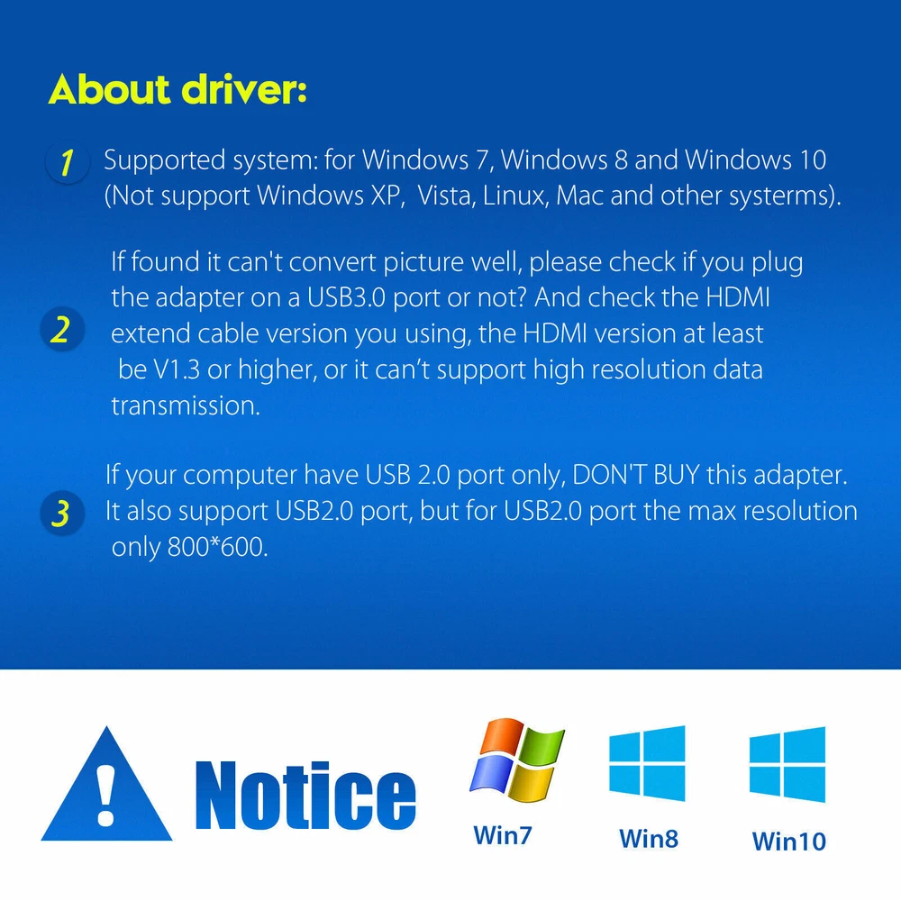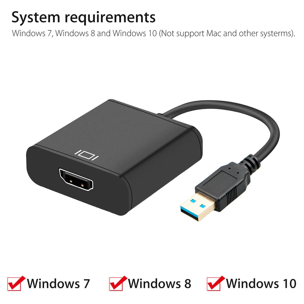 1080P HD USB 3.0 to HDMI Video Cable Adapter For PC Laptop HDTV TV Converter lot FAETURE: 100% brand new and high-quality. Support USB 3.0 interface for desktop or laptop computers. Ultra high definition display screen with a resolution of up to 1920 x 1080. Easy installation and easy operation. Gold plated connectors can resist corrosion, provide durability, and improve signal transmission. The USB 3.0-HDMI adapter allows you to connect more. Supported systems: Windows 7, Windows 8, and Windows 10 (Mac and other systems not supported) It can support or expand images, and can support high-definition audio and video signals with a maximum resolution of 1080P. PROGRAM INSTALLATION STEPS: 1. The product has a built-in installation driver that connects the USB interface to the host. 2. On the computer/my computer, a storage strip similar to a hard drive will pop up. Go inside and find the application program to install (the program strip can be seen in the quality inspection image) 3. After successful installation, the computer needs to be restarted before connecting to the screen for use NOTE: 1. When starting the installation, please close the antivirus related software. During the installation process, multiple pop-up windows will pop up and click Next until the installation is successful 2. Without a CD or HDMI to HDMI cable, it needs to be self configured 3. If the resolution is incorrect, please set the resolution to 1920 * 1080P, expand/copy (expansion means two different interfaces are displayed; copy means two screens are on the same screen) ITEM INCLUDED: 1/2/3/4/5/10/20x USB 3.0 to HDMI Video Cable Adapter Return Feedback Contact us Shipping Warranty Return ✨️ For any return-regardless of the reason, kindly select “ Ordered by Mistake ” as the return reason. This helps us provide you with a 🆓 free return label promptly☺️ 📨 reach out to us directly rather than Left a negative feedback or initiating a return right away. Before leaving , could we kindly ask you to reach out to us first? Feedback Before leaving , could we kindly ask you to reach out to us first? We promise to do our very best to find a solution that works for you and ensures your satisfaction. On the other hand, if you’re happy with our product and service, we’d be so grateful if you could share your ⭐⭐ ⭐ ⭐ ⭐ Your kind words inspire us to keep improving and delivering the best experience possible. Thank you for your support—it means the world to us! 😊 Contact us ✨️ Direct Support First -If you encounter any issues after receiving your item, please 📨 reach out to us directly rather than Left a negative feedback or initiating a return right away. We’re here to help and ensure you have a great shopping experience—we’re on your side!😇 ✨️ About Shipping Delays: If your tracking information hasn’t updated for over 5 days or shows no shipment, please reach out to us first . We’ll happily resend your item or resolve the issue—no need to escalate via eBay. We’re here to help!😇 ✨️ We’ll happily resend your item or resolve the issue—no need to escalate via eBay. We’re here to help!😇 Shipping FREE SAME BUSINESS DAY MONDAY- FRIDAY SHIPPING FROM USA. All orders and payments received before 4PM EST (1PM PST) will be shipped the same business day. All other orders within 1 business day. No shipping on Weekends or US Public Holidays. No responsibility for any custom duty Shipping information will be updated when available. Warranty ✨️We proudly offer a 60-day warranty on all our products. ✨️Every item is brand new and ar rives in perfect working condition. 📨 reach out to us directly rather than Left a negative feedback or initiating a return right away.