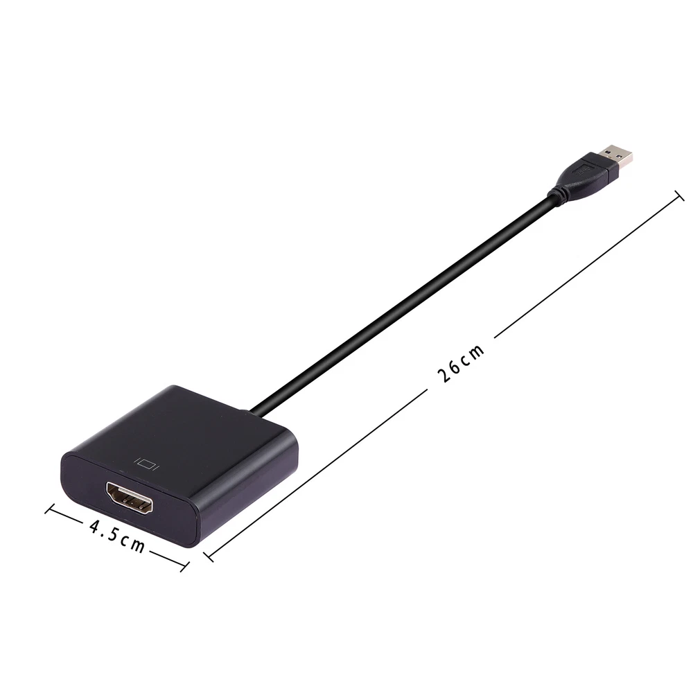 HD 1080P USB 3.0 to HDMI Video Cable Adapter For PC Laptop HDTV LCD TV Converter Features: Supports USB3.0 interface of desktop or laptop. Ultra-high-definition display, resolution up to 1920 * 1080. Simple installation and easy to operate. Gold-plated connectors resist corrosion, provide durability and improve the signal transmission. The USB 3.0 - HDMI adapter enables you to connect additional. Supported system: Windows 7, Windows 8 and Windows 10 (Not support Mac and other systerms) Can support or extend the image, maximum support 1080P resolution HD audio and video signals. Resolution: The highest resolution is up to 1920 x 1080, including 1600 x 1200,1.65 Gbps / 165 MHZ / 24 bits bandwidth; HDMI output port support 1.65 Gbps / 165 MHZ / 24 bits of bandwidth. Note: 1. Supported system: Windows 7, Windows 8 and Windows 10 , For Windows Operating systems only, Does Not Support any other operating system 2. If found it can't convert picture well, please check if you plug the adapter on a USB3.0 port or not? And check the HDMI extend cable version you using, the HDMI version at least be V1.3 or higher, or it can’t support high resolution data transmission. 3. If your computer have USB 2.0 port only, USB2.0 port the max resolution only 800*600. 4. In order to ensure the imaging quality of 1080P, both access devices and output devices need to support 1080P. Type USB 3.0 To HDMI Audio Video Adaptor Material ABS Supports video output HDMI signal. Size 1.85x1.46x0.51in(47x37x13mm) Cable length approx. 20cm Net weight 1.4oz(41g) Package Included: 1 x USB 3.0 To HDMI Converter Contact us: Payment: Shipping: Warranty Return Contact us: We have always been trying to provide the best service and reliable products for every customer, however, accident may happen sometimes, please contact us to resolve any issue before leaving a negative feedback. Payment: 1. All payments must be prepaid before shipping. 2. We only accept payment via PayPal. Please kindly check if you can do the payment via PayPal before placing an order. Shipping: 1. Item will be shipped same business day if paid 4 pm EST 1 pm PDT (except weekends and holidays) and shipped from US. 2. Orders from the United States will all be shipped out via starnding shipping or economy shipping. The shipment usually takes 3-7 business days(Saturday and Sunday excluded), if you need the item urgently, please contact us for detail before purchase. Orders from overseas will be shipped via DHL Express, 3-5 business days. 3. Local pick up is not available. Warranty . The warranty shall not apply to the following circumstances: a) Damage caused by undue wear&tear, misuse, improper installation or operation, neglect, accidents. b) Damage caused by natural disasters, flood, fire, lightning or pollution. c) If item was opened, any parts removed or repaired by any unauthorized person. Return (1).We stand behind our items and offer 60 days warranty. All items are in brand new condition unless specified otherwise elsewhere in the description. (2).All returns - defective or otherwise - have to be preauthorized. Please contact us to get an authorization and returning address before sending the item back.If an item is returned because of an undeliverable shipping address, buyer agrees to pay the cost for re-shipment. (3).Please note that If the return/replacement is not a result of our mistake (not defective or wrong item), the buyer is responsible for return shipping, as well as a 20 percent restocking fee. (4).Replacement or refund will be made upon receipt of the returned item. If you do not want to wait for the replacement, you can just reorder one and then send the first one back for a refund.