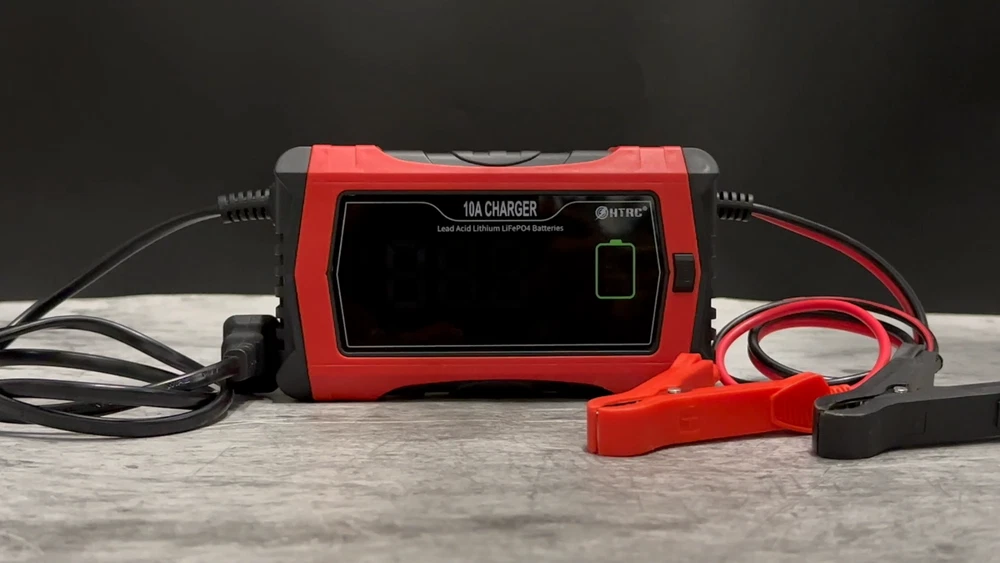 UPC: Does not apply Features: Air Compressor, Automatic, LED Light, Plug in, Portable, Reverse Brand: HTRC Manufacturer Warranty: 6 Months MPN: does not apply Battery Type: AGM, Gel, Wet, Lead Acid, Calcium Batteries gtin13: Does not apply Suitable For: Cars, Trucks, SUVs, Motorcycles, Lawn mowers, Boats, Marine, etc Amp Hours: 10Amp Country/Region of Manufacture: China Voltage: 24V, 12V Chemical Composition: Lead Acid Type: Car Charger Application: High Drain Devices
