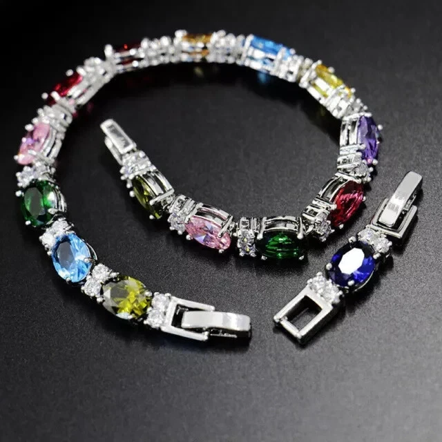 Main Stone Color: Multicolor Metal Purity: 925 Material: Stone, Metal Wholesale: Yes Style: Tennis Country/Region of Manufacture: India Occasion: Anniversary, Birthday, Christening, Christmas, Engagement, Graduation, Mother's Day, Valentine's Day, Wedding Cut Grade: Excellent Item Length: As per picture Closure: Spring Ring Metal: Sterling Silver Setting Style: Prong Seller Warranty: Yes Theme: Beauty Main Stone Treatment: Not Enhanced Chain Type: Cable Vintage: No Customized: Yes Sizable: Yes Main Stone Creation: Simulated Number of Gemstones: As Per Picture Antique: No Personalize: Yes Base Metal: Sterling Silver Charm Type: Snap Signed: No Era: Undated Main Stone Depth: As per picture Handmade: Yes Color: White Features: Engraved Type: Bracelet Main Stone Width: As per picture Shape: Round Gemstone Clarity Grade: NA Brand: karunas-76 Main Stone Length: As per picture Secondary Stone: Diamond Main Stone Shape: Oval Country of Origin: India Main Stone: Sapphire