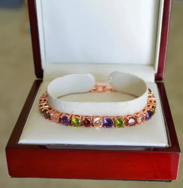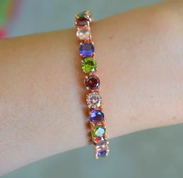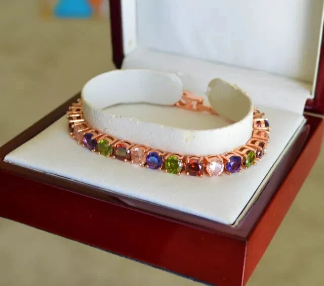 Color: Pink Country/Region of Manufacture: India Personalize: Yes Main Stone Length: As per picture Main Stone Creation: Simulated Charm Type: Snap Era: Undated Vintage: No Style: Tennis Shape: Round Features: Engraved Customized: Yes Chain Type: Cable Brand: karunas-76 Main Stone Depth: As per picture Item Length: As per picture Seller Warranty: Yes Main Stone Width: As per picture Handmade: Yes Type: Bracelet Material: Stone, Metal Theme: Beauty Secondary Stone: Diamond Signed: No Occasion: Anniversary, Birthday, Christening, Christmas, Engagement, Graduation, Mother's Day, Valentine's Day, Wedding Cut Grade: Excellent Setting Style: Prong Closure: Snap Main Stone Shape: Round Metal: Sterling Silver Metal Purity: 925 Gemstone Clarity Grade: NA Antique: No Main Stone Color: Multicolor Sizable: Yes Country of Origin: India Main Stone: Sapphire Wholesale: Yes Base Metal: Sterling Silver Main Stone Treatment: Not Enhanced Number of Gemstones: As Per Picture
