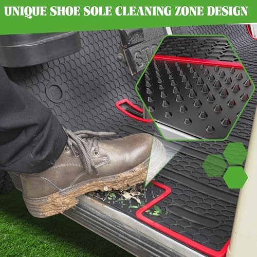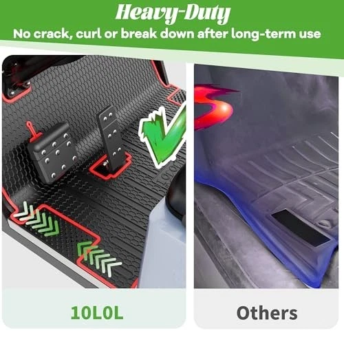 10L0L Golf Cart Mat, Full Coverage Floor Liner Mat Custom Fit for EZGO TXT (1996+), Express S4 (2012-2020), EX1 (2020), Valor, Cushman Workhorse, Easy to Clean Color: Red + Black Material Rubber Color Red + Black Brand 10L0L Form Factor Foldable Manufacturer 10L0L About this item ๐–๐ข๐ญ๐ก ๐’๐ก๐จ๐ž ๐’๐จ๐ฅ๐ž ๐‚๐ฅ๐ž๐š๐ง ๐€๐ซ๐ž๐š: Unique design of sole cleaning area helps you to remove the rubbish on the soles of your shoes and keep the golf cart clean, not to mention bringing the rubbish home (10L0L self-developed) ๐ˆ๐ง๐ง๐จ๐ฏ๐š๐ญ๐ข๐ฏ๐ž ๐‡๐จ๐ง๐ž๐ฒ๐œ๐จ๐ฆ๐› ๐€๐ง๐ญ๐ข-๐’๐ฅ๐ข๐ฉ ๐ƒ๐ž๐ฌ๐ข๐ ๐ง: Our golf cart floor mats feature a unique honeycomb pattern that provides excellent grip and slip resistance to keep you safe even in extreme weather conditions. ๐‡๐ข๐ ๐ก-๐๐ฎ๐š๐ฅ๐ข๐ญ๐ฒ ๐‹๐š๐ญ๐ž๐ฑ ๐Œ๐š๐ญ๐ž๐ซ๐ข๐š๐ฅ: Made with high-quality latex material, this floor mat is built to last. Its heavy-duty construction ensures stability and prevents deformation even under heavy use. ๐„๐ง๐ก๐š๐ง๐œ๐ž๐ ๐ˆ๐ง๐ญ๐ž๐ซ๐ข๐จ๐ซ ๐€๐ž๐ฌ๐ญ๐ก๐ž๐ญ๐ข๐œ๐ฌ: Elevate the look of your golf cart's interior with this sleek and stylish floor mat.Its tailored design adds a touch of sophistication and enhances the overall appearance of your vehicle's cabin. ๐๐ž๐ซ๐Ÿ๐ž๐œ๐ญ ๐…๐ข๐ญ ๐š๐ง๐ ๐„๐š๐ฌ๐ฒ ๐ˆ๐ง๐ฌ๐ญ๐š๐ฅ๐ฅ๐š๐ญ๐ข๐จ๐ง: The golf cart mats are precisely tailored to fit your vehicle, and they can be easily installed and removed for cleaning or replacement.Specifically designed for EZGO TXT (1996+), Express S4 (2012-2020), EX1 (2020), Valor, Cushman Workhorse, our floor liner mat perfectly fits the contours of your cart's floor like OEM flooring. ๐‹๐จ๐ง๐ -๐‹๐š๐ฌ๐ญ๐ข๐ง๐  ๐ˆ๐ง๐ฏ๐ž๐ฌ๐ญ๐ฆ๐ž๐ง๐ญ: By protecting your cart's floors from dirt, debris, and wear, our full coverage floor mat helps maintain its resale value and preserves the original condition of your golf cart. ๐’๐จ๐Ÿ๐ญ, ๐–๐š๐ญ๐ž๐ซ๐ฉ๐ซ๐จ๐จ๐Ÿ, ๐š๐ง๐ ๐„๐š๐ฌ๐ฒ ๐ญ๐จ ๐‚๐ฅ๐ž๐š๐ง: The golf cart mat's soft texture provides a comfortable feel while effectively trapping dirt, mud, and spills. Its waterproof properties make cleaning a breezeโ€”simply wipe or rinse it off for a fresh and clean look. (Item does not ship to Miami&Doral, FL), have any problem please contact us !
