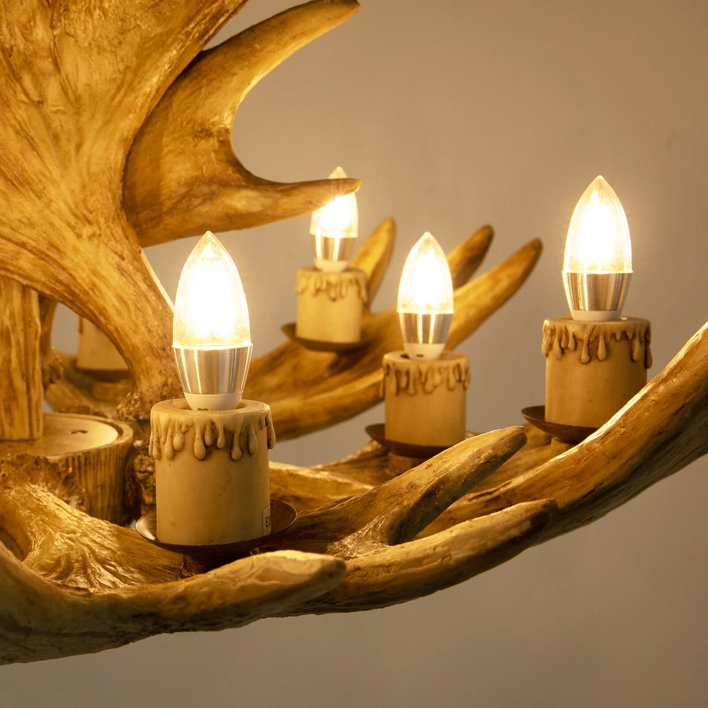 10-Light Deer Horn Pendant Resin Antler Chandelier Hanging Ceiling Light Fixture Welcome to our store~ 10-Light Antler Chandelier, Deer Antler Ceiling Lighting, Retro Deer Horn Chandelier Lighting Description Light is an integral part of home decor, providing essential lighting and a beautiful visual effect to the room. In the living room, a generous chandelier can bring a sense of elegance and nobility to the entire space. On any occasion, our antler chandelier can add goodness to your life. Key Features Build to Last: High-quality GFRP and hardware with exquisite hand tint and spraying paint technology make this product sturdy, durable, three-dimensional, and aesthetically pleasing and can withstand the test of time. Unique Appearance: The combination of deer antlers and retro candle lamp holders showcases a classic retro rural style, taking you to the pristine forest in just one second and refreshing your home. It can fit vintage, rustic, and modern style homes. Open Design : It does not have a sealed lampshade, which can enhance the heat dissipation ability and make it easier for you to replace the bulb. Adjustable Height: The 3.28-foot suspension chain supports length adjustment, allowing you to install it in rooms with different ceiling heights. Bright Lighting: It is equipped with 10 lamp holders, each of which can support bulbs with a maximum power of 60W, providing brighter lighting for your room. Easy to Clean: The open design and smooth lines make cleaning easier. You only need to gently wipe the dust off with a cloth. Ideal Gift: This product is of excellent quality and durable. The appearance of deer antlers symbolizes happiness and contentment, making it an ideal gift for friends and relatives to move to a new house, get married, or have a birthday. Customer Service: We aim to provide quality products and services. If you have any problems, please feel free to contact us. We will reply and solve the problem for you as soon as possible. Details Sturdy Base: The enlarged round base increases the stress area, which can better maintain the stability of the product. Standard E12 Lampholders : It allows you to freely choose the type of bulbs installed, such as incandescent and LED bulbs (not included), to meet different usage needs in different scenarios. Application It is suitable for a living room, hall, cafe, club, bar, restaurant, and library with an area of 107.64-215.28ft², and a height of 9.19ft . Specification Material: GFRP, Hardware Process: Hand Tint, Paint Spraying Color: Light Brown Shape: Antlers Style: Retro Assembly Required: Yes Mount Type: Ceiling Mount Indoor/Outdoor Usage: Indoor Power Source: Corded Electric Light Source: 10*E12 Bulbs (Not Included) Efficiency: E Voltage: 110V Single Bulb Max. Power: 60W Applicable Room Area: 10-20m²/107.64-215.28ft² Applicable Room Height: 2.8m/9.19ft Chain Length: 1m/3.28ft Lamp Body Size (D*H): 95*53cm/37.4*20.87in Package Size: 80*45*42cm/31.5*17.72*16.54in Gross Weight: 16kg/35.3lbs Net Weight: 12kg/26.46lbs Package Included 1* Antler Chandelier 1* Installation Diagram All Accessories for Installation Notes Please check the product size before ordering to make sure it fits your room. To ensure your safety, we recommend that two people install this ceiling lamp together. The electric insulation gloves(not included) must be worn when installing. Please install it by someone with an electrical license if necessary. When installing, it is important to pay attention to the locking of each screw accessory connection to prevent safety issues caused by the detachment of the lamp body. When using dimmable bulbs and dimmable switches, this product can be dimmed (Note: bulbs and switches are not included). Please be sure to remember to disconnect the power when installing the chandelier or cleaning it. Payment Delivery details Terms of sales About us Contact us Payment We accept ebay payment 。 Fees such as import duties, taxes are not included in the item price or shipping costs. These charges are the buyer's responsibility. Delivery details Shipping: 2-9 working days to: USA Terms of sales We maintain high standards of excellence and strive for hundred percent customer satisfaction. Feedback is very important to us. We hope that you contact us immediately before you give neutral or negative feedback, so that we can address your concerns. It is impossible to address issues if we do not know about them! About us Your satis faction is our ultimate goal. We work hard to earn your trust and future business. Our certified technicians have tested each item before shipping. The unit comes with 1 year limited warranty on all manufacturing defects. a) If you receive a defective item, you may return it or ask for a discount. Please contact us within 14 days after you receive the package. b) What you returned must be intact and in its original packaging as re? u. Customer is responsible for shipping costs of the returned item. c) We will cover the cost of shipping back t with the shipping rate indicated in the registration page. We will send you a new unit or refund the full payment you paid. Thank you. Contact us Business Hour Business Hour: Monday To Friday: 8:30 AM to 5:00 PM (Beijing China time) Due to time zones, our reply to your questions may not be immediately. But within above working time, we will reply your email within 24 hours. If it's non-workdays, please kindly be patient and wait till Monday. Please contact us with ebay message. Please feel free to contact us if you have any questions. Monday To Friday: 8:30 AM to 5:00 PM (Beijing China time) Due to time zones, our reply to your questions may not be immediately. But within above working time, we will reply your email within 24 hours. If it's non-workdays, please kindly be patient and wait till Monday. Please contact us with ebay message. Please feel free to contact us if you have any questions. Warranty Three years Type Chandelier Brand Unbranded Style Vintage/Retro Senso