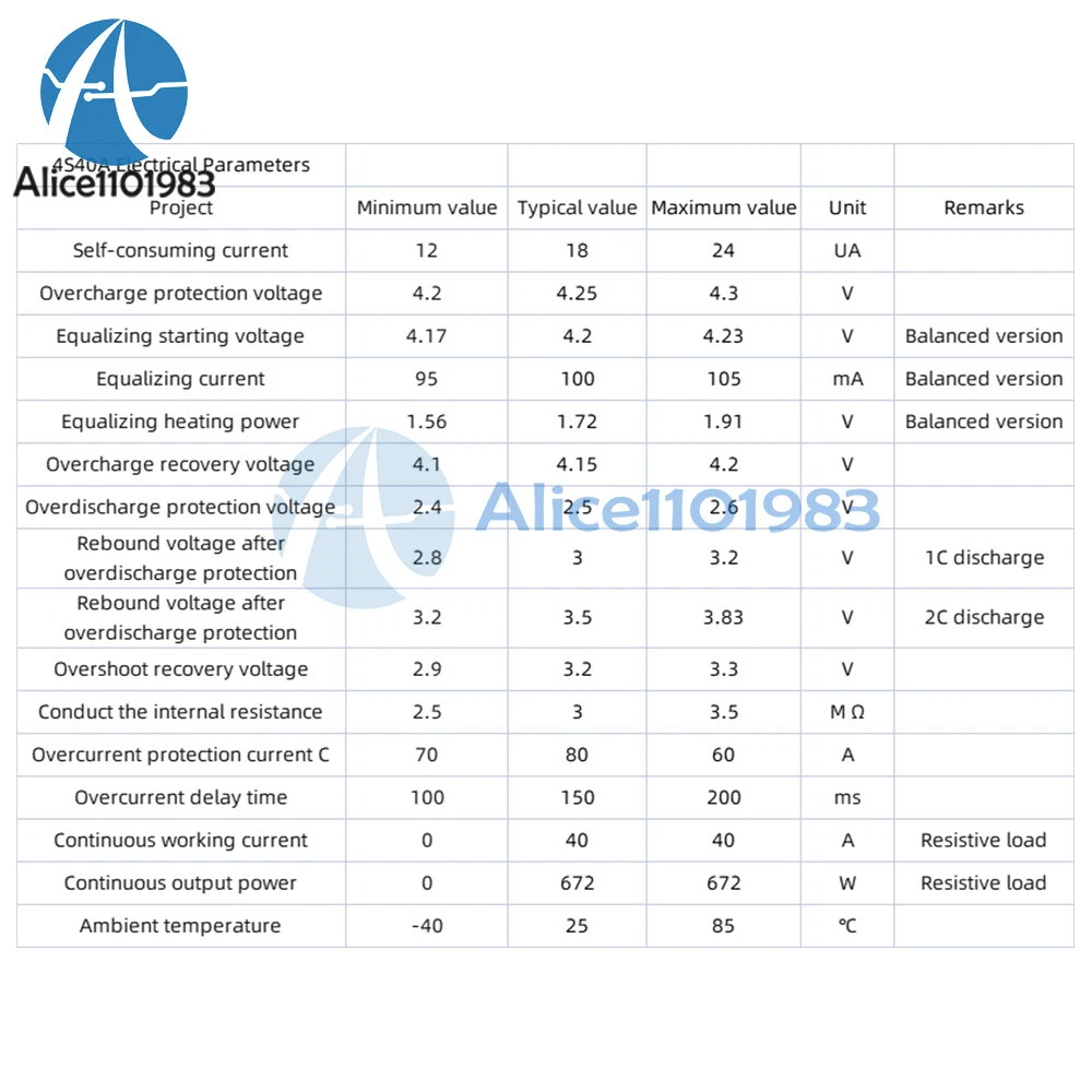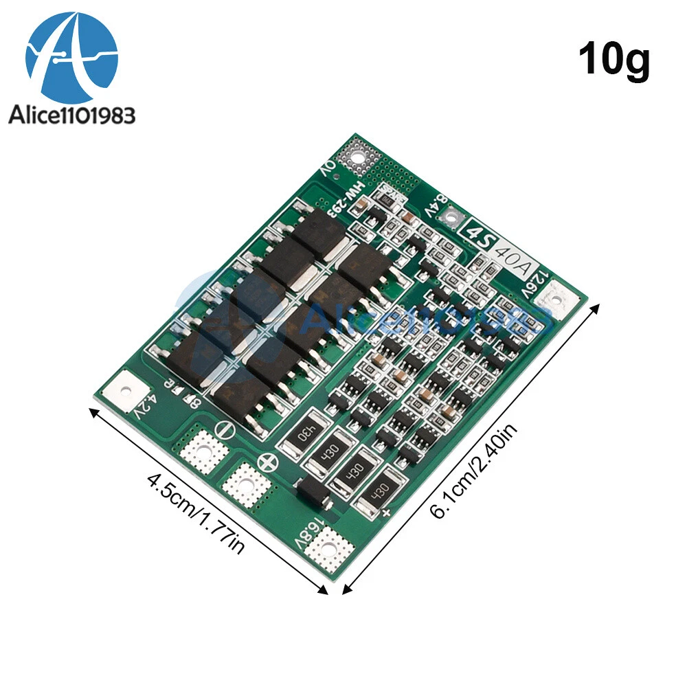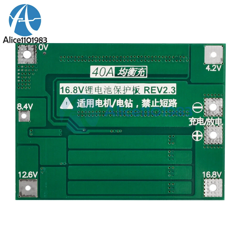 Visit store Items for sale About us Product Details Features: 1.4 series 16.8V 40A lithium battery protection board with equalization function 2. Suitable for nominal voltage 3.7V, fully charged 4.2v lithium batteries (including 18650, 26650, polymer lithium batteries), can be used with the following 170w electric drill 3. Simple wiring, easy to use 4. Can improve the life of the extended battery 5. This product is suitable for electric drills, sprayers, LED lights, low power reverse, transformer charging and discharging batteries and other products Specification: Product name: 4 series 16.8V 40A lithium battery protection board Function:With equalization Charging voltage:DC 16.8-17.8V Continuous discharge current: maximum 40A (if the thermal environment is not good, please reduce the load current to use) Continuous charging current: 20A max Product size:45*60*4mm Application options: for nominal voltage 3.7V, fully charged 4.2v lithium batteries (including 18650, 26650 lithium batteries), can be used with the following 170w electric drill For example: the battery is 4 strings, the connected battery needs to meet the 40A discharge current, can be achieved by paralleling the battery, or buy a large discharge current. For example, the battery 2000mAH, discharge multiplier 10C, then you only need 4 series of 2 and, the maximum current can reach the discharge current of 40A, stable discharge requires 4 series of 4 and only then, and need to pay attention to heat dissipation, discharge battery power will drop quickly. 4 series of batteries, the actual full charge, voltage 16.8V, charging voltage DC17V ~ 18V, charging current depends on the connected battery, the maximum does not exceed 20A. Note: 1: Successful start of the electric drill requires four 10C-20 power batteries, or eight 5C-10C power batteries (recommended power battery models: VTC4, VTC4A, VTCSA, VTC6), 0V and 12.6V connecting wire, use more than 3 square millimeters of copper wire (can not use nickel sheet). 2: strictly according to the diagram wiring 0V, 4.2V, 8.4V, 12.6V, 16.8V, welding line can not touch any components on the board, do not intentionally short circuit. 3: the first welding battery or is charging, as long as the individual battery over 4.2V, "430" resistor will heat up to discharge (discharge to about 4.19V to stop heating) If the "430" resistor is seriously hot, please check if it is connected to the wrong wire. Package List: 1x Battery protection board Payment Method Shipping Policy Returns & Refund Policy Feedback Payment Method EBAY Managed Payment. But we only Accept your Ebay Address , please Make sure it's 100% right. Payment must be received in 5 business days of auction closing. Please leave note for your special request (e.g. Colors or Size) in PayPal when you pay the order. Any special request cannot be accepted after 24 hours of payment, because most of orders will be processed instantly and same day dispatched. Shipping Policy 1. We only ship to the confirmed address provided by eBay. please make sure your ebay address is 100% matches the address you would like us to ship to. If not, please let us know before we sent you the package, or we will not be responsible for any loss. hope you could understand. 2. Orders will be processed instantly and dispatched within 1-3 business days except hoilday, so we do NOT accept any email/message note after you place orders. 3. All package need to wait 30 days,Please take care it.Less than 30 days,we can't take a refund. Returns & Refund Policy All package need to wait 30 days (US only n eed 7-10 days) , Please take care it.Less than 30 days,we can't take a refund . If the item is defect when you receive it or you are not satisfied with it, please return it within 14 days for a replacement or money back. But the items must be back in factory condition. Please keep in touch with us and double check the return address before you return it. If is item is defective in 12 months, you can return it to us. We will send you a new replacement after receiving the defective item. Feedback We maintain high standards of excellence and strive for 100% customer satisfaction! Feedback is very important to us. We request that you keep in touch with us immediately BEFORE you give us neutral or negative feedback, so that we can satisfactorily address your concerns.