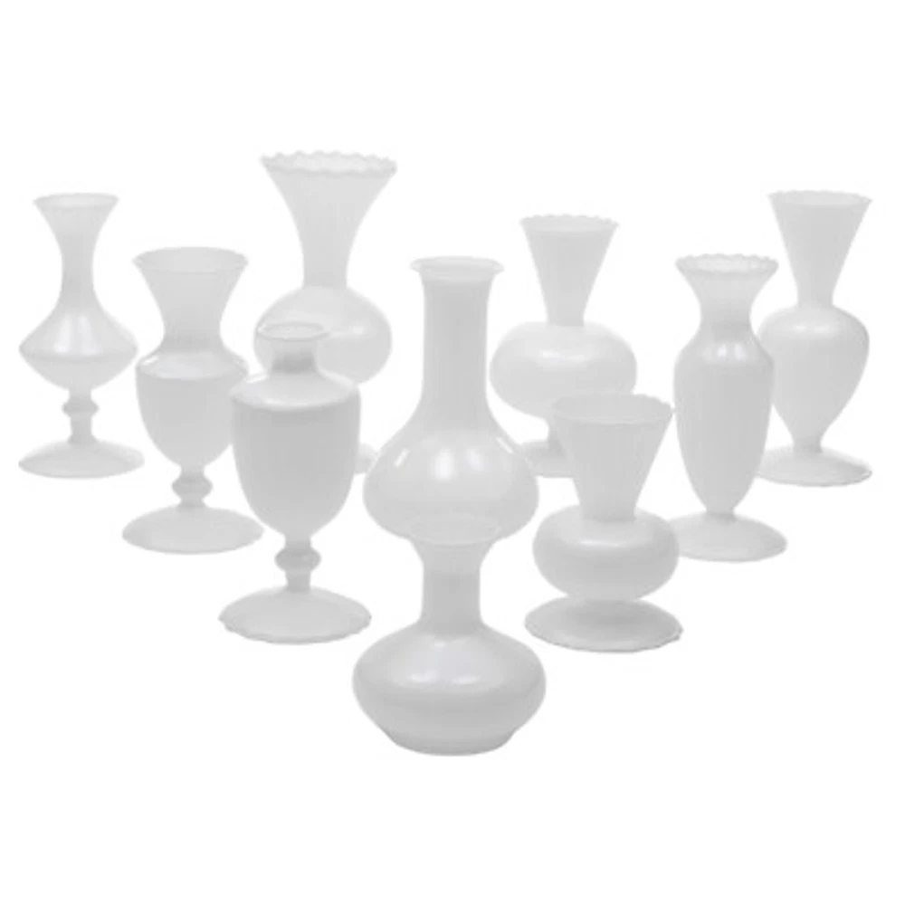 10PCS Glass Vases for Wedding and home Decorations, Small Glass Vases Sets Description Weddings, graduations, birthdays, etc. are all memorable events in our lives that will become our precious treasures. With this glass vases set, your wedding and other important events will be even more wonderful. Our vases are made of premium glass, so they can be used for a long time and accompany you through various stages. 10 different styles in sufficient quantity can meet your home decorating needs, adding a touch of elegance and beauty to your home. Key Features Build to Last: High-quality glass makes the product durable and solid, so it remains beautiful and practical for a longer time. Strong Stability: The solid material, reasonable structure, and stable base provide this item with a strong bearing capacity, so you can use it safely without worrying about the fracture. Diverse Styles: The 10 different shapes, sizes, and styles enrich your visual experience, create a personalized background, add brightness to a dull event, and become good home decoration. Wherever it is placed, it is a beautiful scenery. Nice Decorations: You can place this product at the top of the booth as an excellent decoration for special days, creating an elegant atmosphere, especially for weddings. You can also put it on the table to relax your mood. Even if it hasn’t artificial flowers on it, it is still a very elegant decoration! High Cost-effective: 10 Pcs allow you to use different items, such as flowers, artificial flowers, and vines, on other occasions to decorate them freely and repeatedly, promoting the unity of style and fully meeting your needs. Labor-saving Cleaning: The smooth surface and simple structure make it convenient for you to clean with a wet towel and water. Easy to Carry and Store: Its small size and lightweight(4.41 lbs) make it easy for you to store and carry them anywhere. Ideal Gift: With an attractive appearance, this product is used as a gift for family, friends, and lovers to make their home more atmospheric and festivals more meaningful. Protective Package: To prevent the product from being damaged and bumped during transportation, we packed it with foam and cartons to protect your products to the maximum extent possible. Details Round Corners: Compared with traditional square corners, an arc design can better care for your skin. Flared Mouth: The flared mouth of the vase is not only aesthetically pleasing but also makes it easier for you to insert flowers, artificial flowers, and other decorations. Application Match with artificial flowers and other items, this product can be used in homes, restaurants, terraces, coffee shops, hotels, balconies, bars, clubs, Spa, candlelight dinners, holiday dinners, weddings, the background decoration of the studio, as well as any other special activities you would like to decorate. Specification Color: White Style: Modern Material: Glass Assembly Required: No Mount Type: Free Standing Number of Items: 10 Product Size(D*H): 11*9.5cm/4.33*3.74in, 9*17cm/3.54*6.69in, 9*16.5cm/3.54*6.5in, 9*17.5cm/3.54*6.89in, 9*17.5cm/3.54*6.89in, 9*7cm/3.54*2.76in, 12*18.5cm/4.72*7.28in, 9*19cm/3.54*7.48in, 9.3*20cm/3.66*7.87in, 10*22cm/3.94*8.66in Net Weight: 2kg/4.41lbs Gross Weight: 2.3kg/5.07lbs Package Size: 55*45*15.5cm/21.65*17.72*6.1in Package Included 10* Glass Vases Notes Please note that flowers and other decorations are not included. Please use a soft cloth to clean and dry it. Please do not use harsh chemicals or abrasives. It is better to add some rocks or floral foam to the inside to make the item more stable. For better results, we recommend using a small bouquet. Please pay attention to the size details, it may be smaller than you expect. Please check the size of our vases before purchasing a bouquet to prevent buying a larger or smaller bouquet. Please allow the slight color difference caused by the shooting light and 1-3 cm error due to manual measurement, and make sure you do not mind before ordering. Payment Delivery details Terms of sales About us Contact us Payment We accept ebay payment 。 Fees such as import duties, taxes are not included in the item price or shipping costs. These charges are the buyer's responsibility. Delivery details Shipping: 2-9 working days to: USA Terms of sales We maintain high standards of excellence and strive for hundred percent customer satisfaction. Feedback is very important to us. We hope that you contact us immediately before you give neutral or negative feedback, so that we can address your concerns. It is impossible to address issues if we do not know about them! About us Your satis faction is our ultimate goal. We work hard to earn your trust and future business. Our certified technicians have tested each item before shipping. The unit comes with 1 year limited warranty on all manufacturing defects. a) If you receive a defective item, you may return it or ask for a discount. Please contact us within 14 days after you receive the package. b) What you returned must be intact and in its original packaging as re? u. Customer is responsible for shipping costs of the returned item. c) We will cover the cost of shipping back t with the shipping rate indicated in the registration page. We will send you a new unit or refund the full payment you paid. Thank you. Contact us Business Hour Business Hour: Monday To Friday: 8:30 AM to 5:00 PM (Beijing China time) Due to time zones, our reply to your questions may not be immediately. But within above working time, we will reply your email within 24 hours. If it's non-workdays, please kindly be patient and wait till Monday. Please contact us with ebay message. Please feel free to contact us if you have any questions. Monday To Friday: 8:30 AM to 5:00 PM (Beijing China time) Due to time zones, our reply to your questions may not be immediately. But within above working time, we will reply your email within 24 hours. If it's non-workdays, please kindly be patient and wait till 