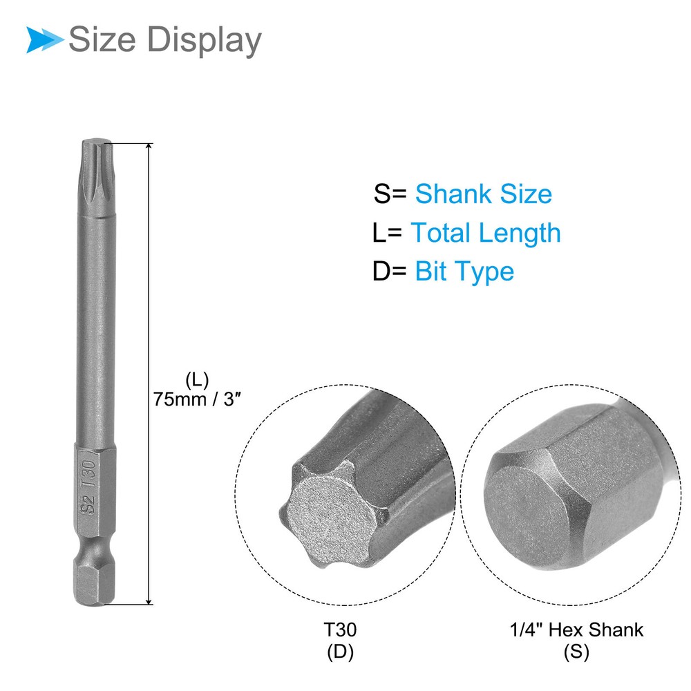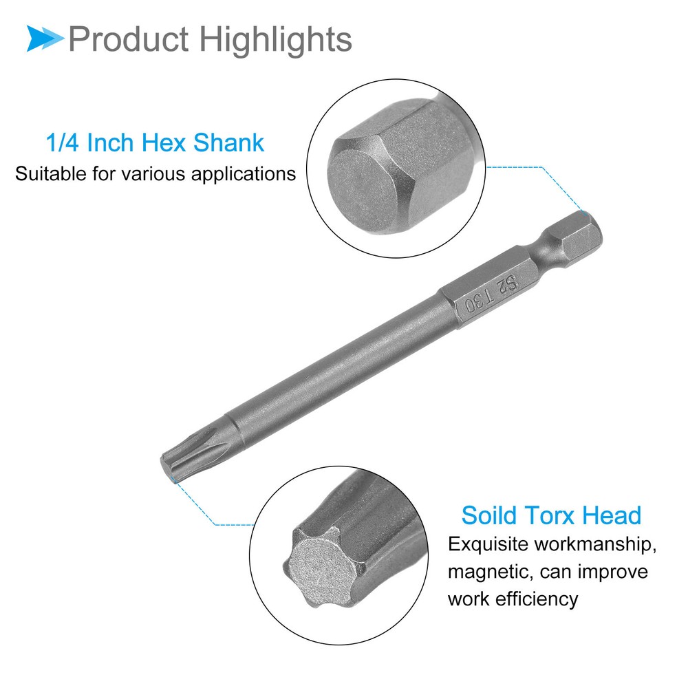 $ 6.395pcs T30 Torx Screwdriver Bits 4" Long 1/4" Hex Magnetic Drill Bit