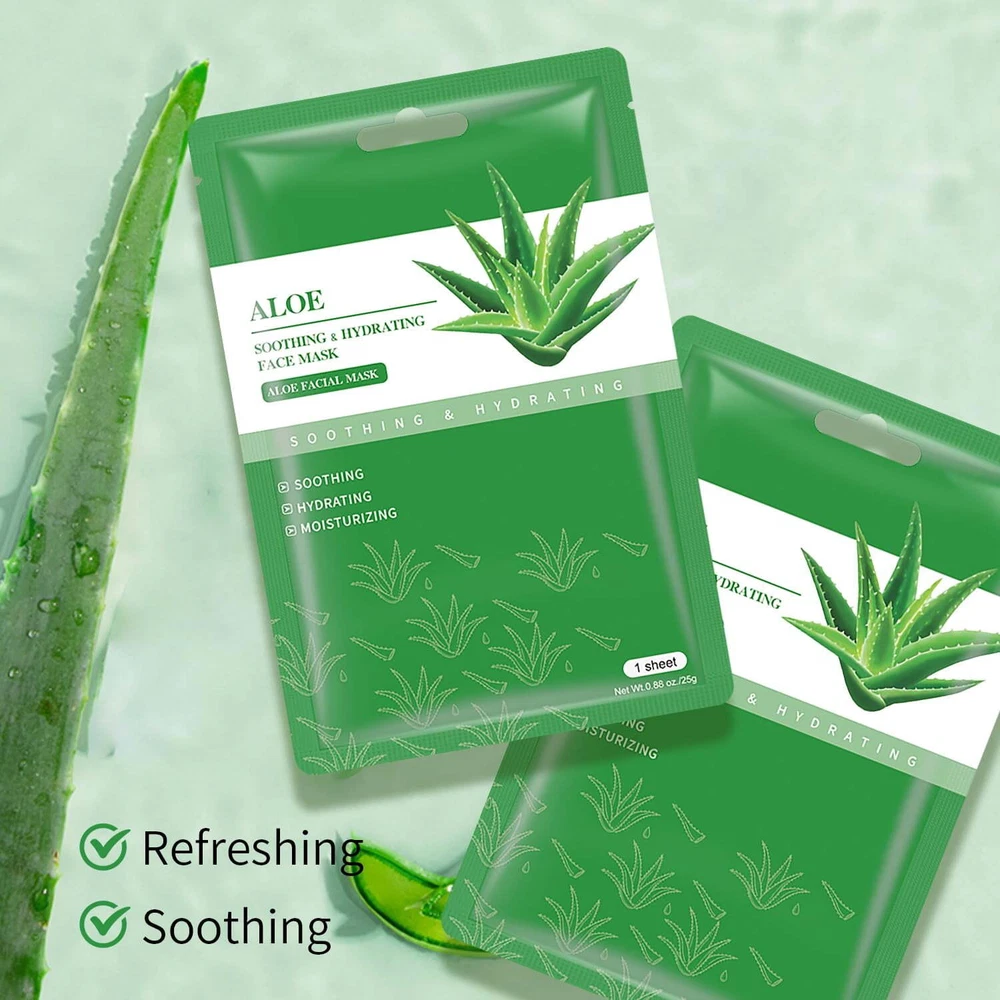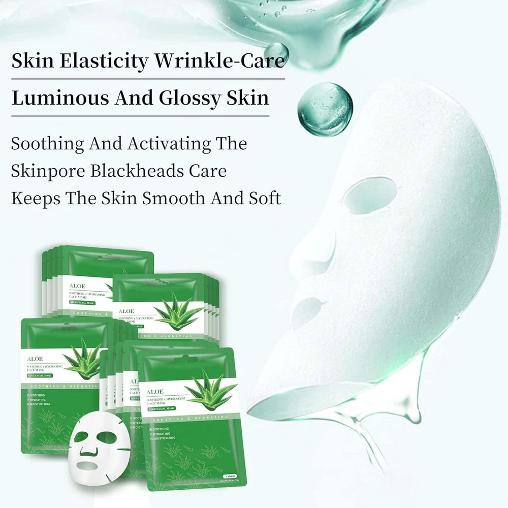 Light and silky smooth, the Aloe Brightening Mask instantly infuses skin with deep hydration and antioxidant rich nutrients. Organic aloe vera mask with hydration while improving the appearance of rough and dull skin, leaving it glowing and radiant. Mooyam Aloe Brightening Mask is specifically formulated for dry, prematurely aged and hyperpigmented skin. 【 Natural Facial Skincare Mask 】 : The premium face mask for woman skincare with natural material extracted from eucalyptus trees, and the silky smooth and soft thick texture to deliver active ingredients deeper into the skin for greater hydration, refreshment, and higher efficacy & adhesion; they stop evaporation & lock in moisture so the skin absorbs every drop. Skin will quickly feel tighter. 【 Hydrate and Brighten 】 : Infused with organic aloe vera, our lightweight, silky mask delivers deep hydration and antioxidant-rich nutrients, leaving your skin feeling soft, supple, and radiant. 【 Suitable For All Skin Types 】 : This facial skincare is fit for all face sizes and all skin types. Whether you have dry skin, oily skin, or combination skin,it can create firmer skin with confidence to you. 【 Nature Ingredients 】 : These Sheet facial skincare are made out of ingredients from nature. They contain a serum with moisturizing and nourishing properties that leave your skin sooth and moist, and it perfect for all skin types. 【 Easy To Apply 】 : Simple unfold and apply onto face after 15-20 minutes,you can have quick results targeting on hydrating. Using 2 or 3 times per week, you'll get better hydration. The independent packing is compact, convenient to use at any time anywhere. Ingredients Aloe Vera/div>