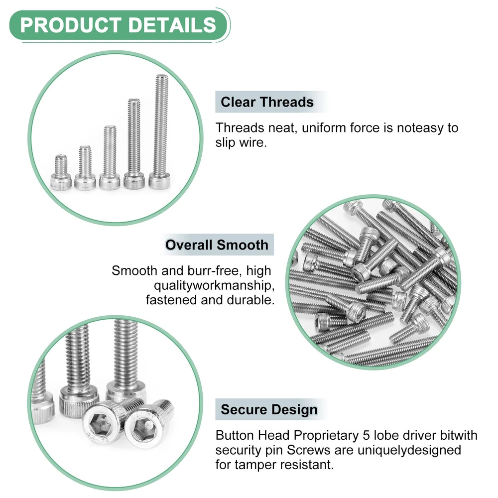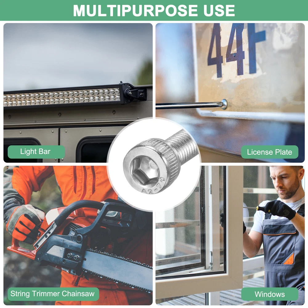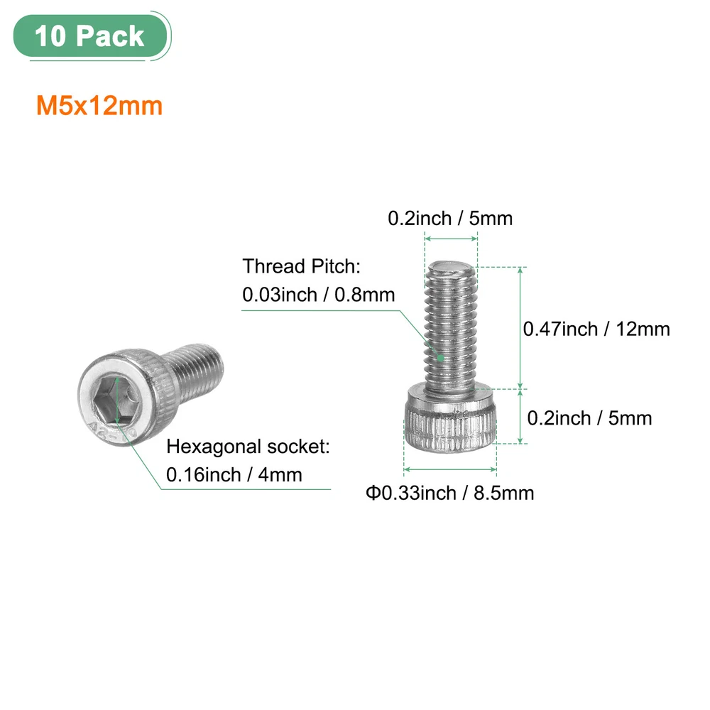 Document PRODUCT APPLICATIONSOur tamper-resistant screws have various applications. They can be used for windows, framed artwork, security cameras, locks, bicycles, exhaust mufflers, electronic products, oil pipelines, shipbuilding, construction, steel structures, chemical, and home improvement.PRODUCT DETAILS & INCLUDE√ Material: 304 Stainless Steel√ Color: Silver√ Overall Size, Thread Diameter: 5mm/0.2 Inch; Thread Length: 12mm/0.47 Inch; Head Diameter: 8.5mm/0.33 Inch; Thread Pitch: 0.8mm/0.03 Inch; Head Thickness: 5mm/0.2 Inch; Hexagonal socket: 4mm/0.16 Inch; Hexagonal socket Hole Deep: 2.5mm/0.1 Inch√ Package Includes:10-Pack x Stainless Steel Hex Socket ScrewsPRODUCT ADVANTAGES1. Crafted from sturdy 304 stainless steel, our socket head cap bolts offer excellent durability and resistance to weathering. Rust-proof and corrosion-proof material properties that promise a long service life, ensuring long-lasting performance in outdoor conditions.2. Our chainsaw full-thread screws feature a deep thread, uniform tooth path, no burrs on the surface, and clear no slip. It has six stress surfaces, which are more able to withstand the screw than the one-line screw and the screw with only two faces.INSTALLATIONEasy installation: it is very convenient for assembly and maintenance, convenient for debugging, and more difficult to slip. 10-Pack Socket Head Cap Screws Bolts M5x12mm 0.8mm Pitch for Chainsaw [Silver] PRODUCT APPLICATIONS Our tamper-resistant screws have various applications. They can be used for windows, framed artwork, security cameras, locks, bicycles, exhaust mufflers, electronic products, oil pipelines, shipbuilding, construction, steel structures, chemical, and home improvement. PRODUCT DETAILS & INCLUDE √ Material: 304 Stainless Steel √ Color: Silver √ Overall Size, Thread Diameter: 5mm/0.2 Inch; Thread Length: 12mm/0.47 Inch; Head Diameter: 8.5mm/0.33 Inch; Thread Pitch: 0.8mm/0.03 Inch; Head Thickness: 5mm/0.2 Inch; Hexagonal socket: 4mm/0.16 Inch; Hexagonal socket Hole Deep: 2.5mm/0.1 Inch √ Package Includes:10-Pack x Stainless Steel Hex Socket Screws PRODUCT ADVANTAGES 1. Crafted from sturdy 304 stainless steel, our socket head cap bolts offer excellent durability and resistance to weathering. Rust-proof and corrosion-proof material properties that promise a long service life, ensuring long-lasting performance in outdoor conditions. 2. Our chainsaw full-thread screws feature a deep thread, uniform tooth path, no burrs on the surface, and clear no slip. It has six stress surfaces, which are more able to withstand the screw than the one-line screw and the screw with only two faces. INSTALLATION Easy installation: it is very convenient for assembly and maintenance, convenient for debugging, and more difficult to slip. Hot Item Payment 1.We accept eBay payment . 2.Payment must be received within 7 business days of auction closing. Shipping 1.We ship to your eBay or Paypal address. Please make sure your eBay and Paypal address is correct before you pay. 2.Items will be shipped within 1-3 business day when we received payment. 3.Delivery time depends on destination and other factors. Description Policy 10-Pack Socket Head Cap Screws Bolts M5x12mm 0.8mm Pitch for Chainsaw [Silver] PRODUCT APPLICATIONS Our tamper-resistant screws have various applications. They can be used for windows, framed artwork, security cameras, locks, bicycles, exhaust mufflers, electronic products, oil pipelines, shipbuilding, construction, steel structures, chemical, and home improvement. PRODUCT DETAILS & INCLUDE √ Material: 304 Stainless Steel √ Color: Silver √ Overall Size, Thread Diameter: 5mm/0.2 Inch; Thread Length: 12mm/0.47 Inch; Head Diameter: 8.5mm/0.33 Inch; Thread Pitch: 0.8mm/0.03 Inch; Head Thickness: 5mm/0.2 Inch; Hexagonal socket: 4mm/0.16 Inch; Hexagonal socket Hole Deep: 2.5mm/0.1 Inch √ Package Includes:10-Pack x Stainless Steel Hex Socket Screws PRODUCT ADVANTAGES 1. Crafted from sturdy 304 stainless steel, our socket head cap bolts offer excellent durability and resistance to weathering. Rust-proof and corrosion-proof material properties that promise a long service life, ensuring long-lasting performance in outdoor conditions. 2. Our chainsaw full-thread screws feature a deep thread, uniform tooth path, no burrs on the surface, and clear no slip. It has six stress surfaces, which are more able to withstand the screw than the one-line screw and the screw with only two faces. INSTALLATION Easy installation: it is very convenient for assembly and maintenance, convenient for debugging, and more difficult to slip. Hot Item Payment 1.We accept eBay payment . 2.Payment must be received within 7 business days of auction closing. Shipping 1.We ship to your eBay or Paypal address. Please make sure your eBay and Paypal address is correct before you pay. 2.Items will be shipped within 1-3 business day when we received payment. 3.Delivery time depends on destination and other factors.