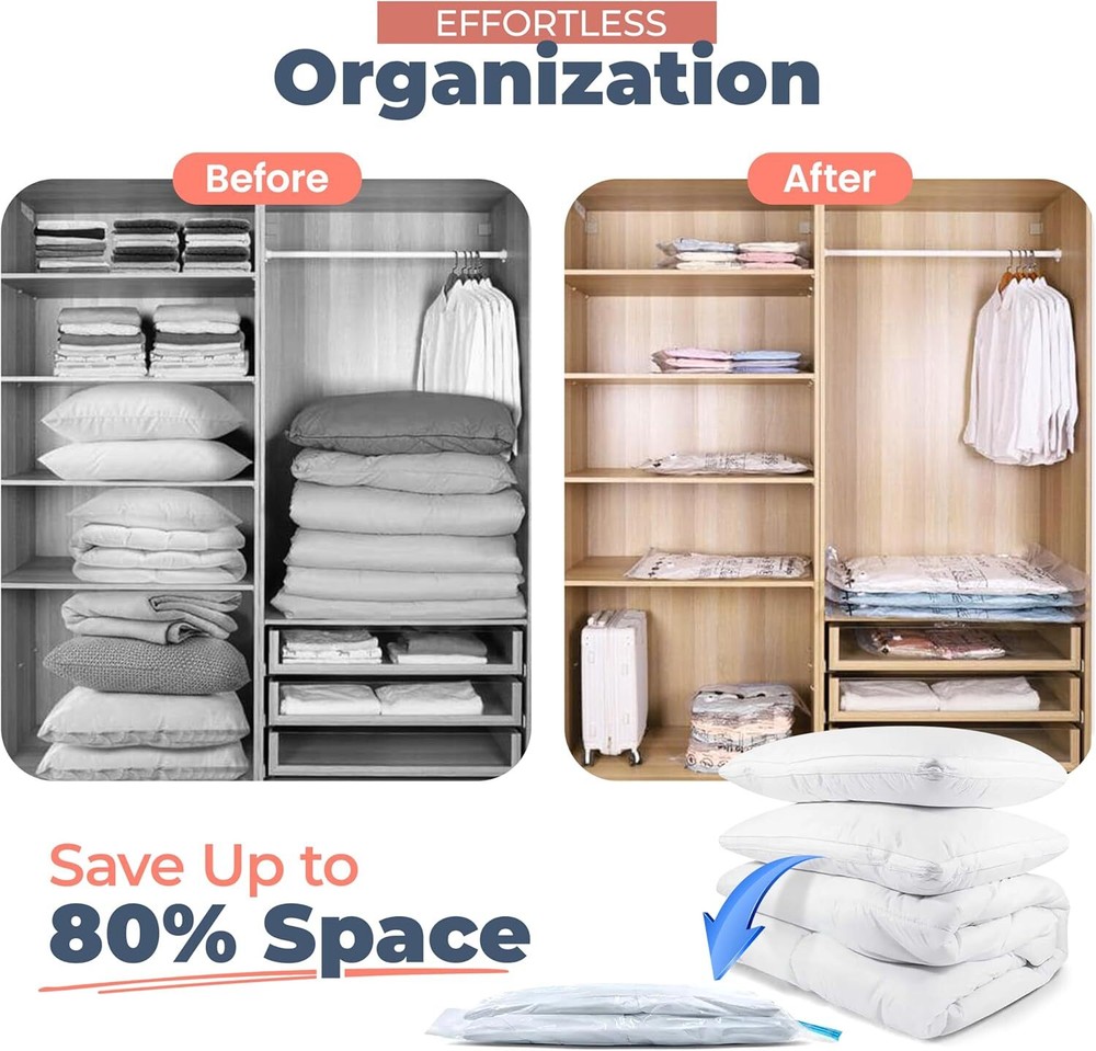 Space-Saving Vacuum Storage Bags with Pump - 15 Sizes for Clothes & Bedding Protection