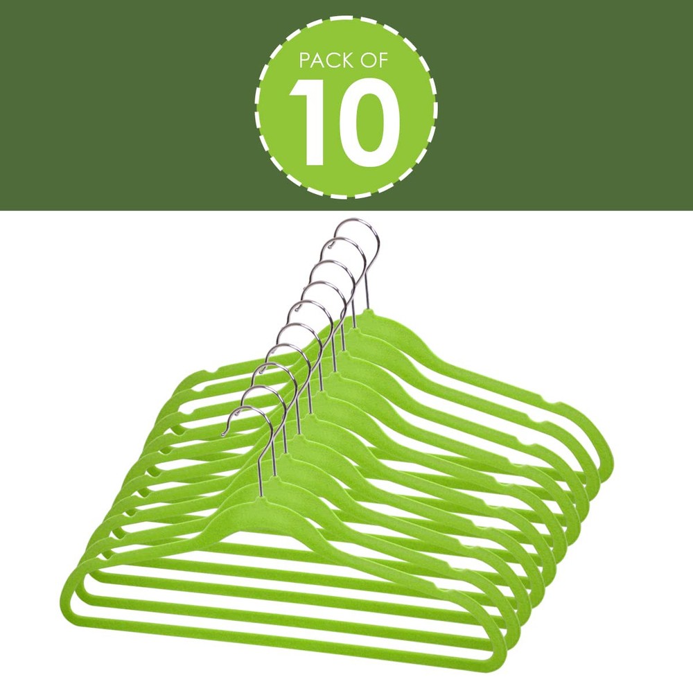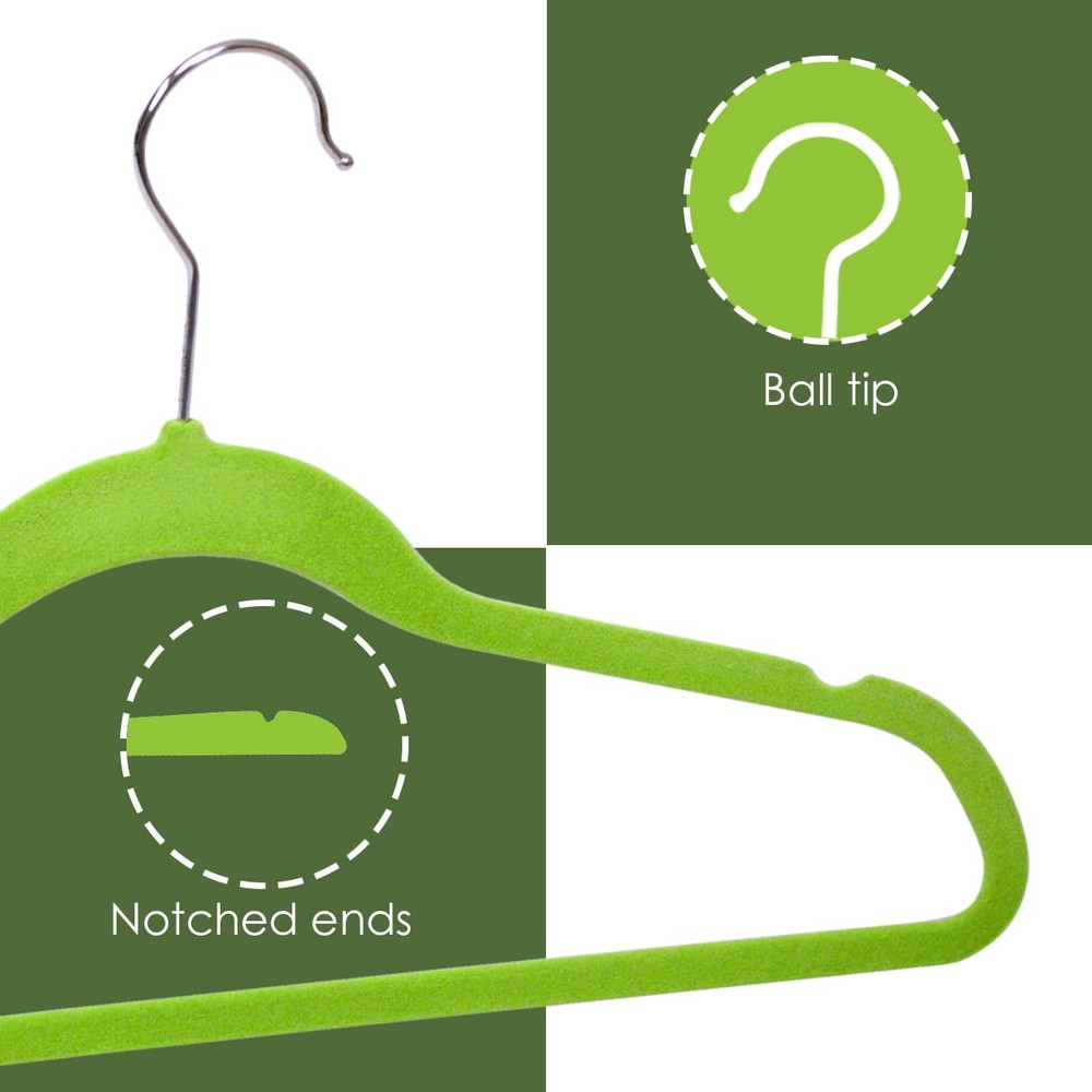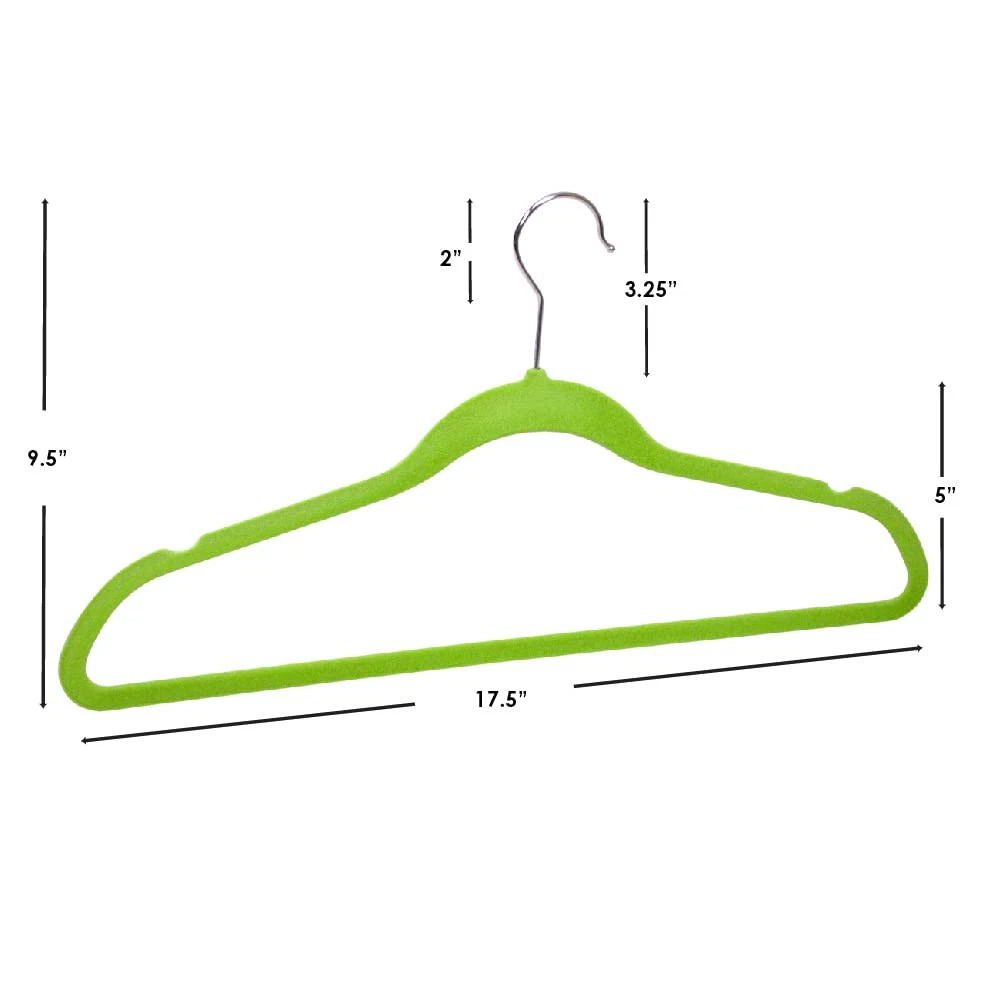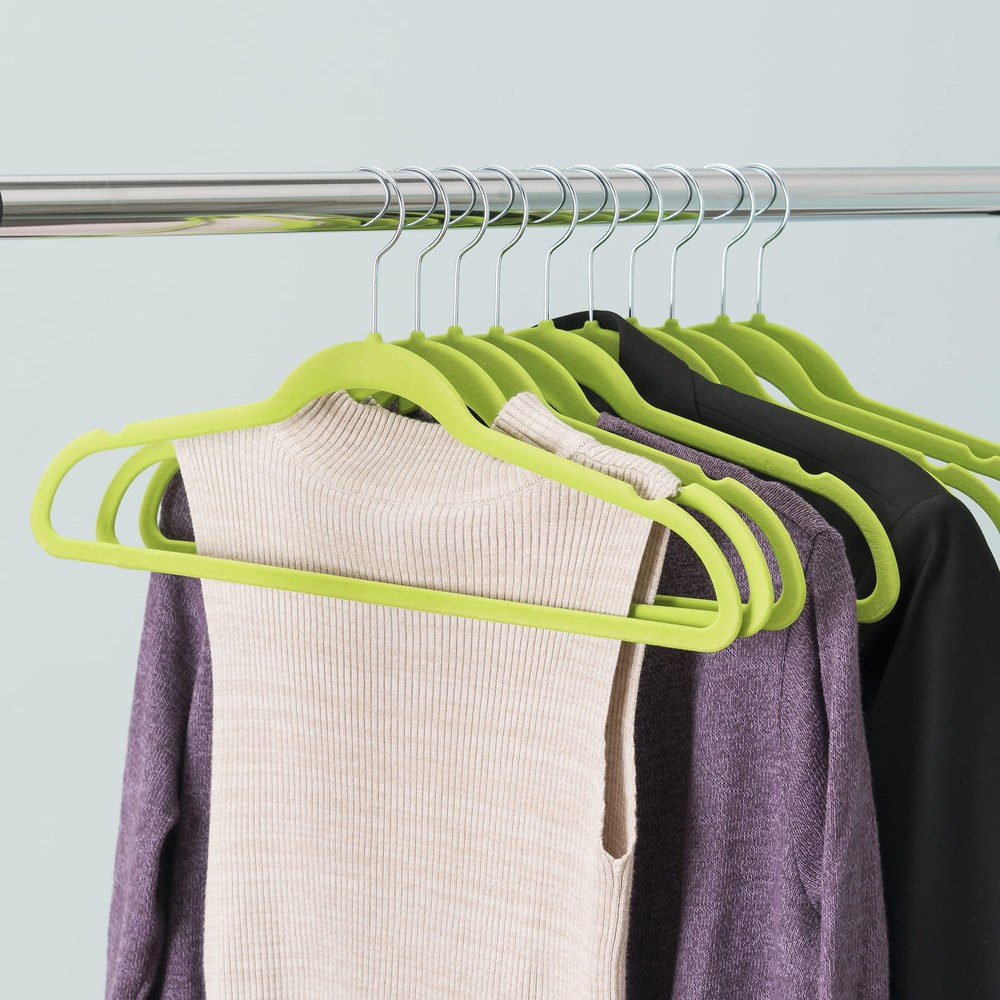 Whether you want to keep that little red dress you wore at the party last night looking as stunning as you are, or that buttoned down polo easily accessible for your 9-5, this lightweight hanger provides the perfect closet storage solution to meet your unique lifestyle. Its soft, non-slip velvet texture offers a luxurious feel while also preventing garments from falling to the ground. The contoured frame features small evenly spaced space indents on each side of the hanger to ensure your clothing maintains its shape for years to come. KEEPS YOUR CLOTHES IN PLACE: It is always annoying when your clothes fall off your ordinary hangers and onto your floors. Well, stop having that problem with these velvet clothes hangers, which due to their slip-resistant material, hold onto any type of clothing from jackets, tops, dresses, pants, and shorts FEATURES NOTCHES FOR STRAPPY CLOTHING: For clothes that have interior straps, these clothes hangers have indents at the sides for placing them, plus they come in handy if you want to use them for tank tops HAS A CONTOURED SHAPE AND SLIM DESIGN: The contoured shape of these thin velvet hangers holds your clothes securely without creating dents. And for those busy closets, each hanger has a slim profile that takes up a minimal amount of room INCLUDES A ROTATING HOOK WITH BALLED ENDS: The metal hooks of these felt hangers rotate a full 360 degrees and they each have a balled point at the end so that they stay securely on the closet rod GREAT FOR ACCESSORIES: Use these velvet clothes hangers not only for clothes, but for your other accessories as well such as belts, ties, and scarves