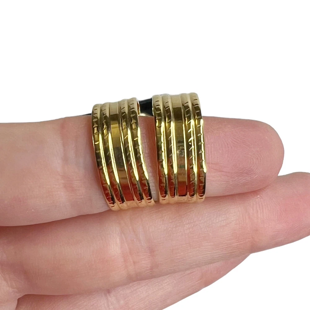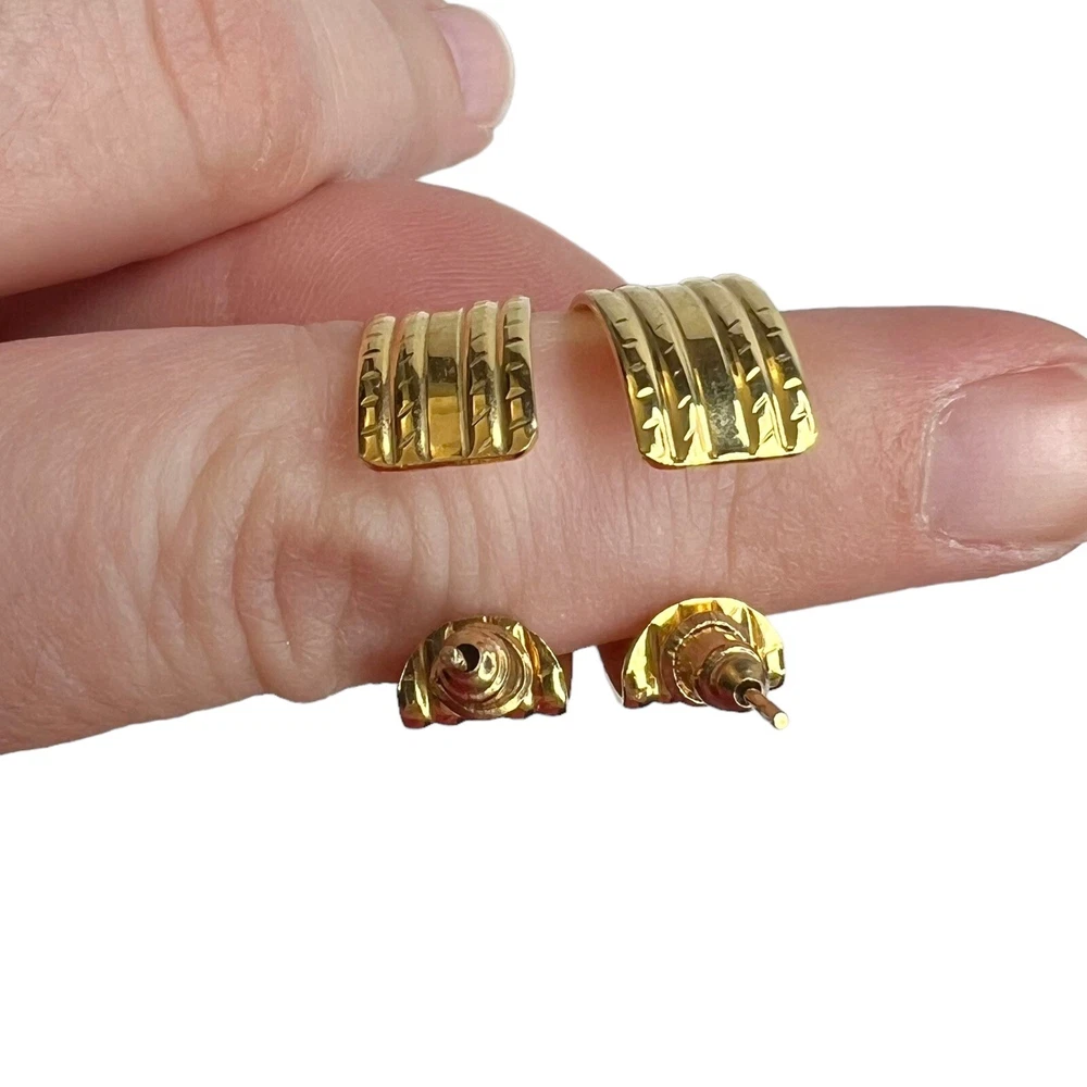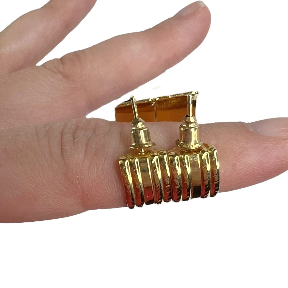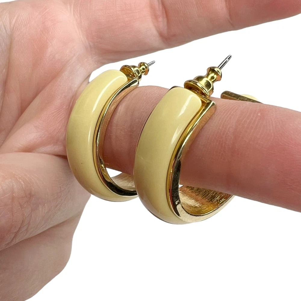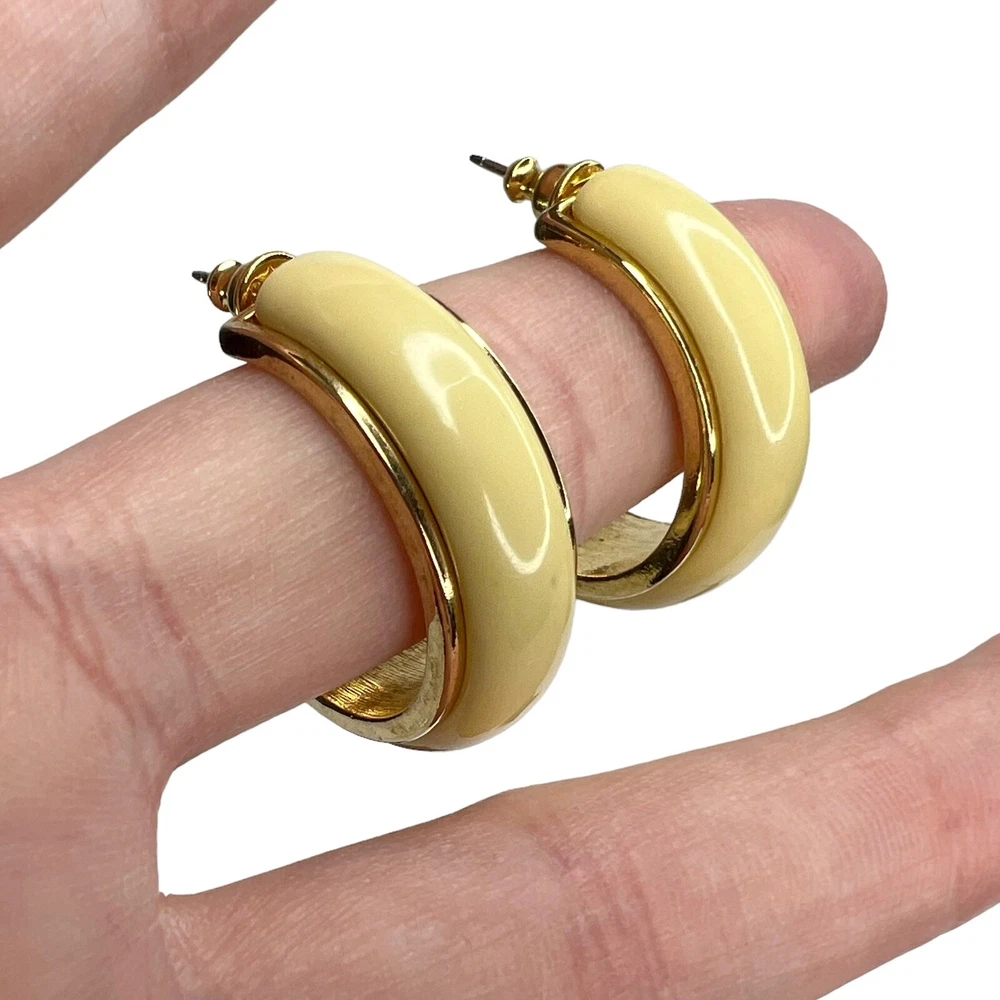 Lot of 10 Pairs of Hoops & Stud Pierced Earrings. Includes branded pieces from LOFT and AVON. All are in good condition (the loft studs and gold tone hollow hoops are new) but the Avon earrings do have 2 small marks on the outside. No precious metals or gems. Lot includes: -6 new on card LOFT studs -Avon creamy yellow enamel hoops -14K yellow gold plated chunky hoops -light gold & clear rhinestone hoops -gold tone textured wide hoops