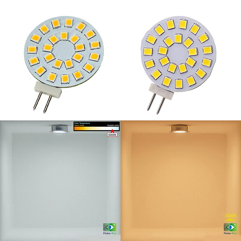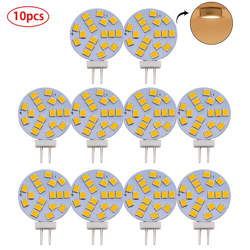 Description: G4 round LED lamps, 3 W replaces 20 W halogen light bulbs, 12 V AC/10-30 V DC, G4 bulbs for under-cabinet light recessed spotlight furniture recessed light ceiling light [Energy Class A++] G4 LED lamp delivers 200 lumens of light output, which corresponds to 20 watts of halogen with only 3w of energy consumption. Standard Ra80+, these bulbs create a comfortable and relaxing environment and differ from the original halogens xenon which emit a lot of heat. Features: The LEDs are exceptionally long-lasting, with an expected lifespan of 20,000 hours, 10 times the lifespan of halogens, significantly reducing the frequency of replacing burned-out bulbs. It is designed for use in 12V AC/DC household lighting, in-ceiling puck spotlight, under cabinet lighting, furniture cabinet, wardrobe downlight and in 10-30V DC circuit such as RV and RV (Note: The bulb can not be used with AC power over 16V). Each pack includes 6pcs,10pcs bulbs, brand new JAUHOFOGEI LED 1-year replacement warranty and 24-hour customer technical support. Specifications: Light Bulb Base: G4 Bulb Power: 1.8W Luminous Flux: 200 lm Voltage: 12V Light Color: Warm White, Cool White Color Temperature: 3000K, 6000K Led Chip: 2835 Bulb Shape: Circle Bulb Life: 20,000-24,999 hrs Eec Spectrum: A++ - G Package: 6 Pcs G4 LED Bulbs 10 Pcs G4 LED Bulbs On Dec 19, 2024 at 10:07:36 PST, seller added the following information: