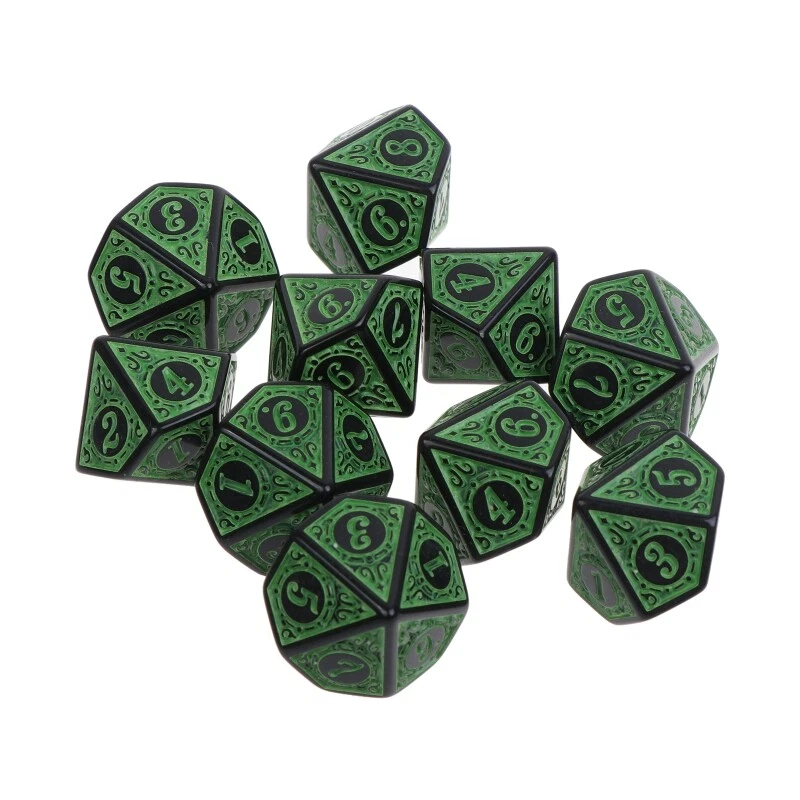 Features: Portable and durable, easy to carry, lightweight. Lightweight.Exquisite and delicate.Clear numbers. Suitable as devices for games. Application: Parties with families or colleagues. A for TRPG game lovers Specifications: Acrylic Color:Green,Blue,Red,Yellow,White Packing Size:Approx.11x7cm/4.33x2.76in Package Includes: 10x Multifaceted Dice note: Please allow 1mm errors due to manual measurement. Due to the difference between different monitors, the picture may not reflect the actual color of the item.