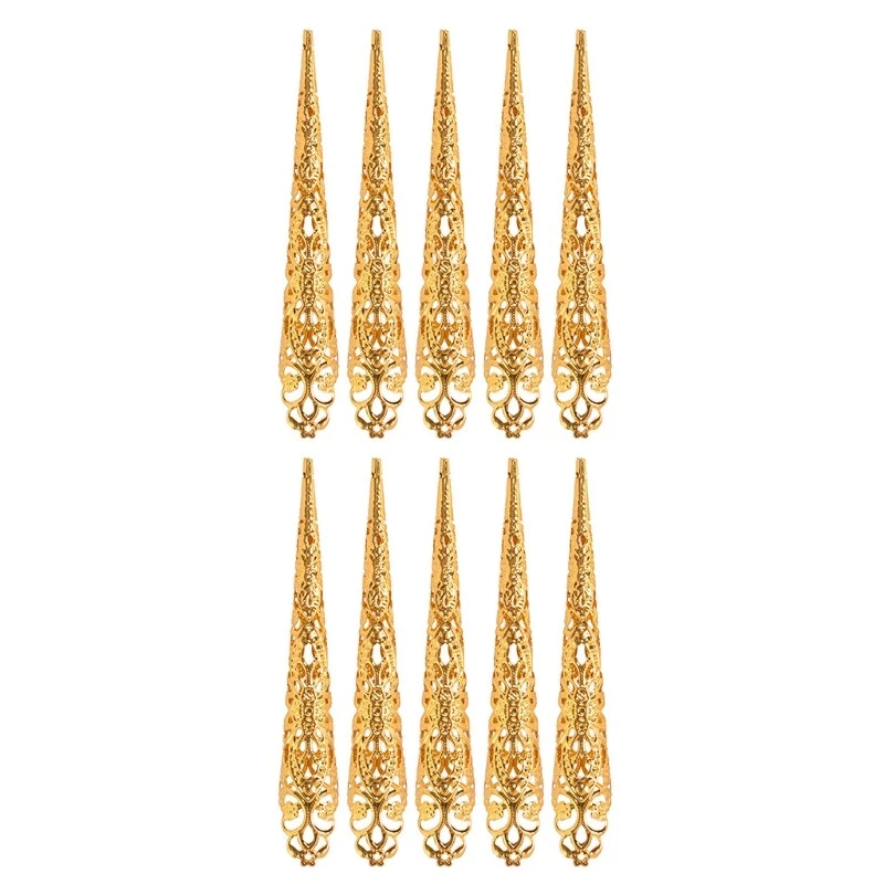Features: and high Exquisite queen appearance, this set of finger tip claw rings are specially designed like queen in ancient times, long for sharp end with golden color finish, very imposing and attractive among people. Premium material, these fingertip claw rings are high material, skin-friendly non-faded , rustproof and durable for long for time use. please leave it away from water when wearing or putting aside. Wonderful decor this finger rings has a stylish and appearance, and it is usually popular among actresses or people who are interested in ancient costume drama role for play.will make you more attractive. It may also be a beautiful accessory in your collection, or a beautiful family or Suitable for multiple performances,queen's dress ,cosplay finger claws are for thousand-hand Bodhisattva Guan Yin and belly dance, sexy dancer dress up, wedding, for queen costumes, halloween costumes for women, christmas Won'for t fall down ,adjustable micor-open , you can adjust it into suitable size according to your fingers,it wont scartch your fingers,lightweight. Specifications: Metal Plating Size:12cm×1.8cm/4.72×0.7inches Color Gold Package Includes: 10 Pieces Fingernail Claws note: Please allow 1-2cm errors due to manual measurement. Due to the difference betweeen different monitors,the pic may not reflect the actual color of the item.