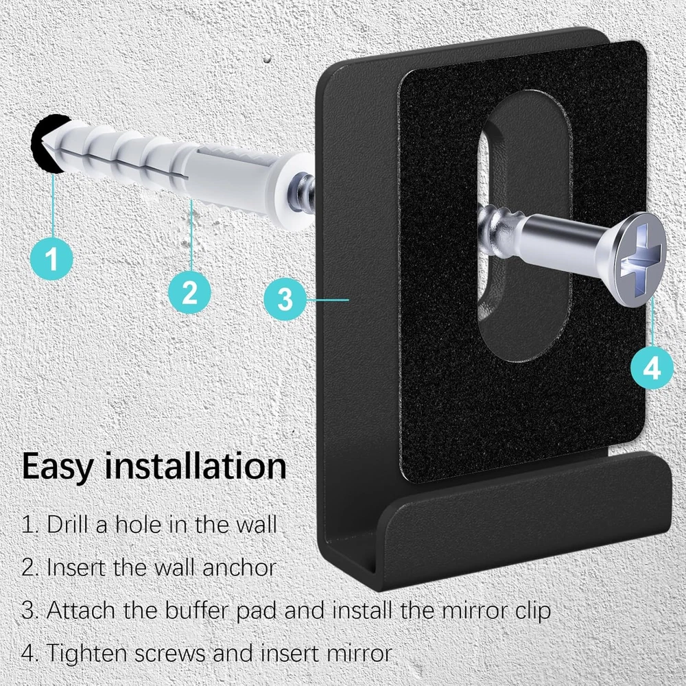 Store New Arrivals Add to Favorite View Feedback Contact 10Pcs Metal Mirror Clips Wide Channel Mirror Hanger Clip Kit Large Heavy Retainer Clips for Mirrors with Screw Mirror Clips for Wall Mounting Frameless Mirror Billboard Displays Tile Display Description Item model number MKA00078 Part Number MKA00078 Style Metal Style Mounting Type Wall Mount Item Package Quantity 1 Color Black Product Dimensions 1.5 x 1 x 0.31 inches Material Alloy Steel Item Depth 0.31 inches Item dimensions L x W x H 1.5 x 1 x 0.31 inches Item Weight 0.15 Kilograms Batteries Included? No Batteries Required? No Installation Method Screw-In Included Components 10 x wide channel metal mirror hanger clips, 10 x anchors, 10 x screws Quality Material: This black "J" mirror hanging bracket is made of japanese alloy steel materials, high hardness, corrosion-resistant, rust-resistant, one-piece molding, strong load bearing capacity, durable, perfect for hanging large, heavy mirrors Metal mirror clips set: You will get 10 x wide channel metal mirror hanger clips, 10 x screws, 10 x anchors. Metal mirror clips size measuring 1/4" deep, 1" wide,1-1/2" tall, these mirror brackets for use with 1/4" thick mirrors Easy to install: Mirror wall mount brackets comes with mounting screws, you can be easily installed with the help of tools, drilling holes and inserting these items into the proper position, tightening screws and embedding mirrors, multiple clips can be used in combination to ensure ideal fixing Wide Application: This mirror holder clips set can be widely applied to frame fixed ceramic tiles or mirror hooks, drawing board, picture hangers, billboards in your home, bathroom, gym, office, garage, basement and more. They’re small and unobtrusive, classic black color can be compatible with all scenarios What You Will Get: 2 years (24 months) warranty and 24 hours customer support. If you have any questions, please feel free to and give us a chance to solve your problem. Product Description ABOUT US We offer the best prices around on high quality products. Our E-store includes media such as books, movies, music and games while offering electronics, toys, sporting apparel, clothing, tools, general home, garden items and more. SHIPPING We are always working hard to ensure your package arrives as soon as possible. Please understand that some factors like weather, high postal traffic, and the performance of shipping companies are outside of our control. We offer free shipping to the lower 48 states and ship within 2 business days of payment, usually sooner. We do not accept P.O. Boxes. Please provide a physical address. For shipping outside of the continental USA, we only use eBay's Global Shipping Program.The item is shipped to KY and then sent to the rest of the world. International customers are responsible for all duties and taxes. Continue to check out in order to calculate costs for shipping the item to your country. Messages regarding eBay's Global Shipping Program MUST be directed at eBay EXCLUSIVELY. RETURNS We offer a 30-Day Return Policy on items which you are not completely satisfied with. You have the option for a full-refund or an exchange of the item. No returns are available on items shipped outside of the USA. PAYMENT We accept PayPal. CONTACT US This page content is yet to come Please ad us to your favorite seller and visit again later Thank You CUSTOMER SATISFACTION We try our very best to make sure every customer is completely satisfied. If there's a problem, message us! We're happy to help. WE ACCEPT Copyright © 2021 AutoDS. | All Rights Reserved