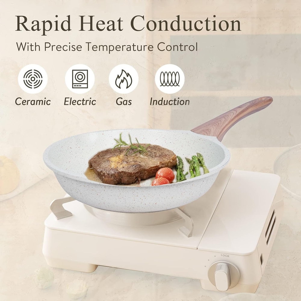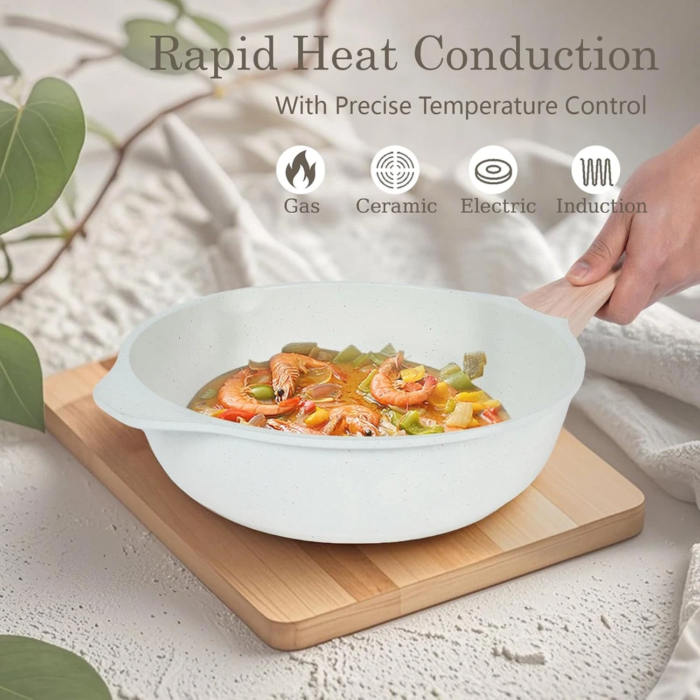 $ 47.09Ceramic Nonstick Induction Frying Pan Set with Lids - White Skillets