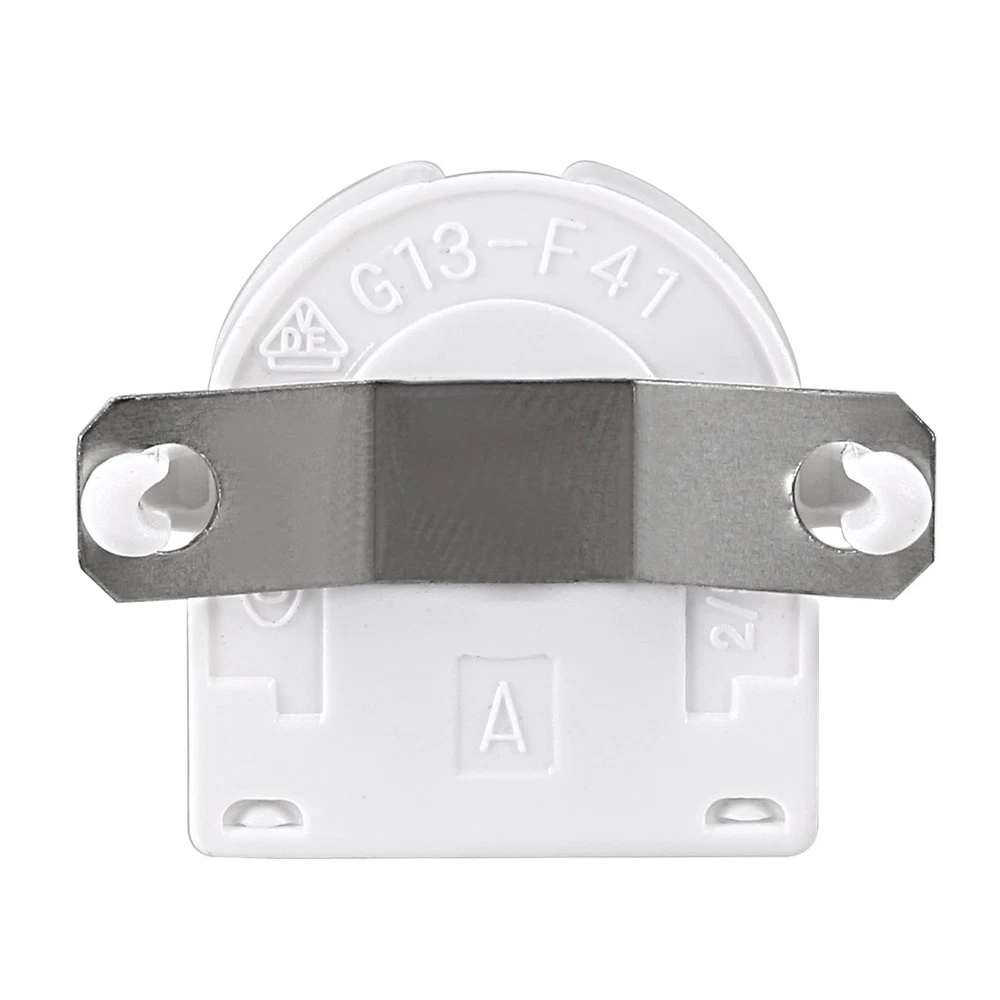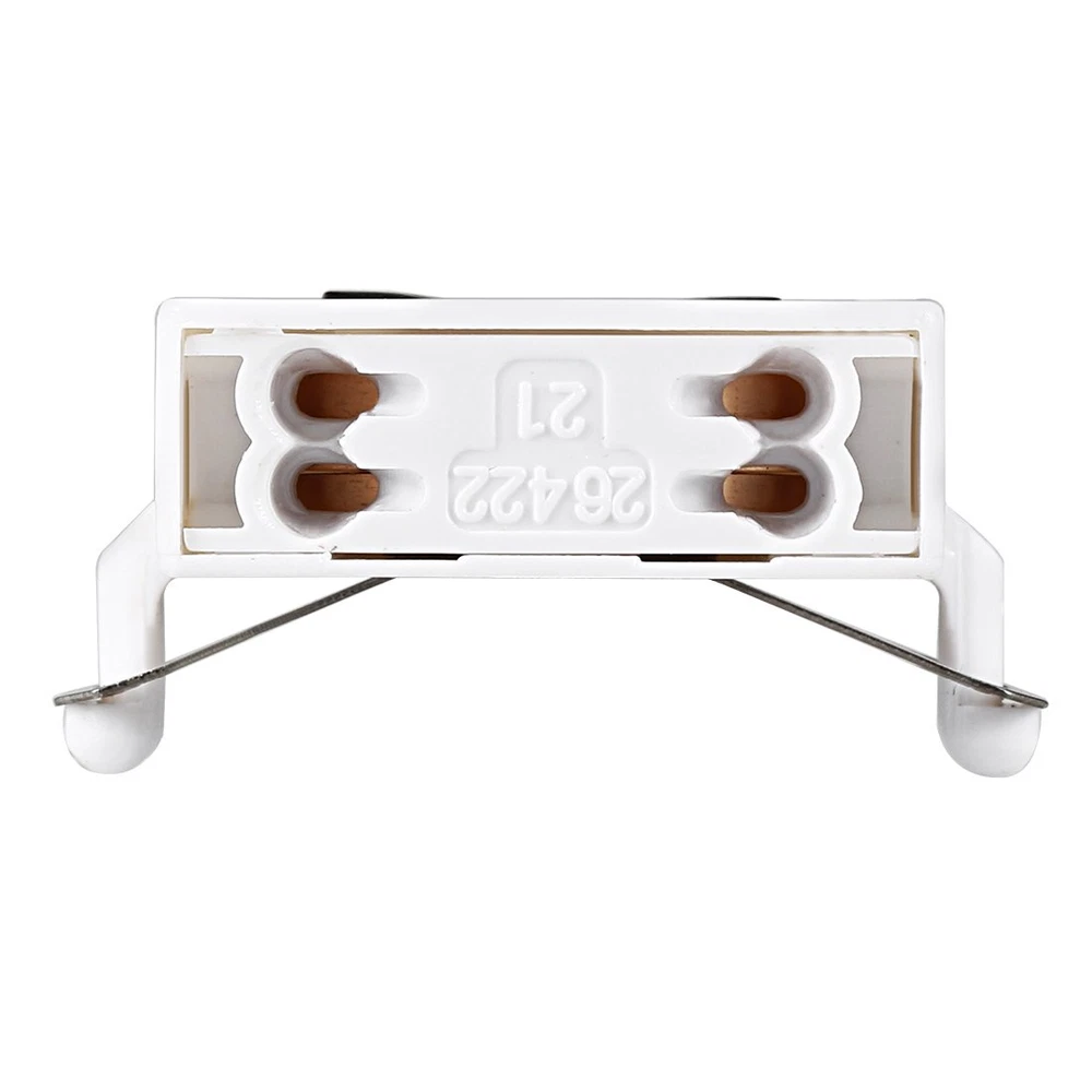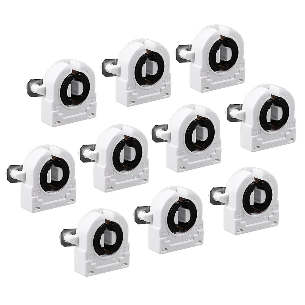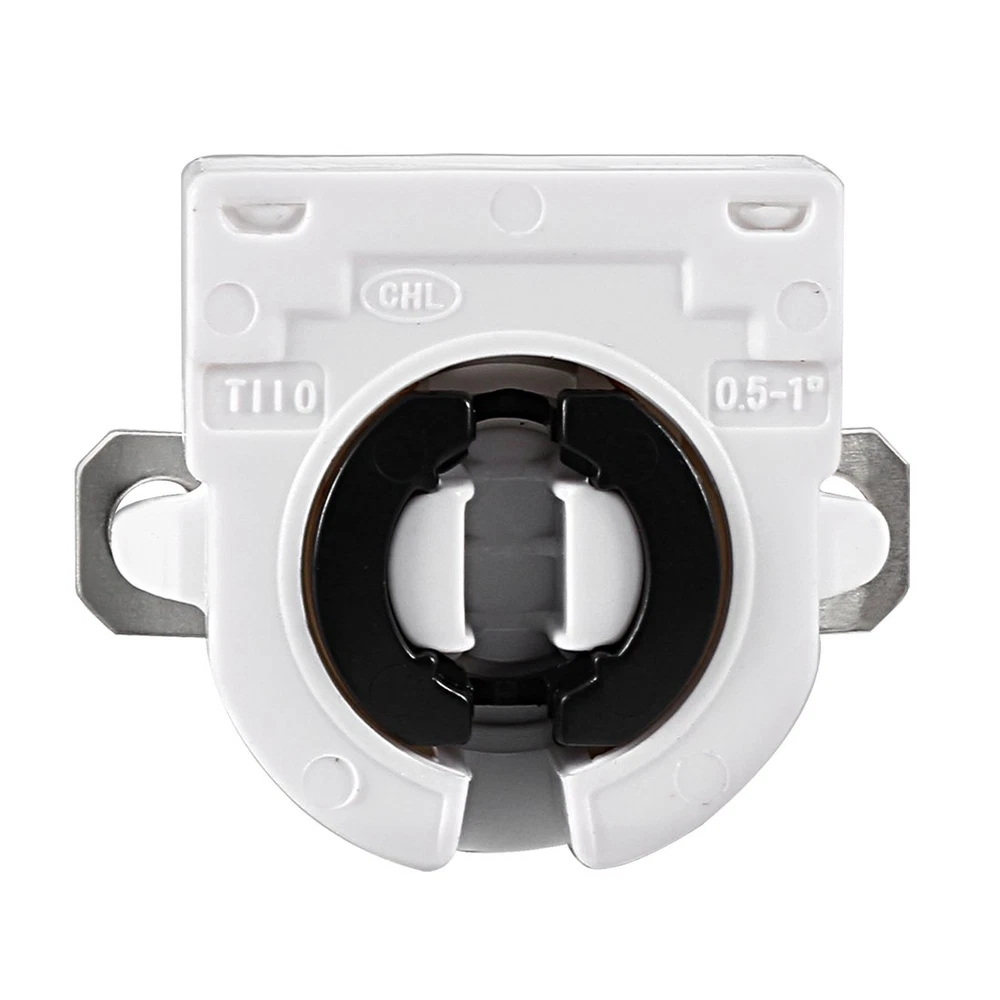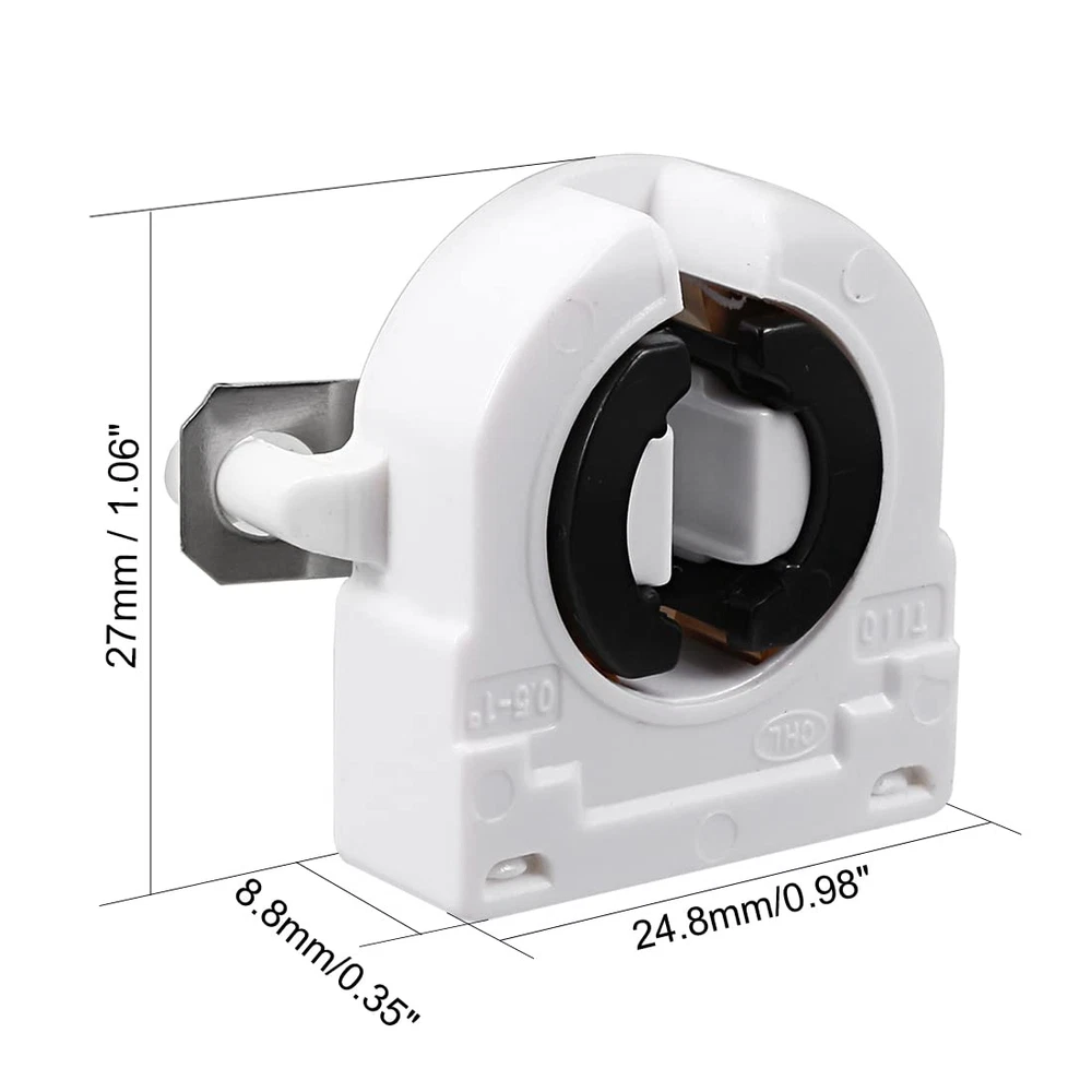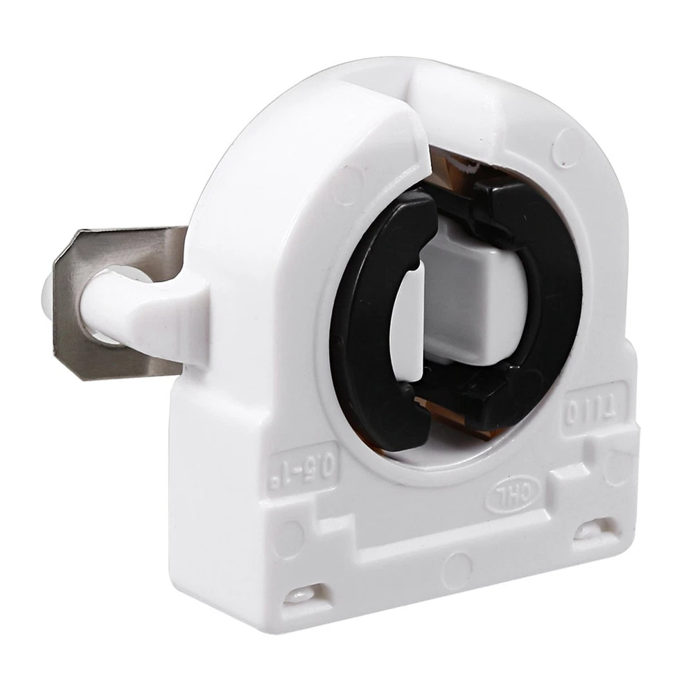 Product Description T8 Lamp Holder √ Durable and long-lasting. √ A perfect choice to replace old and damaged lamp holder. √ Work great for Bi-Pin fluorescent or LED lighting retrofit projects. Specification Index Maximum Voltage: AC 500V Maximum Current: 2A Type: Tombstone, Single Head Fit Fluorescent or LED Tube Size: T8 T10 T12 Mounting Method: Push Through Mount (Snap-In) Package Includes NO Wires Heat Resistant This T8 lamp holder is made from high-quality heat resistant material. Easy to Use Simply push rigid solid and stranded conductors into without using any tools. The spring contracts hold the wires firmly that once it clamps the wires, they can hardly loose. Steps to Replace a Tombstone Light Holder in a Light Fixture Step 1: Turn off the circuit breaker and the wall switch that operates the fluorescent fixture. Step 2: Remove the cover from the fixture and twist the fluorescent/LED tubes to release them from the light holder and carefully set the tubes aside. Step 3: Make sure that there is completely no electrical current in the fixture by holding a noncontact voltage detector. Step 4: Remove the screw or pull the damaged tombstone from the end of the fixture. Step 5: Pull out the wires from the tension spring contracts. You can insert a straightened paper clip or a screwdriver into the wire hole to open the spring contracts. Step 6: Connect the new tombstone light holders to the end of the light fixture. Garage / Underground Parking / Basement Home / Office / Lighting Retrofit Shop Light