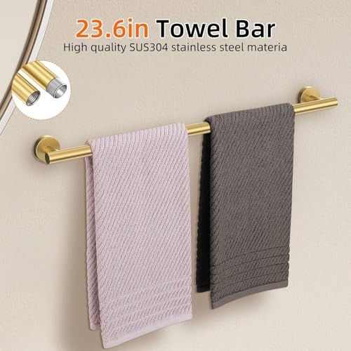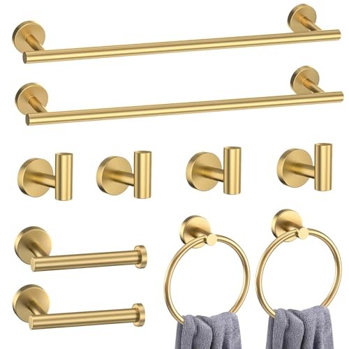 Return Policy Fast Delivery Trusted seller 10-Piece Bathroom Hardware Accessories Set-Brushed Gold Towel Bar&Holder Set,SUS304 Stainless Steel Towel Rack Set-Wall Mounted,23.6-Inch Product Description This brushed gold bathroom hardware set is made of high-quality SUS304 stainless steel to prevent rust and corrosion and is durable This bathroom accessories set contains two 23.6-inch towel bars, two towel rings, two toilet paper holders, and four towel hooks. This bathroom accessories set can meet all your needs in daily life and match your bathroom equipment perfectly This towel rack contains all the hardware and screw accessories required for installation. We provide detailed installation instructions to make installation quick and easy This round towel bar set is designed with simple lines. It can match any home decoration and style. It is the perfect accessory for your bathroom This bathroom towel rack set is perfect for bathrooms, powder rooms, laundry rooms, kitchens, and even outdoor showers. This bathroom set provides efficient storage functions to create a neat and organized bathroom space If you have any questions about the product, please feel free to contact us and we will definitely help you solve it Shipping Returns Payment Shipping Shipping is FREE to all addresses other than APO/PO boxes in the lower 48 states. All our stock ships from US-based warehouses. Shipped via USPS or UPS (depending on location and package weight) Unless stated otherwise, all orders will ship within 24-72 hours of your payment being processed. Check our feedback to see the great reviews of FAST shipping we offer. Returns Seller does not accept returns Payment We currently accept payment via eBay managed payments only. Once payment is cleared, we will dispatch your shipment within 1-3 business days. Please refer to the "Shipping" tab for more information regarding shipping speed to your destination.