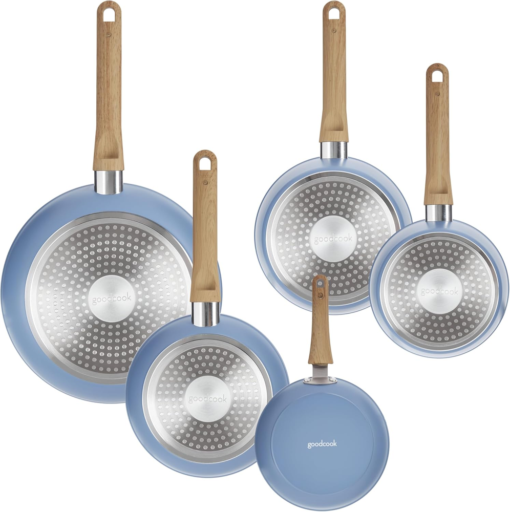 Store New Arrivals Add to Favorite View Feedback Contact 10-Piece Healthy Ceramic Titanium-Infused Cookware Set, Light Blue – Pots, Pans, Steamer, Spoon & Turner – Induction Cookware, Kitchen Pots & Pans Set, Nonstick Cooking Pan Set Description Cookware Set Is Compatible With Most Cooktops (Induction, Gas, Electric, Ceramic) Item model number 4544 Country of Origin China Is Oven Safe No With Lid Yes Department kitchen Number of Pieces 10 Item Volume 2 Quarts Material Ceramic Compatibility Options Induction Included Components 10 piece cookware set Closure Material Glass Is Dishwasher Safe No Item Weight 9.06 pounds Special Feature Programmable Utensil Compatibility Wooden utensils Color Light Blue Is Cookware Induction Compatible Yes Handle Material Wood Material Type Free PFOA Free, PFAS Free, PTFE Free, Lead Free, Cadmium Free Product Dimensions 7.88 x 16.55 x 11.82 inches Size 10-Piece Cookware Set 10-PIECE COOKWARE & UTENSIL SET: Stock your kitchen with this 10-piece cookware set that includes induction 7” and 9.5” fry pans, induction 1.25-qt and 2-qt saucepans with lids, a steamer that fits the 2-qt saucepan, egg pan, spoon, and slotted turner. PROMOTES HEALTHIER COOKING: Constructed with a titanium-infused ceramic nonstick coating that allows you to cook with less oil and butter for healthier meals. This cookware also ensures a mess-free release, even for the stickiest foods. DISTRIBUTES HEAT EVENLY: This pots and pans set distributes heat evenly and is safe for all stovetops, including induction. Both wood utensils also feature soft-touch, stay-cool handles for comfort and control. DURABLE CONSTRUCTION: Made with heavy-gauge, sturdy aluminum body, and coating this induction cookware is free of PFAS, PFOA, lead, and cadmium to withstand long-lasting durability. STYLISH LIGHT BLUE FINISH: This kitchen set has a trendy matte light blue exterior and a light beige interior with gray speckles to add luxurious style to any home. Ideal for easy meals and is compact for storage in apartments and small kitchens. Bring premium cookware to your home kitchen with the GoodCook Healthy Ceramic Titanium-Infused 10-Piece Cookware Set. Designed especially for home cooks, this cookware set includes 7" and 9.5" fry pans, 1.25-quart and 2-quart saucepans with lids, a steamer, egg pan, spoon, and slotted turner so you'll always have the cookware and utensils you need. With titanium-infused ceramic nonstick surfaces, these cookware pieces allow you to cook with less oil and butter for healthier meals while ensuring an excellent mess-free release, even for the stickiest of foods. Each cookware piece distributes heat evenly for the best results and is safe for all stovetops (including induction), and both wood utensils feature ergonomic soft touch and stay-cool handles for optimal comfort and control as you cook. The cookware's trendy matte light blue exterior and sophisticated light beige interior with gray speckles add luxurious style to any home's kitchen, and the tempered glass lids allow you to watch your food as it cooks while keeping it covered. ABOUT US We offer the best prices around on high quality products. Our E-store includes media such as books, movies, music and games while offering electronics, toys, sporting apparel, clothing, tools, general home, garden items and more. SHIPPING We are always working hard to ensure your package arrives as soon as possible. Please understand that some factors like weather, high postal traffic, and the performance of shipping companies are outside of our control. We offer free shipping to the lower 48 states and ship within 2 business days of payment, usually sooner. We do not accept P.O. Boxes. Please provide a physical address. For shipping outside of the continental USA, we only use eBay's Global Shipping Program.The item is shipped to KY and then sent to the rest of the world. International customers are responsible for all duties and taxes. Continue to check out in order to calculate costs for shipping the item to your country. Messages regarding eBay's Global Shipping Program MUST be directed at eBay EXCLUSIVELY. RETURNS We offer a 30-Day Return Policy on items which you are not completely satisfied with. You have the option for a full-refund or an exchange of the item. No returns are available on items shipped outside of the USA. PAYMENT We accept PayPal. CONTACT US This page content is yet to come Please ad us to your favorite seller and visit again later Thank You CUSTOMER SATISFACTION We try our very best to make sure every customer is completely satisfied. If there's a problem, message us! We're happy to help. WE ACCEPT Copyright © 2021 AutoDS. | All Rights Reserved