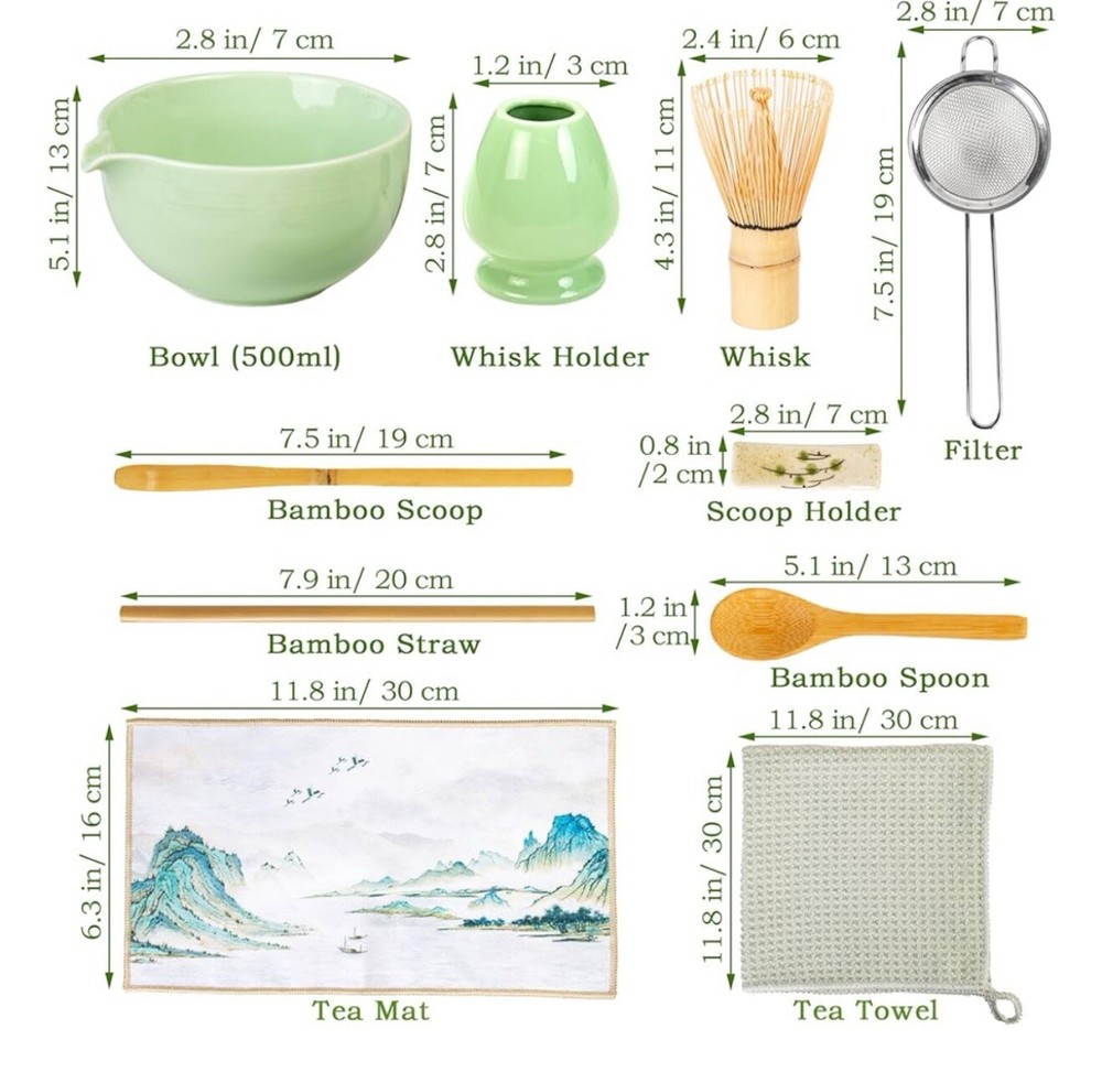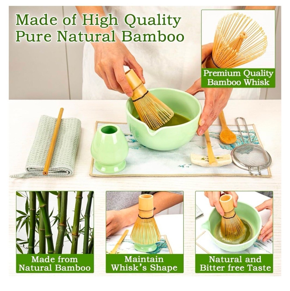 10 Pcs Matcha Whisk Set, 100 Prongs Bamboo Whisk with 17 OZ Spouted Ceramic