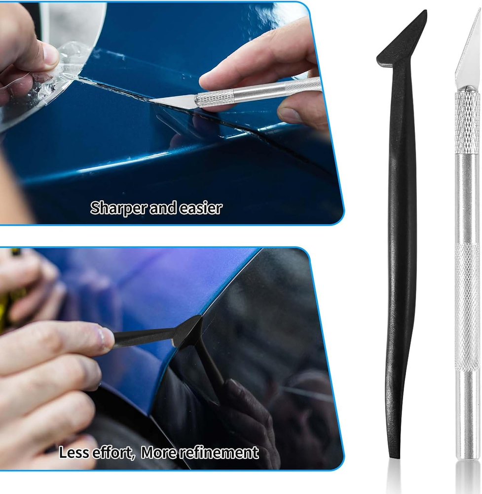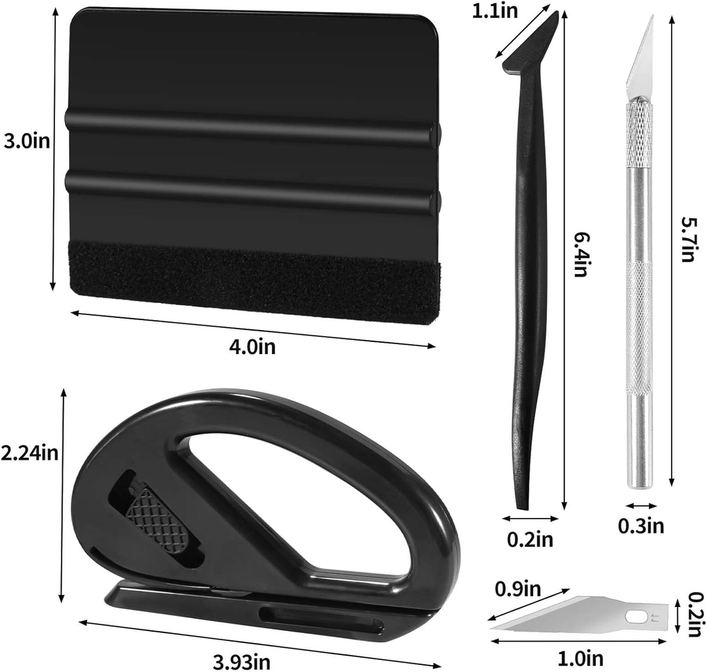 Store New Arrivals Add to Favorite View Feedback Vinyl Wrap Tools Kit, 10 PCS Professional Car Wrap Tool Kit, Window Tint Tools Kit Includes Carving Knife, Edge Trimming Knife, Safe Membrane Cutter, Soft Square Scraper, Spare Blades Description Item model number MCA-100 Part Number Vinyl Wrap Tools Kit Style Craft Knife Item Package Quantity 1 Color Black Product Dimensions 7.2 x 5.3 x 0.66 inches Material Acrylonitrile Butadiene Styrene, Carbon Steel, Aluminum, Felt Country of Origin China Warranty Description 30-Day Return Guarantee Handle Type Non-Retractable Item Weight 3.66 ounces Handle Material Acrylonitrile Butadiene Styrene Batteries Required? No Blade Material Aluminum, Carbon Steel Manufacturer Mcykcga Brand Mcykcga Included Components Vinyl Wrap Tools Kit 【Professional Vinyl Wrap Kit】This Car Tinting Kit includes 2 vinyl-wrapped scrapers, 1 long rod micro scraper, 1 carving knife hard hat to prevent cutting yourself when not in use, 1 blade storage box, 1 craft knife and 5 spare sharp blade replacements, a small set of tools to meet all your needs. 【High-quality Window Tint Tools】These car window film scrapers and felt edge squeegee are made of new generation ABS plastic and carbon steel, which is not easy to deform and has moderate hardness, resistant to high temperature; The handle of the craft knife is made of all aluminum and has high hardness, durable for long time using. 【Felt Edge Squeegee】The felt edge squeegee in this car wrap tool kit is made of durable ABS plastic and features quality fabric felt edges, so you won't have to worry about scratching or marking. It is highly effective for scraping off bubbles trapped under the film, preventing damage to glass, car paint, and the film itself. 【Craft Knife with An Aluminum Handle】The craft knife in this window tinting tools set is sharp and durable, coming with 5 extra blades for extended use and easy blade replacement. When you want to change the blade, you can snap on the guard to securely tighten it, protecting the blade and preventing accidental cuts. 【Versatile Car Tinting Kit】 Widely used for auto window tinting, applying vinyl film, installing wall decals, posters, and wallpapers, as well as various types of paint protection film, decals, solar film, and wrap film. Suitable for use in homes, garages, offices, or warehouses. Product Description Micro Squeegee Curves Slot Tint Tool Long handle micro angle scraper: Makes seam edging and finishing easier and more convenient Vinyl Squeegee Felt rubber scraper: the flannel patch can effectively protect the car paint, prevent scratches, and eliminate air bubbles, making the car film fit more closely with the car body. Safety Vinyl Cutter The safety curved film cutter: This small and convenient tool provides better protection for your hands with the help of its protective casing. The design of the blade ensures safer and more reliable cutting operations. Craft Knife Craft carving knife: The sharp blade tip is beneficial for bubble release and also facilitates carving or cutting. The diamond-grid anti-slip design ensures a comfortable grip and smoother carving, thanks to the full aluminum alloy handle. The kit includes 5 replaceable blades, allowing for prolonged use. ABOUT US We offer the best prices around on high quality products. Our E-store includes media such as books, movies, music and games while offering electronics, toys, sporting apparel, clothing, tools, general home, garden items and more. SHIPPING We are always working hard to ensure your package arrives as soon as possible. Please understand that some factors like weather, high postal traffic, and the performance of shipping companies are outside of our control. We offer free shipping to the lower 48 states and ship within 2 business days of payment, usually sooner. We do not accept P.O. Boxes. Please provide a physical address. RETURNS We offer a 30-Day Return Policy on items which you are not completely satisfied with. You have the option for a full-refund or an exchange of the item. No returns are available on items shipped outside of the USA. PAYMENT We accept PayPal. CONTACT US This page content is yet to come Please ad us to your favorite seller and visit again later Thank You