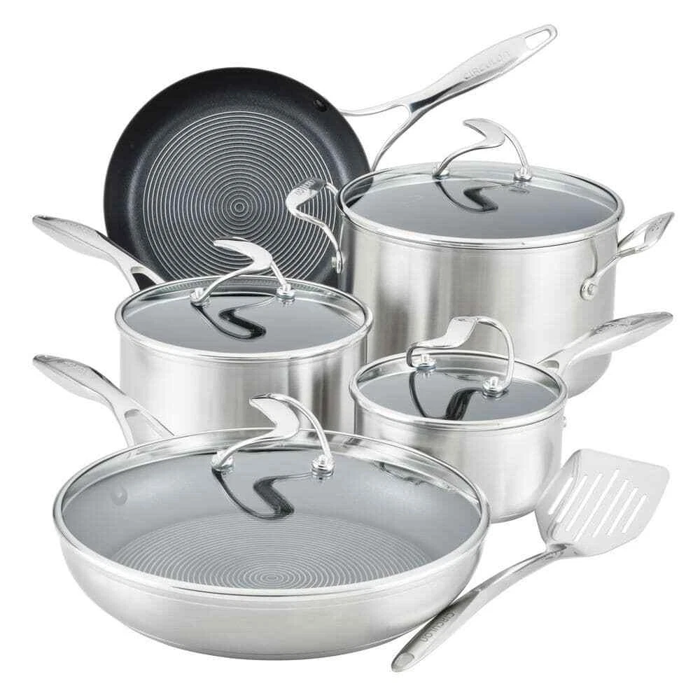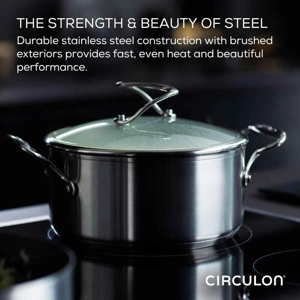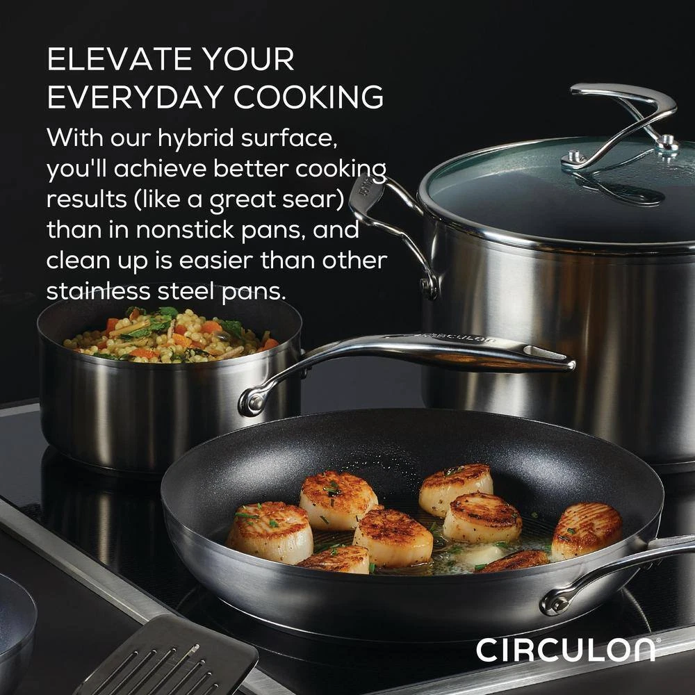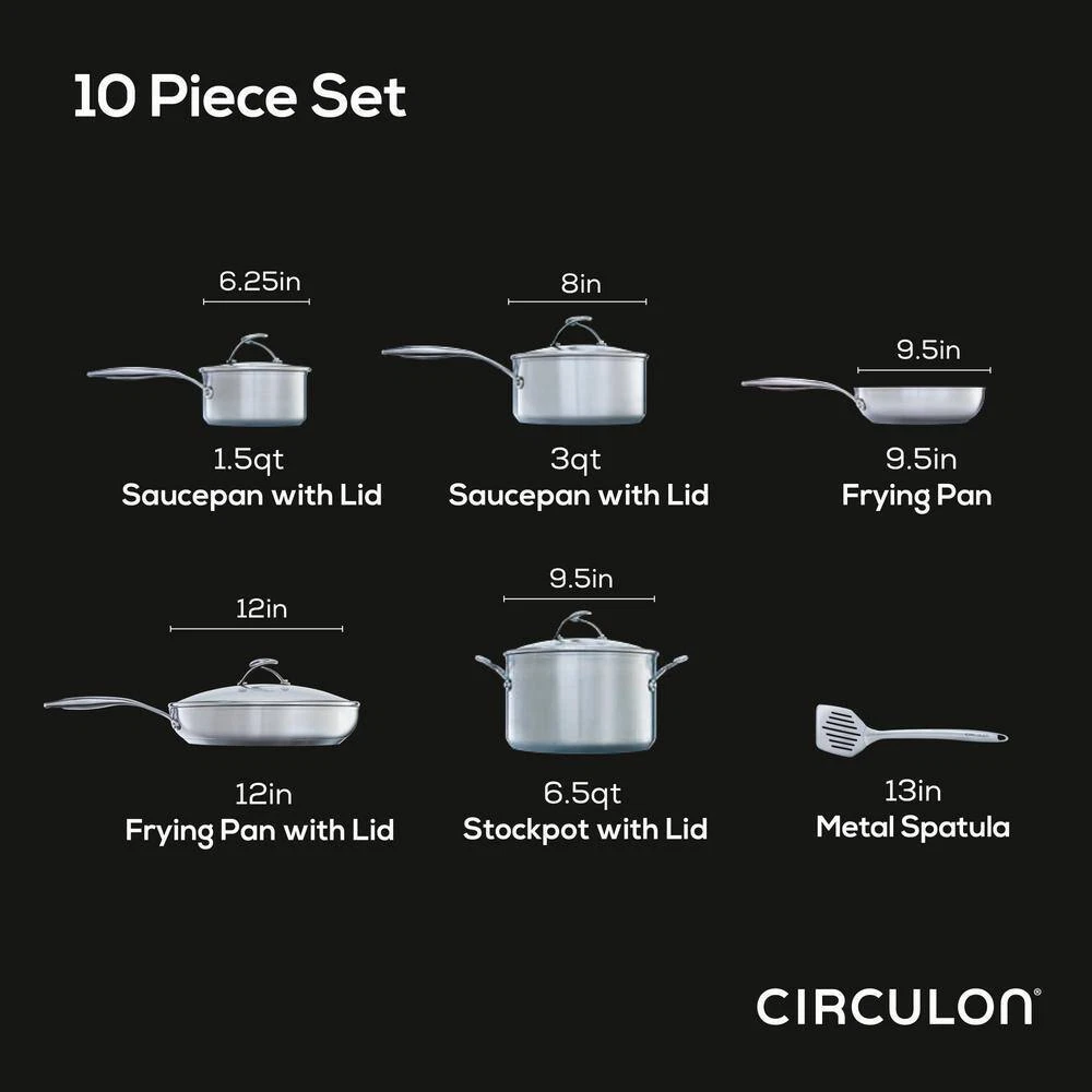 Welcome to cooking without worry. This perfectly constructed cookware set has been designed for the way you cook today, with two saucepans, a big stockpot, two frying pans and a spatula turner. Combining the beauty and durability of stainless steel with the ease and convenience of nonstick, this kitchen pots and pans set from Circulon is the best of both worlds. Circulon's SteelShield(tm) technology features elevated steel rings to protect the nonstick surfaces, so you never have to worry about scratched nonstick again. With an extra thick base, Circulon S-Series pots and pans heat up quickly to reduce hot spots on any cooktop, including induction. Featuring a stylish brushed stainless steel exterior, Circulon SteelShield pots and pans are dishwasher safe fo... Tlheselect-store Your Best Online Business Partner 10-Piece Stainless Steel Cookware in Silver Welcome to cooking without worry. This perfectly constructed cookware set has been designed for the way you cook today, with two saucepans, a big stockpot, two frying pans and a spatula turner. Combining the beauty and durability of stainless steel with the ease and convenience of nonstick, this kitchen pots and pans set from Circulon is the best of both worlds. Circulon's SteelShield(tm) technology features elevated steel rings to protect the nonstick surfaces, so you never have to worry about scratched nonstick again. With an extra thick base, Circulon S-Series pots and pans heat up quickly to reduce hot spots on any cooktop, including induction. Featuring a stylish brushed stainless steel exterior, Circulon SteelShield pots and pans are dishwasher safe for easy cleanup and oven safe up to 500??F for cooking a wide range of recipes. Plus, SteelShield nonstick is completely metal utensil safe. To prove it, we even included a stainless steel spatula in the set. Circulon SteelShield -- the greatest thing since nonstick. ELEVATE YOUR EVERYDAY COOKING: At Circulon, we know cookware. We constantly push the limits of cookware innovation. Worrying about burning, sticking, flaking and cleaning shouldn't stop you from creating delicious memories. Circulon SteelShield means no more scratched pans. No more scrubbing steel. And no more flaking nonstick. WHAT IS STEELSHIELD: Circulon SteelShield pots and pans are the first to feature stainless steel circles raised above a nonstick finish for the most versatile and durable cookware surface yet. Use any kitchen spoon or spatula on hand to flip, fry, and even scrape the innovative SteelShield rings. Metal utensils? Bring it on. To prove it, we even included a metal spatula in the set. BENEFITS OF STEELSHIELD: Why stainless steel rings? The elevated rings are there to protect the nonstick from scratches, but also deliver amazing searing to provide you with versatility and support you on any recipe you want to make. Paired with a splash of oil, the nonstick helps all kinds of recipes easily release once foods have been evenly seared on the stainless steel rings. TOUGH AND DURABLE: With an extra-thick induction base and stainless steel construction, Circulon SteelShield means no more worrying about hot spots, temperature swings, or warped pans. Plus, the pots and pans are easy enough to hand wash if you want (you'll thank us for the nonstick rivets!) or just throw them in the dishwasher. Get more from your ingredients, recipes, and cookware without sacrificing your time. LOOK: Circulon performs beautifully and looks damn good doing it too. From our stunningly crafted and cleverly designed handles that actually stay cool, down to the steel rings that are unmistakably Circulon, you no longer have to choose style over function. LIMITED LIFETIME WARRANTY SET INCLUDES: 1.5 qt. saucepan with lid, 3 qt. saucepan with lid, 6.5 qt. stockpot with lid, 9.5-In frying pan, 12-In frying pan with lid, 13-In slotted turner spatula This product contains (Este producto contiene) Fluoropolymer, PTFE, FEP, PFA (PFAS). For more information on PFAS or chemicals in this product, visit (Para obtener mas informacion sobre PFAS o productos quimicos en este producto, visite) https://circulon.com/pages/product-disclosures. Color Family:Silver|Color Family:Silver|Color/Finish:Stainless Steel|Color/Finish:Stainless Steel|Cooktop Compatibility:Electric Coil,Electric Smooth Top,Gas,Induction|Cooktop Compatibility:Electric Coil,Electric Smooth Top,Gas,Induction|Features:Dishwasher Safe,Heavy Duty,Induction Safe,Oven Safe|Features:Dishwasher Safe,Heavy Duty,Induction Safe,Oven Safe|Includes:Frying Pan,Glass Lid,Saucepan,Spatula,Stock Pot|Includes:Frying Pan,Glass Lid,Saucepan,Spatula,Stock Pot|Individual/Set:Individual|Individual/Set:Individual|Kitchen Product Type:Cookware Set|Kitchen Product Type:Cookware Set|Material:Stainless Steel|Material:Stainless Steel|Maximum Heating Temperature (Fahrenheit):350|Maximum Heating Temperature (Fahrenheit):350|Number of Pieces:10|Number of Pieces:10|Number of cookware pieces:5|Number of cookware pieces:5|Package Type:Individual|Package Type:Individual|Returnable:90-Day|Returnable:90-Day|Manufacturer Warranty:LIMITED LIFETIME WARRANTY|Manufacturer Warranty:LIMITED LIFETIME WARRANTY Item Specifics Brand Circulon Type Pan Sets UPC 051153700576 Model 70057 Stove Type Compatibility Electric, Gas, Induction Payment Returns Tlheselect-store Your Best Online Business Partner DESCRIPTION PAYMENT SHIPPING RETURN POLICY CONTACT US Shop Category Store Home Other Hot Item Wheel Lock Clamp 2-Pack Trailer Wheel Lock Heavy-Duty Anti Theft Tire Lock Adjus USD 67.89 PACKOUT 22 in. Rolling Modular Tool Box USD 150.12 Pro Gear System Gen 2.0 Stackable Durable 22 in. Modular Tool Box Storage With H USD 43.18 M18 18-Volt Lithium-Ion Cordless Combo Kit 7-Tool with 2-Batteries, Charger and USD 538.92 20-Volt MAX ToughSystem Lithium-Ion 6-Tool Cordless Combo Kit USD 538.92 Picture New List Item LINK Rolling Tool Box and Quick Release Handle Kit USD 96.12 Heavy Duty Metal Tool Box - 17 in. X 7 1/2 in. X 7 in. USD 47.65 20 in 