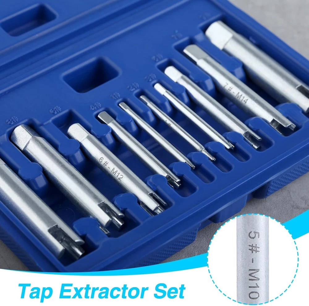 10 Pcs Tap Extractor Set 3/4 Flute Broken Head Screw Remover Stripped Tap Ext... Premium Material: Made of high-hardness Chrome-molybdenum steel with anti-rust electroplated surface for high torsional strength and ensuring long-lasting performance. 3/4 Flute Specification: 1#: 3 flute, M4, 6#; 2#: 3 flute, M5, 8-10#; 3#: 3 flute, M6, 12#-1/4; 4#: 3 flute, M8, 5/16"; 5#: 3 flute, M10, 3/8"; 6#: 4 flute, M12, 1/2"; 7#: 4 flute, M14, 9/16"; 8#: 4 flute, M16, 5/8";9#:4 flute, M18-20, 3/4"; 10#: 4 flute, M22, 7/8". Precision Size: There are 10 sizes of tap extractors, 1#-5# are 3 flutes, and 6#-10# are 4 flutes, featuring the groove structure, these tap extractors can grab broken screw taps speedily. The square head is compatible with a tap wrench or adjustable wrench. Efficient Extraction: Select the appropriate tap extractor and insert it into the tap's groove. Then, using a tap wrench or adjustable wrench, unscrew in the opposite direction. The result will be a newly restored tap thread. Wide Application: The tap extractor is specially designed for fast grasping and easy removal of stripped, rusted, broken, or corroded screw taps. It's an essential tool for industrial and home repair work. Shipping We offer FREE shipping on all orders! We ship within Three business days of payment, usually sooner. Local pickups and combined shipping options are not provided at this time. Return You can return a product for up to 30 days from the date you purchased it. Any product you return must be in the same condition you received it and in the original packaging. Please keep the receipt. Payment We accept payment by any of the following methods: PayPal Please pay as soon as possible after winning an auction, as that will allow us to post your item to you sooner! Feedback Customer satisfaction is very important to us. If you have any problem with your order, please contact us and we will do our best to make you satisfied. Contact Us If you have any queries, please contact us via ebay. We usually respond within 24 hours on weekdays. Please visit our eBay store to check out other items for sale! Thank you for shopping at our store.